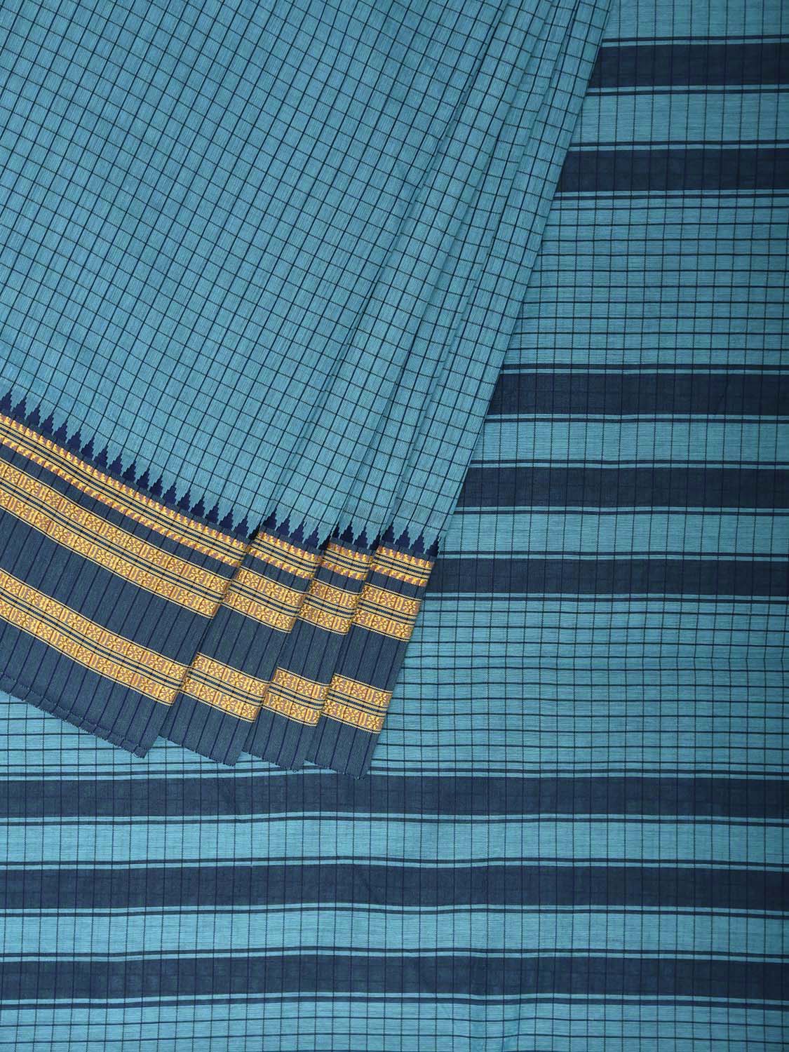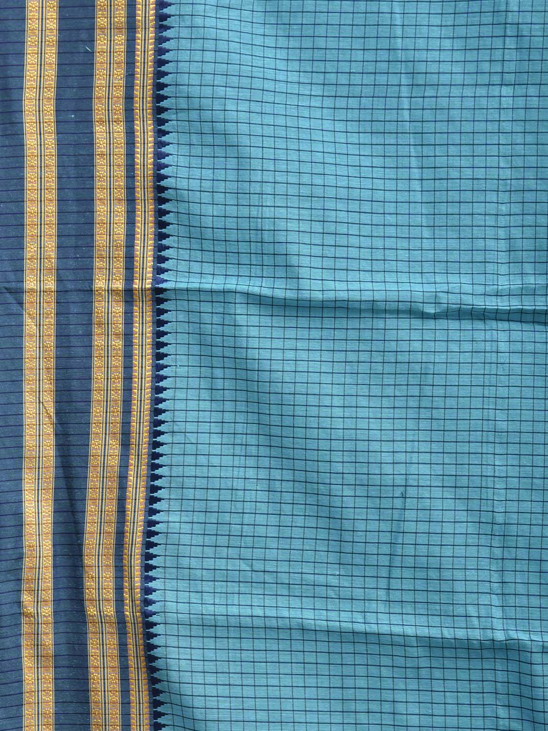 Blue and Dark Blue Bamboo Cotton Saree with Checks Design No Blouse. This is a blend of bamboo and cotton fibers, they have characteristics of both bamboo and cotton combined into one fabric. We Advise Gentle Handwash for Fabric Care. This saree has no blouse.