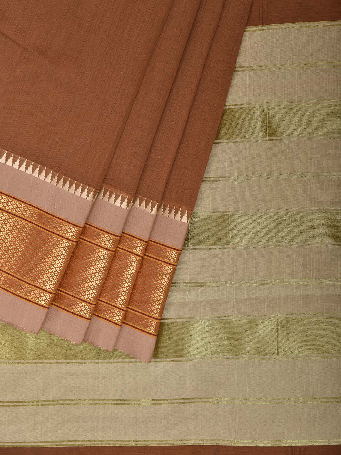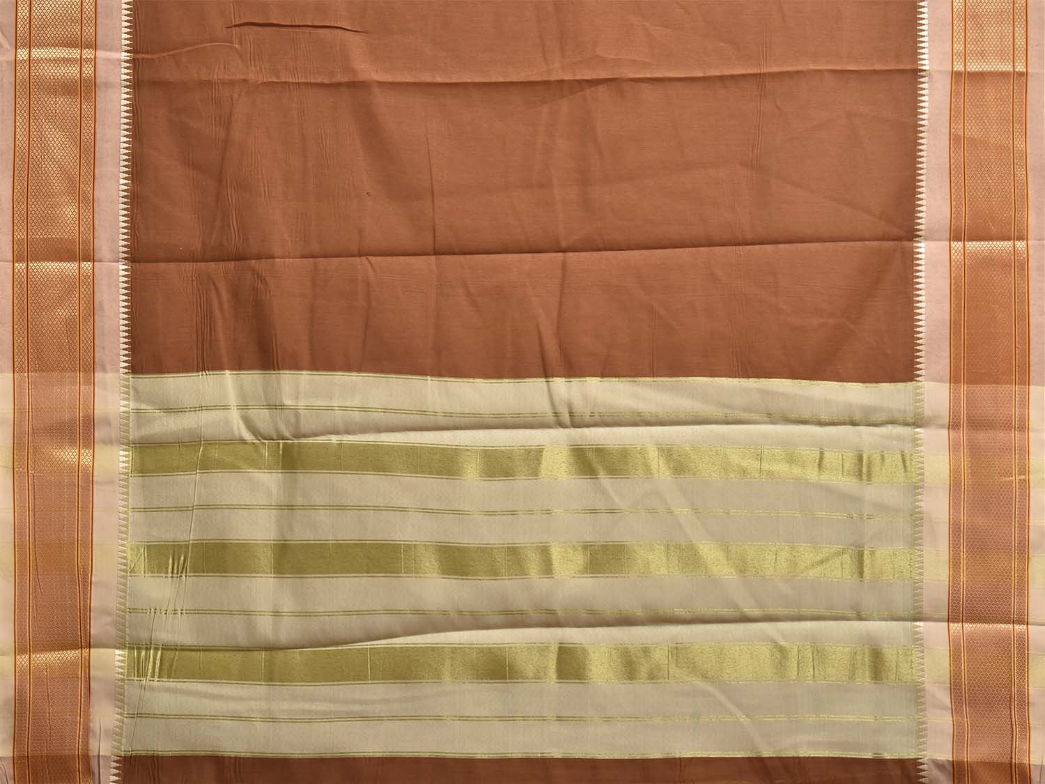 Fawn and Cream Bamboo Cotton Plain Saree with Contrast Pallu Design No Blouse. This is a blend of bamboo and cotton fibers, they have characteristics of both bamboo and cotton combined into one fabric. We Advise Gentle Handwash for Fabric Care. This saree has no blouse.