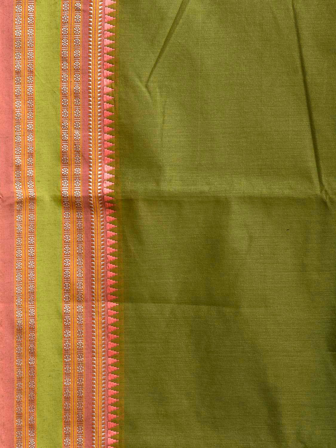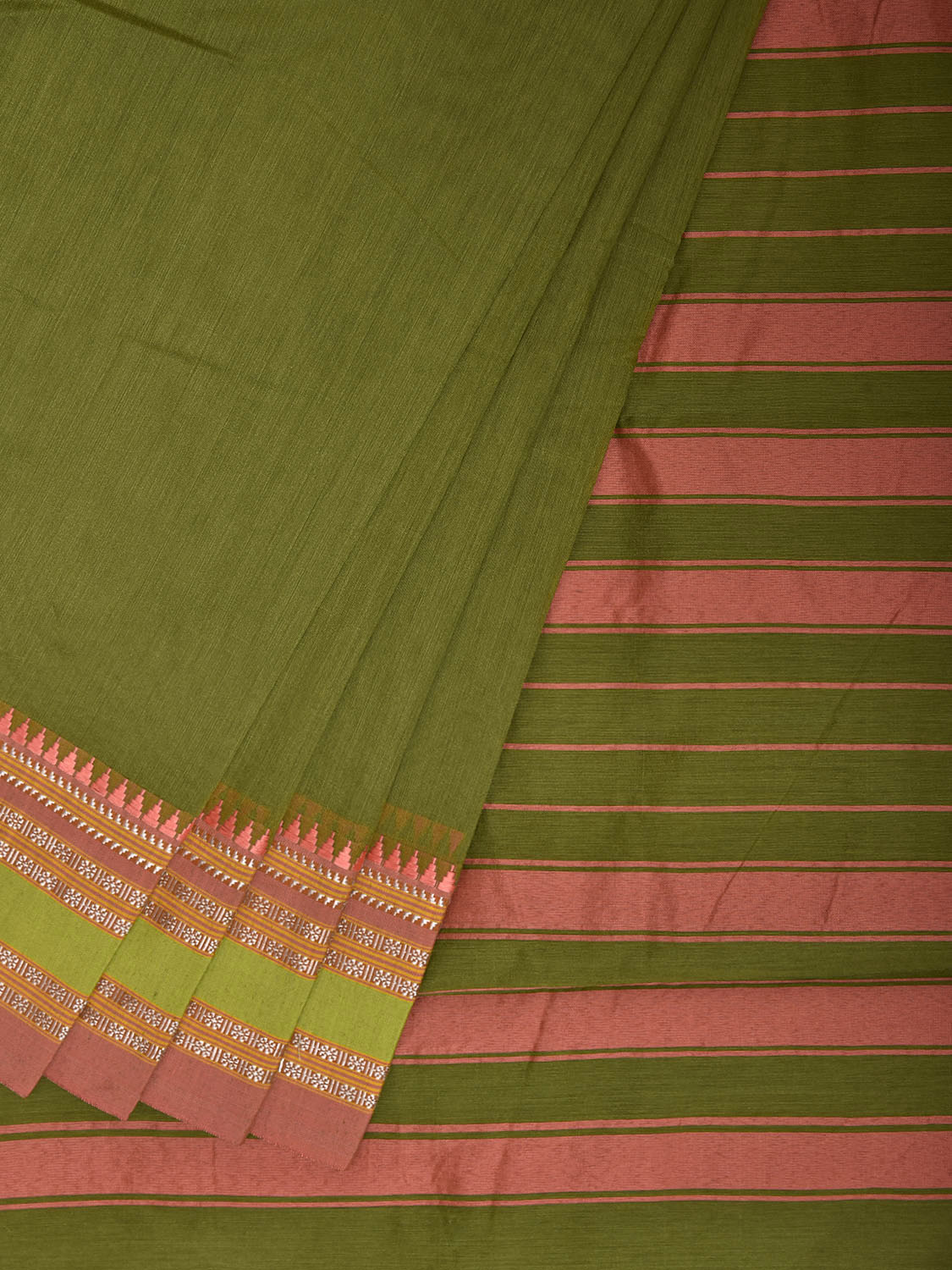 Green and Peach Bamboo Cotton Plain Saree with Strips Pallu Desing No Blouse. This is a blend of bamboo and cotton fibers, they have characteristics of both bamboo and cotton combined into one fabric. We Advise Gentle Handwash for Fabric Care. This saree has no blouse.