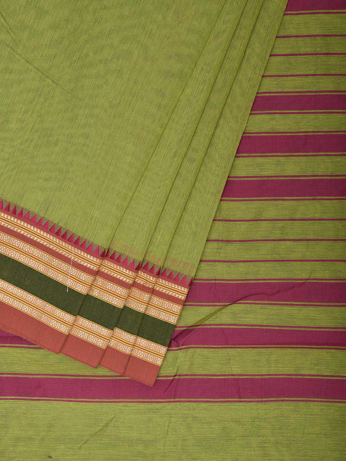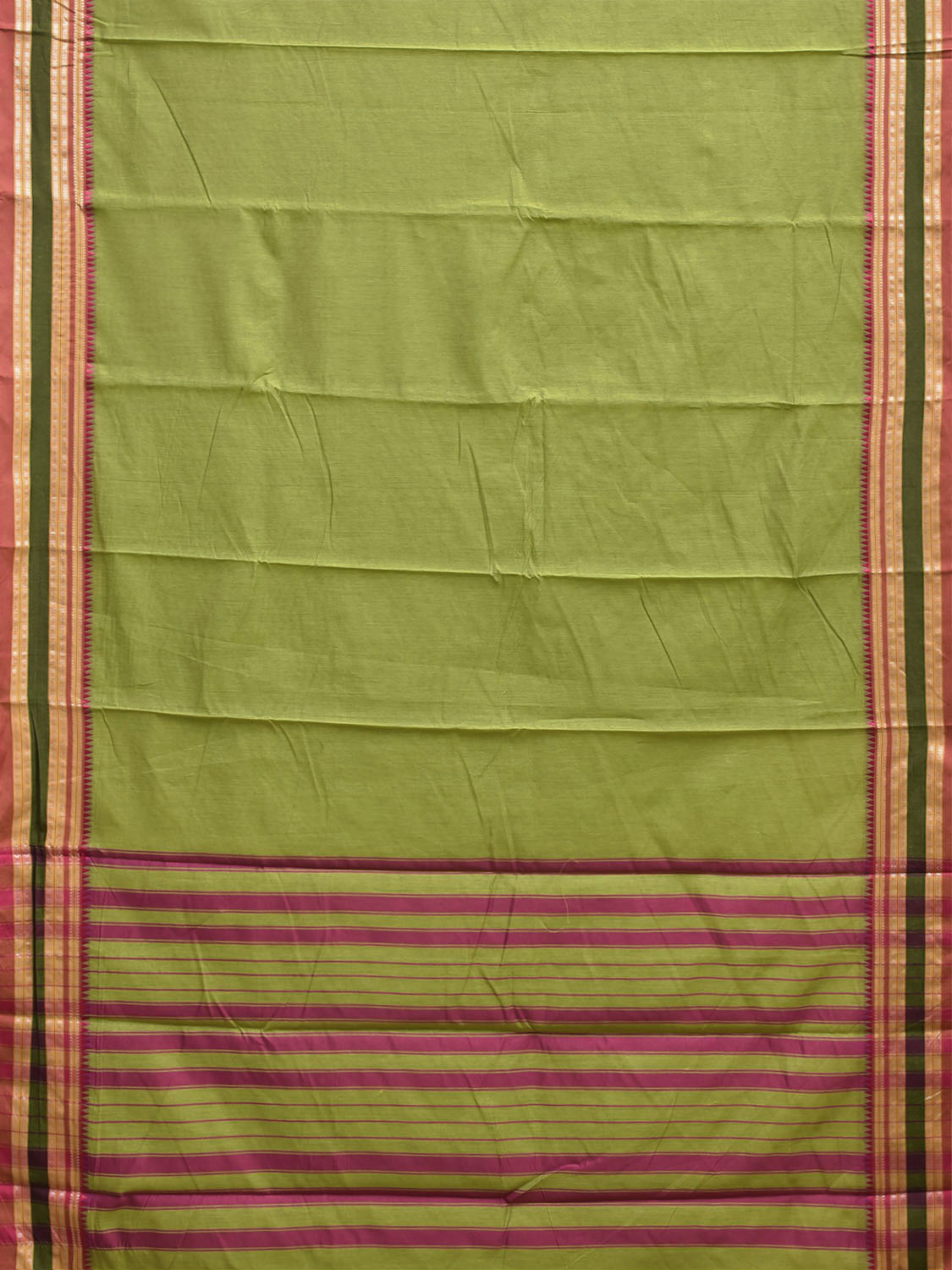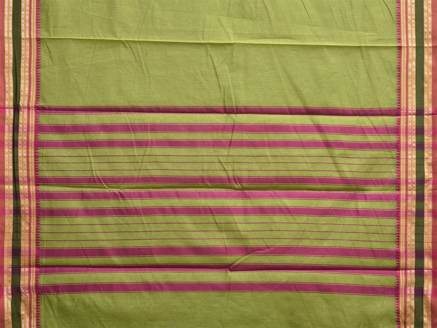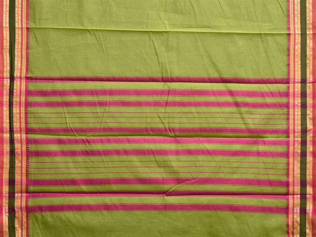 Green and Pink Bamboo Cotton Plain Saree with Strips Pallu Design No Blouse bc1079