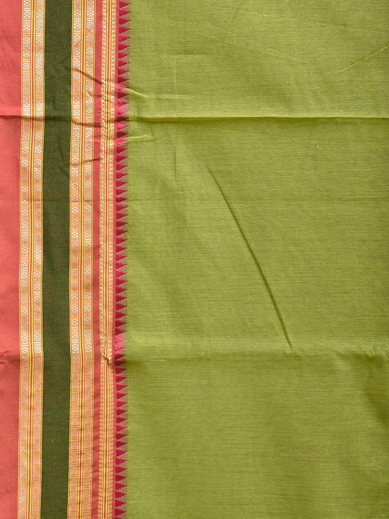 Green and Pink Bamboo Cotton Plain Saree with Strips Pallu Design No Blouse. This is a blend of bamboo and cotton fibers, they have characteristics of both bamboo and cotton combined into one fabric. We Advise Gentle Handwash for Fabric Care. This saree has no blouse.