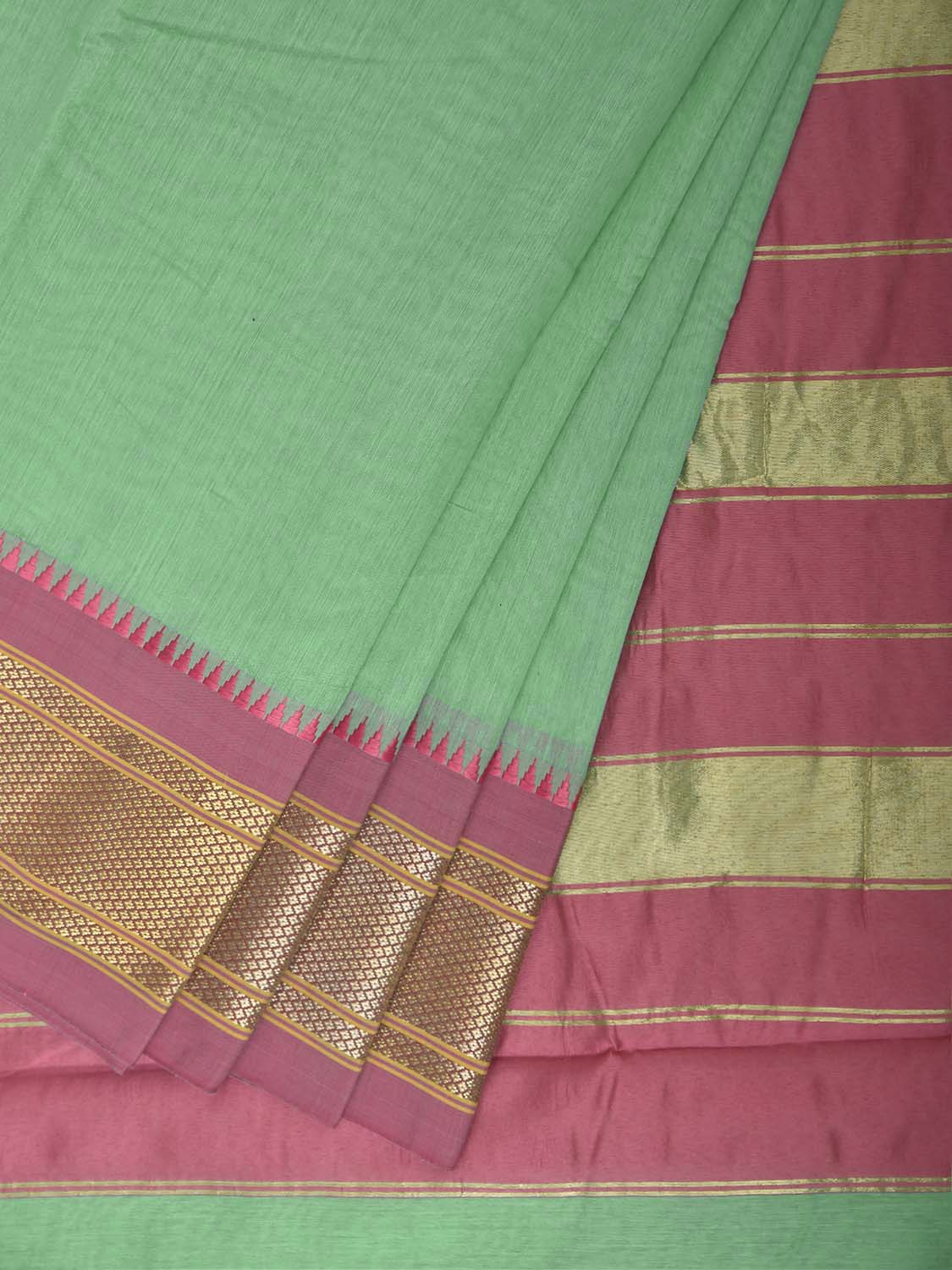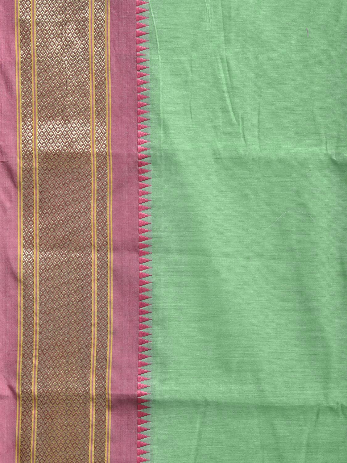 Light Green and Baby Pink Bamboo Cotton Plain Saree with Contrast Pallu Design No Blouse. This is a blend of bamboo and cotton fibers, they have characteristics of both bamboo and cotton combined into one fabric. We Advise Gentle Handwash for Fabric Care. This saree has no blouse.