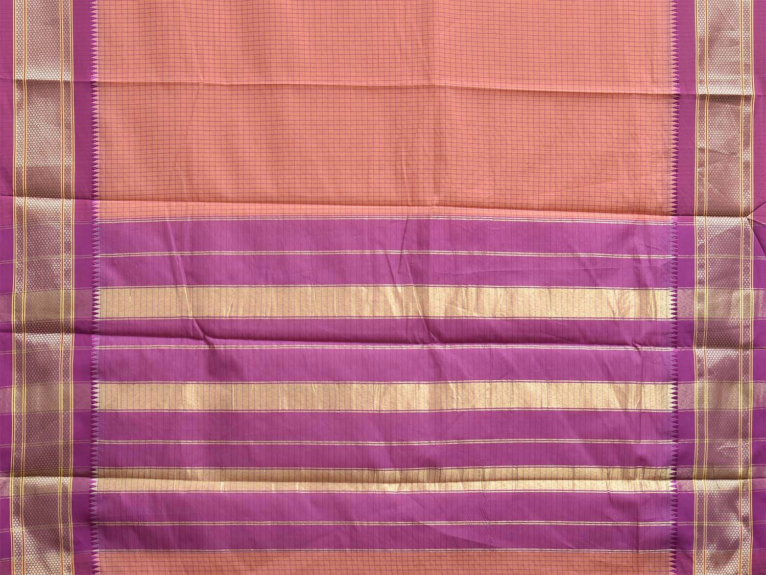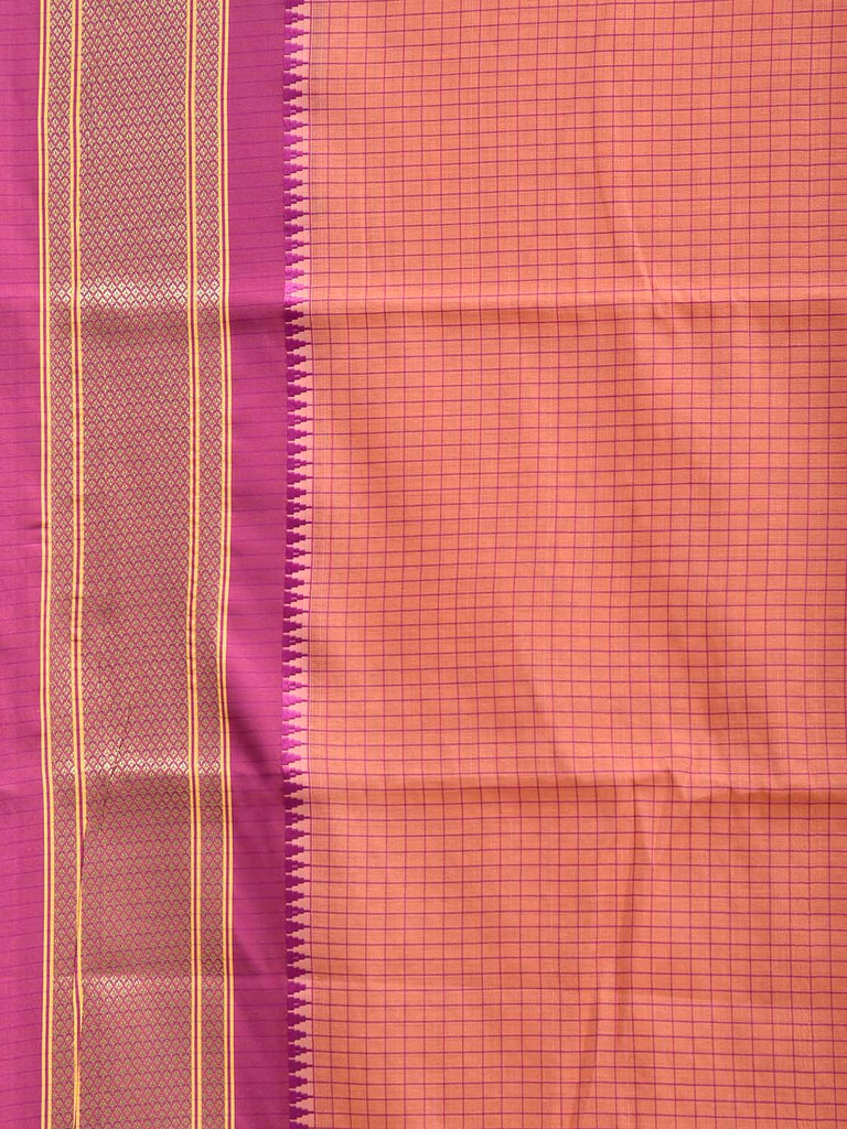 Peach and Pink Bamboo Cotton Saree with Checks Design No Blouse bc1058