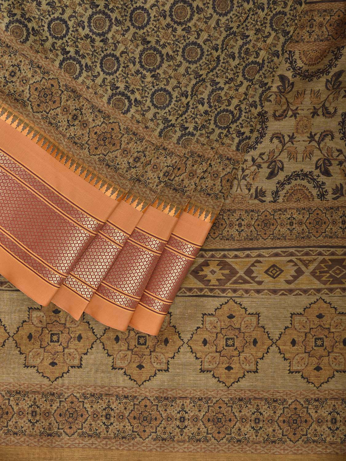 Yellow and Mustard Bamboo Cotton Saree with Digital Print Design bc0964