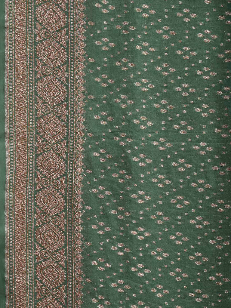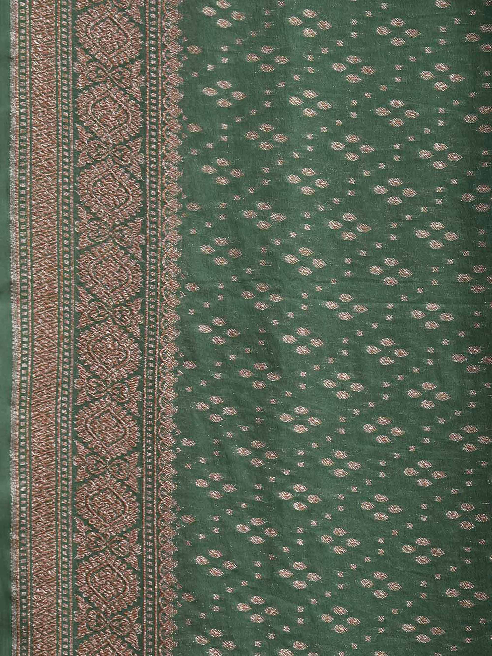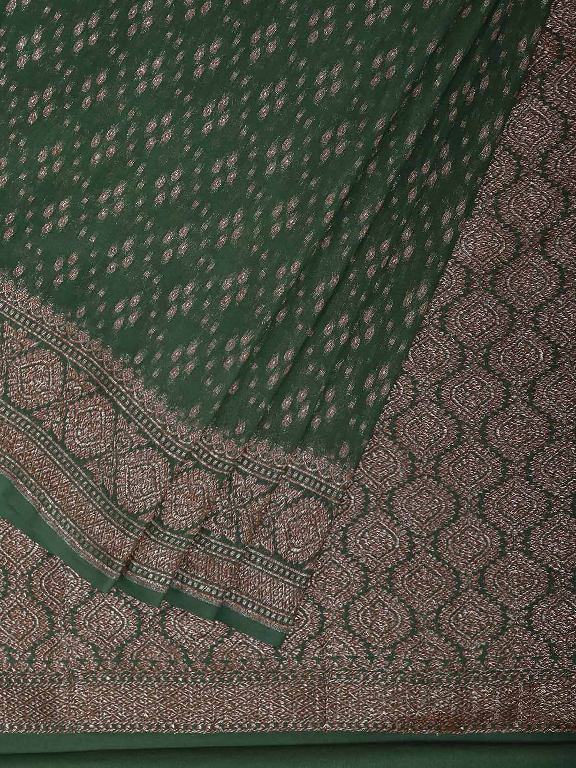 Green Banaras Georgette Saree with Pallu and Border Design b0343