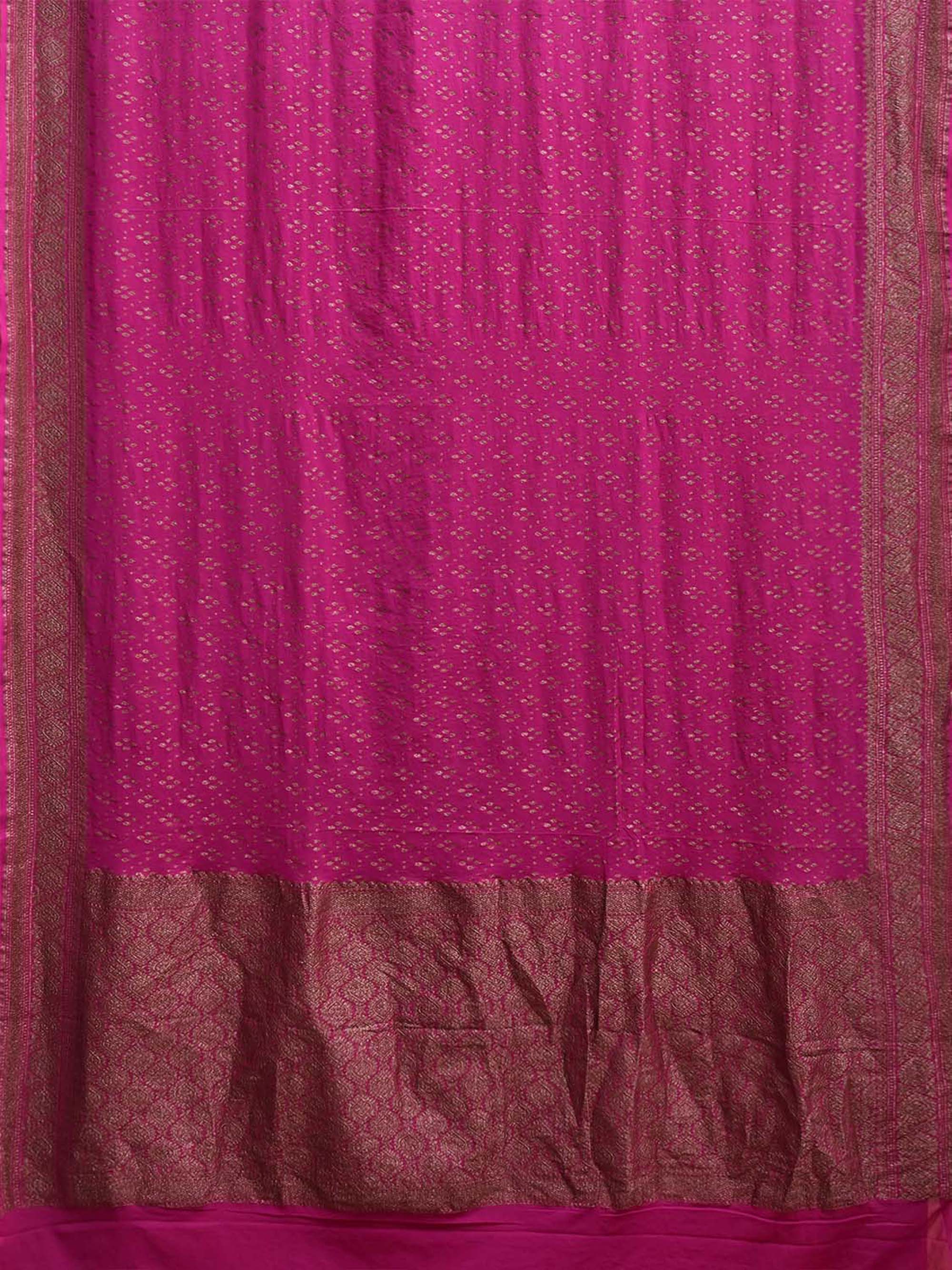 Pink Banaras Georgette Saree with Pallu and Border Design. Banaras Sarees are considered one of finest sarees with gold or silver zari work, and colorful design makes it the saree for various occassions. For fabric care we advise dry clean.