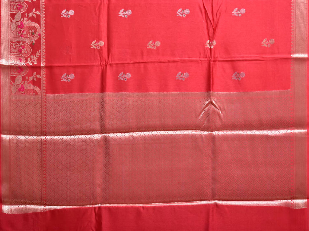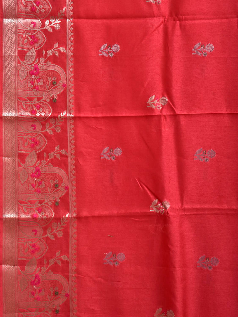 Red Banaras Raw Silk Saree with Pallu and One Side Border Design. Banaras Sarees are considered one of finest sarees with gold or silver zari work, and colorful design makes it the saree for various occassions. For fabric care we advise dry clean.