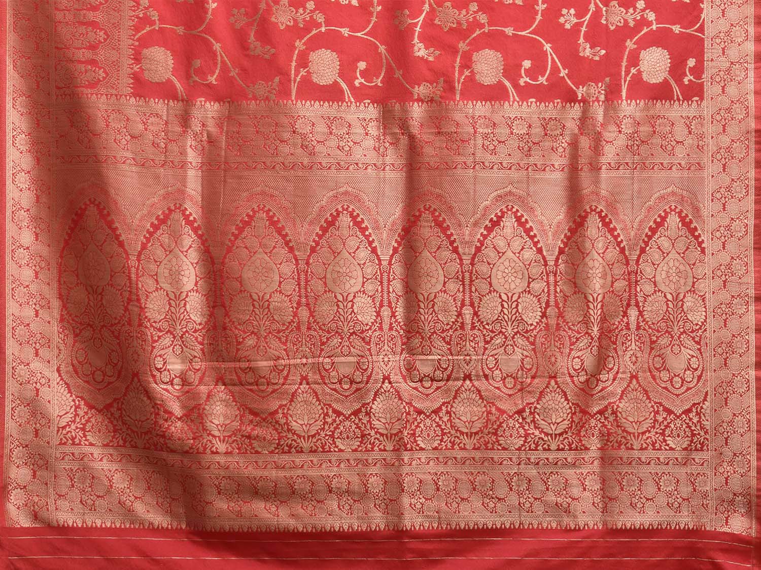 Red Banaras Viscose Silk Saree with Floral Body and Pallu Design b0310
