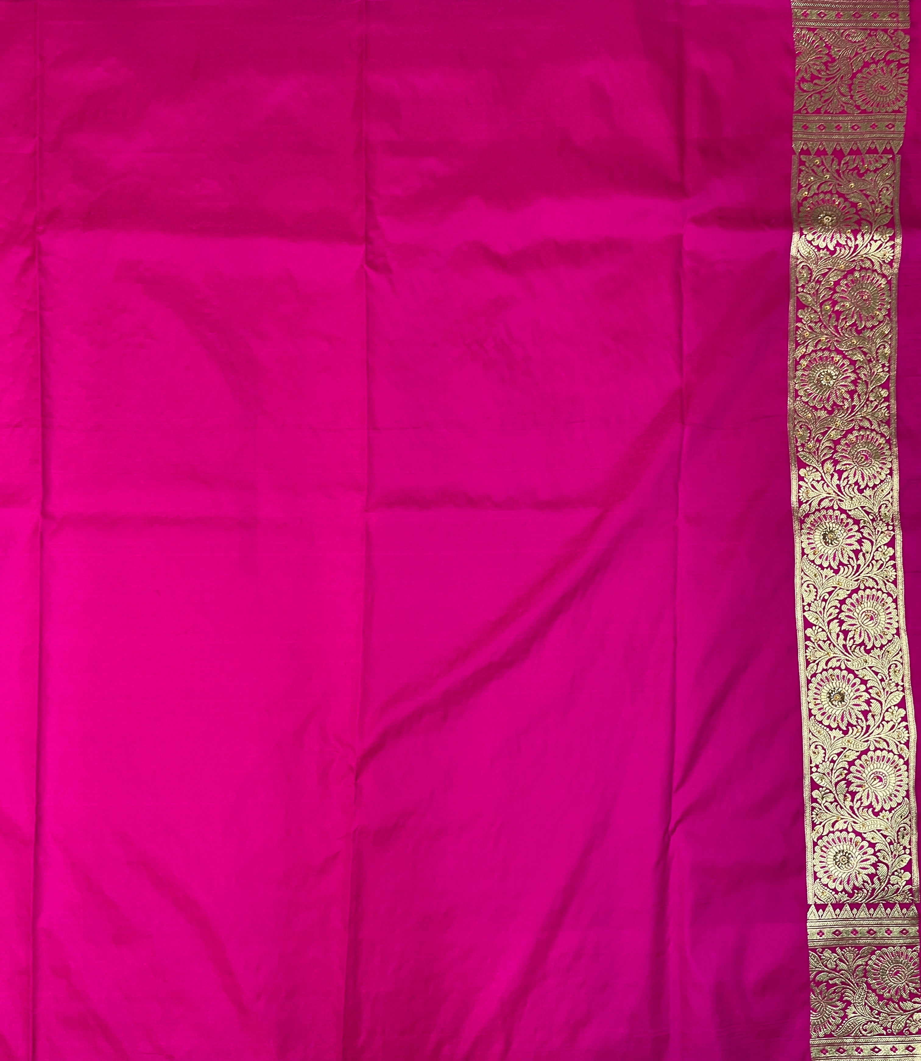 Drape yourself in timeless elegance with this exquisite emerald green Banarasi silk saree, adorned with delicate silver zari motifs throughout the body. The saree features an intricately woven floral and paisley border, complemented by a regal pallu with detailed brocade craftsmanship that reflects the rich heritage of Banaras.Perfect for weddings, festive occasions, and grand celebrations, this saree brings together tradition and luxury in every drape. The lustrous silk fabric adds a graceful fall and sheen, while the silver zari creates a stunning contrast that enhances its royal charm.
