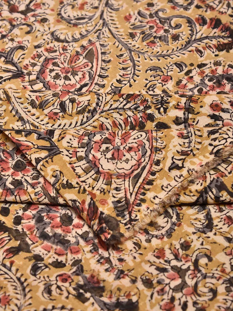 Dark Red Kalamkari Hand Painted Sico Blouse with Big Floral Design 1mt Length 35 Inches Width BL0271