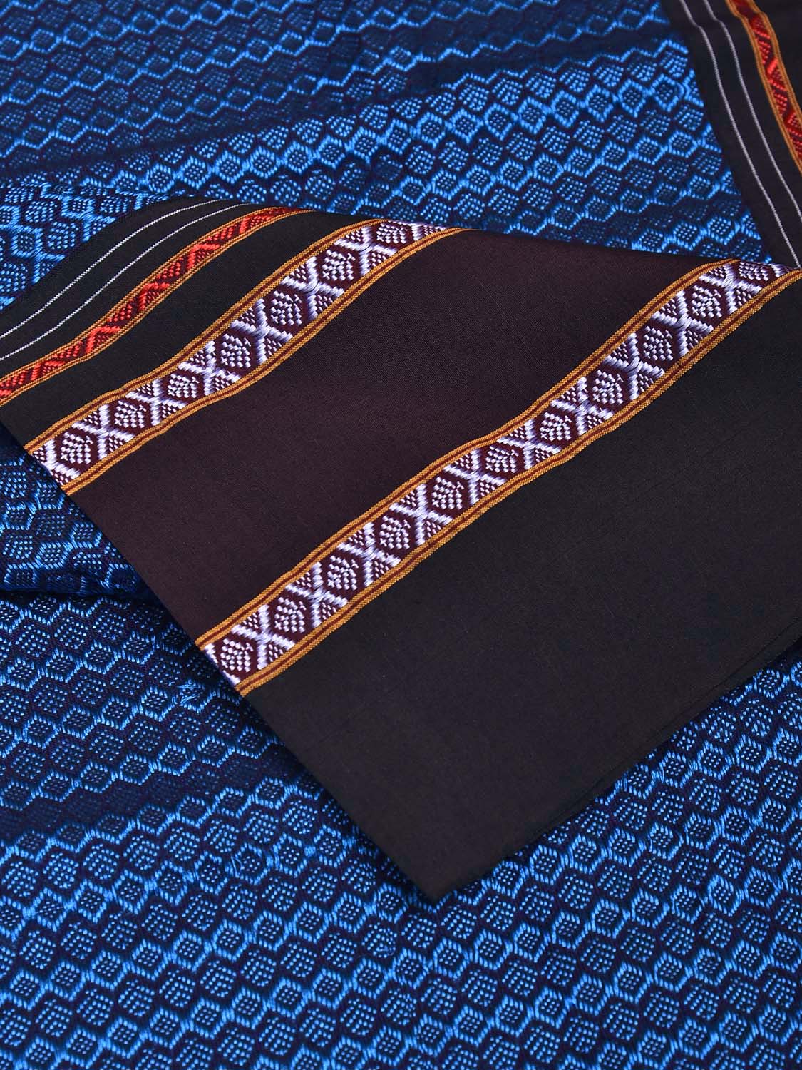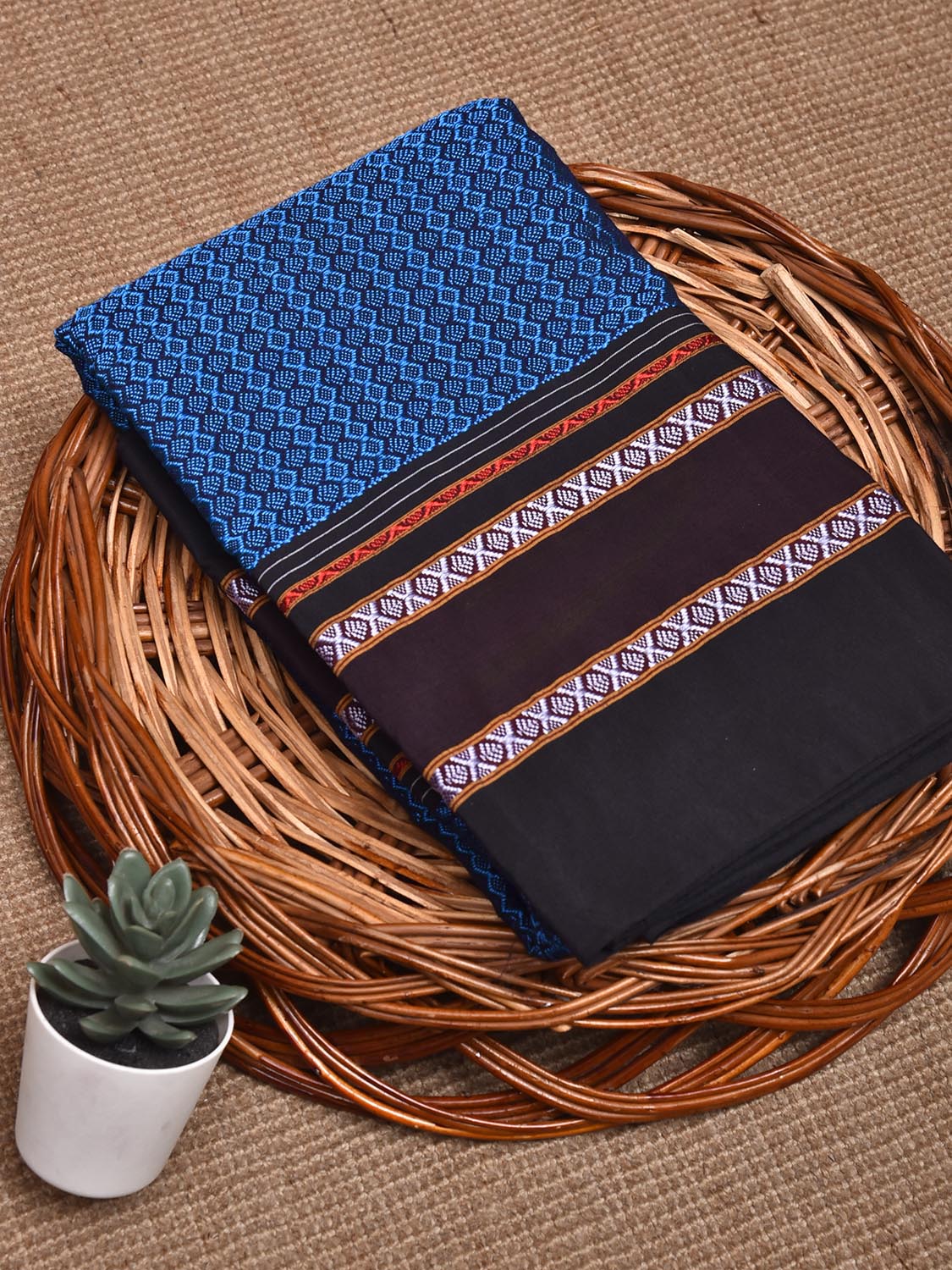 Blue and Black Jacquard Viscose Bloue with All Over Design Length 1mt Width 32 Inches. Beautiful Pattern Blouse Fabric and Easy to Match to Any Suitable Saree. We Advise Gentle Handwash for Fabric Care.