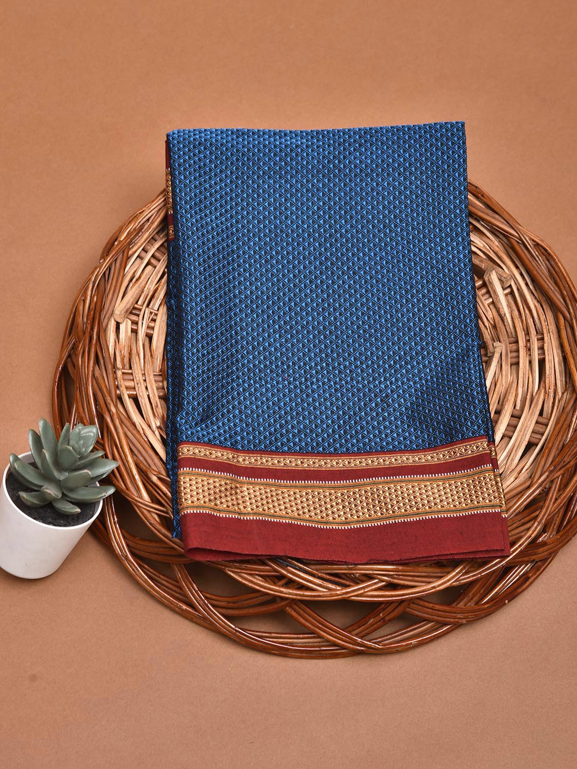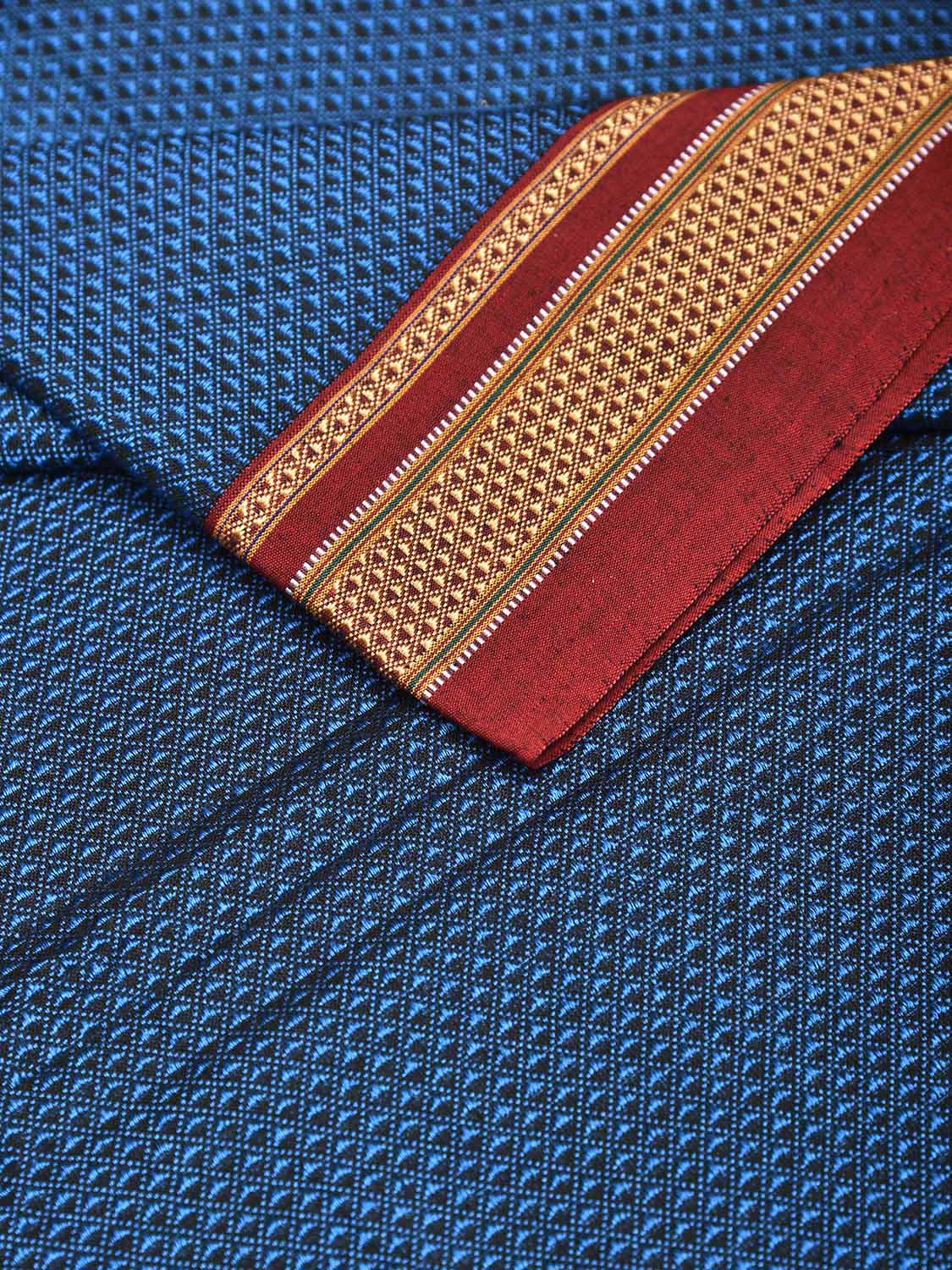 Blue and Dark Red Jacquard Viscose Blouse with Contrast Border Design Length 1mt Width 31 Inches. Beautiful Pattern Blouse Fabric and Easy to Match to Any Suitable Saree. We Advise Gentle Handwash for Fabric Care.