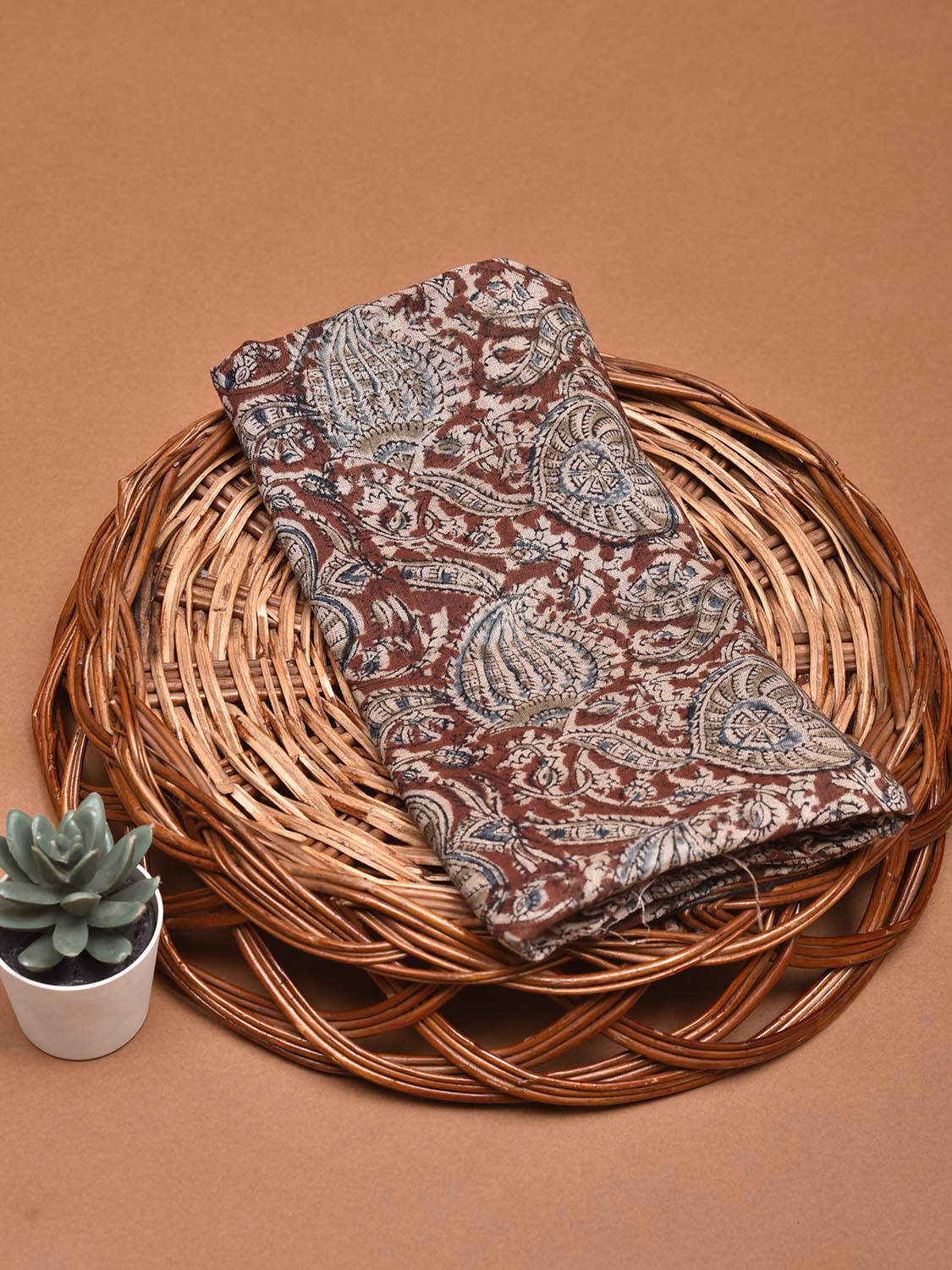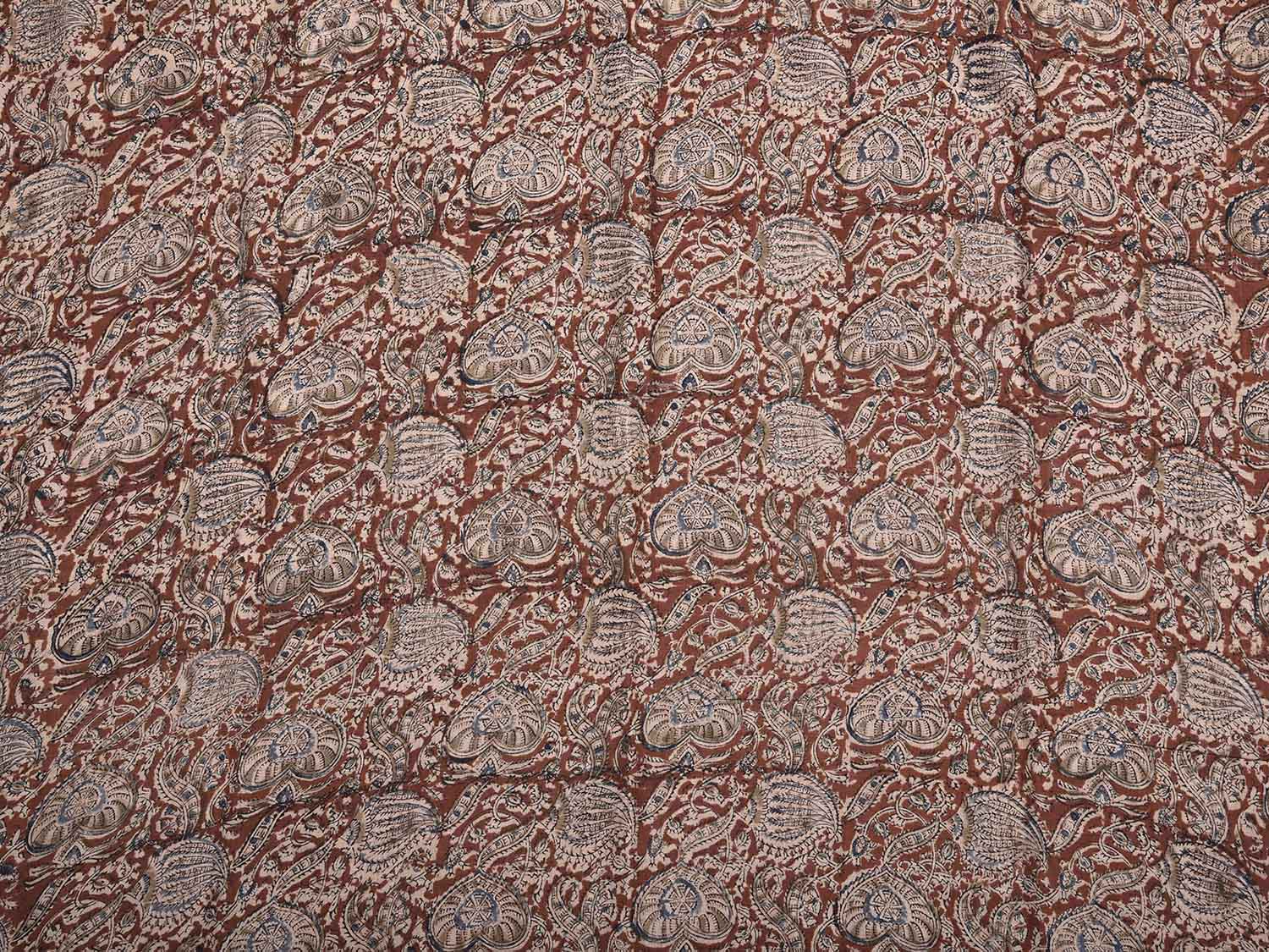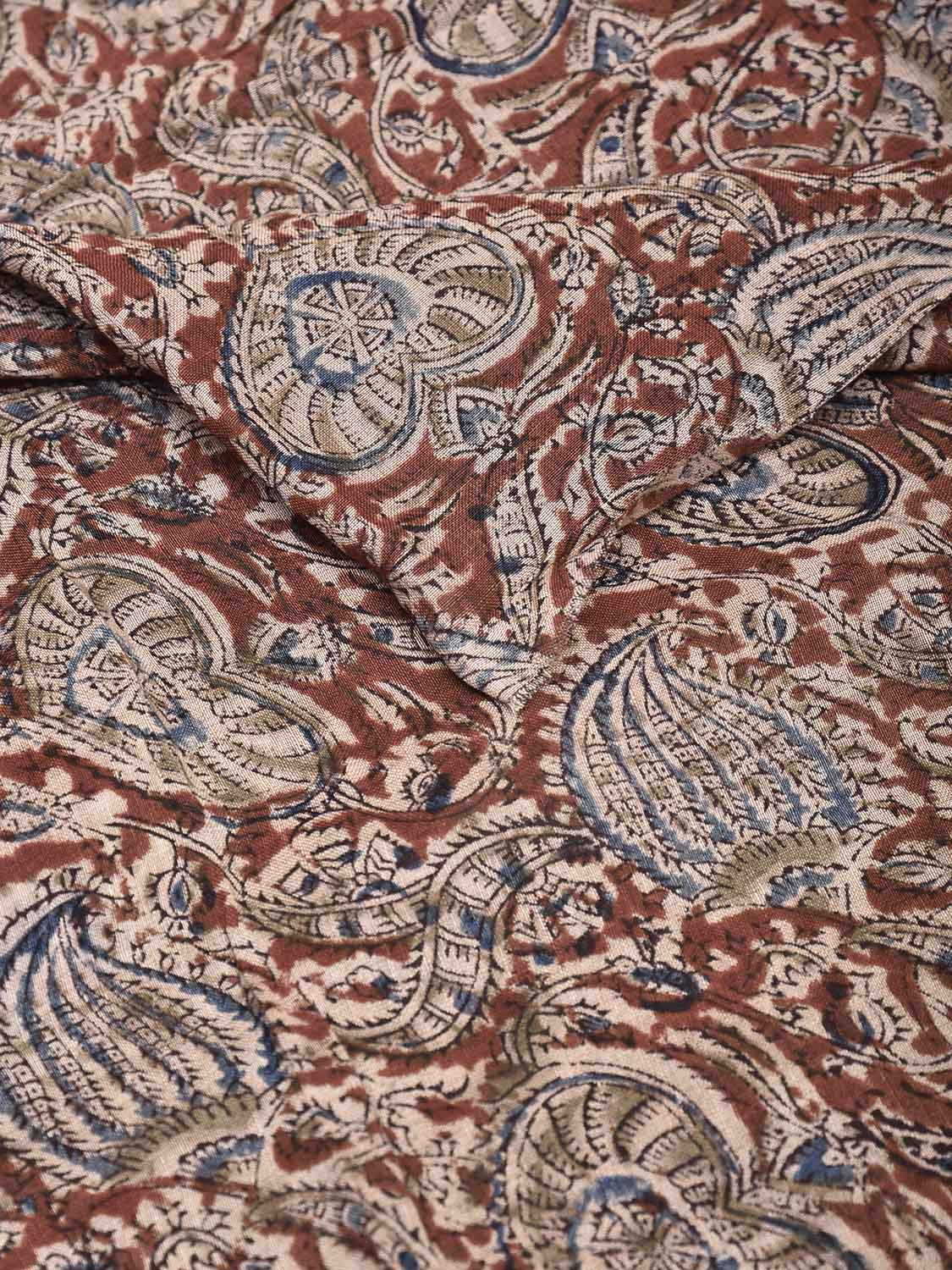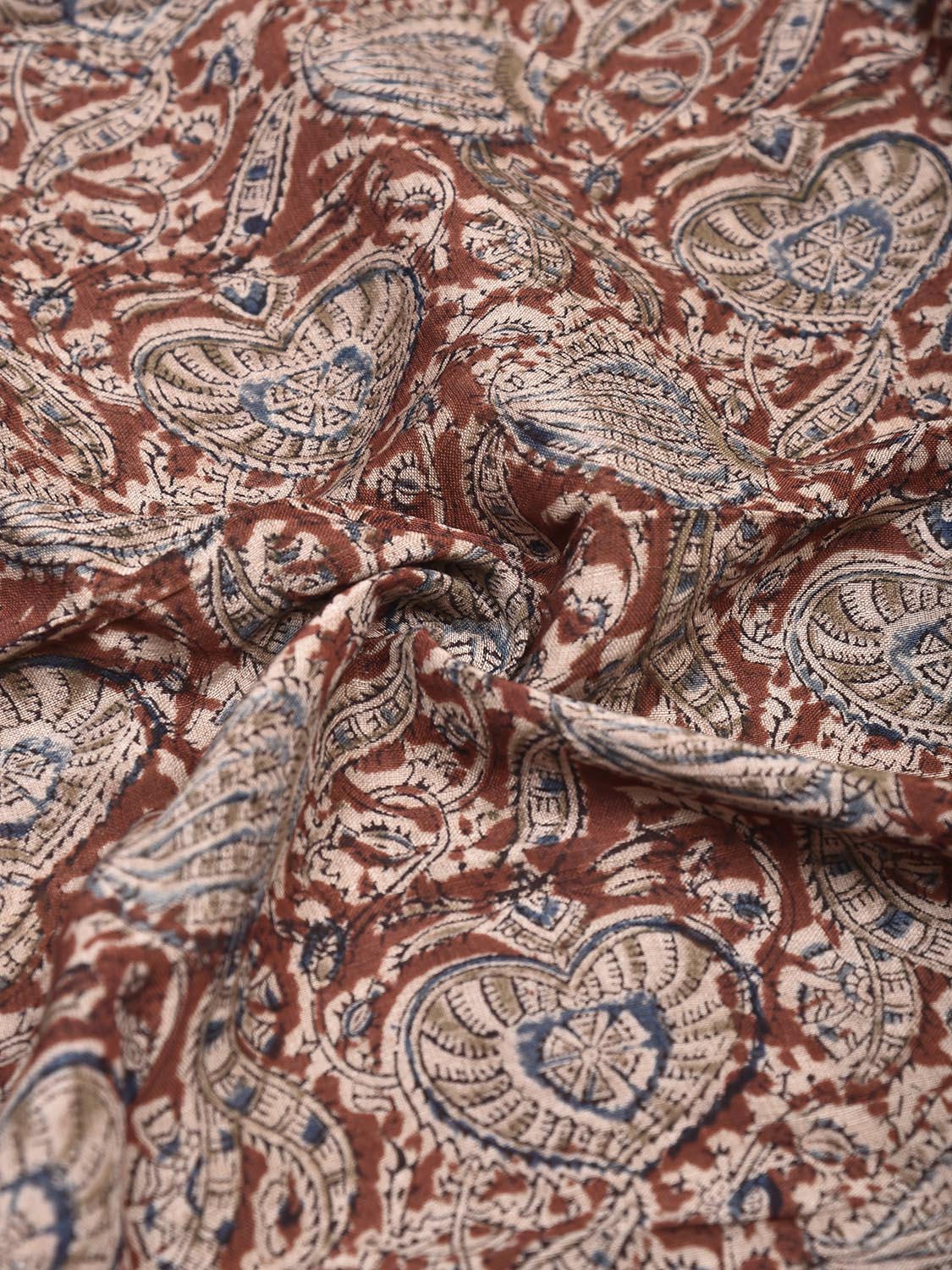 Dark Red and Blue Kalamkari Block Print Cotton Blouse with Floral Design 1mt Length 35 Inches Width. Beautiful Pattern Blouse Fabric and Easy to Match to Any Suitable Saree. For fabric care we advise gentle handwash separately as they may bleed in the initial wash.