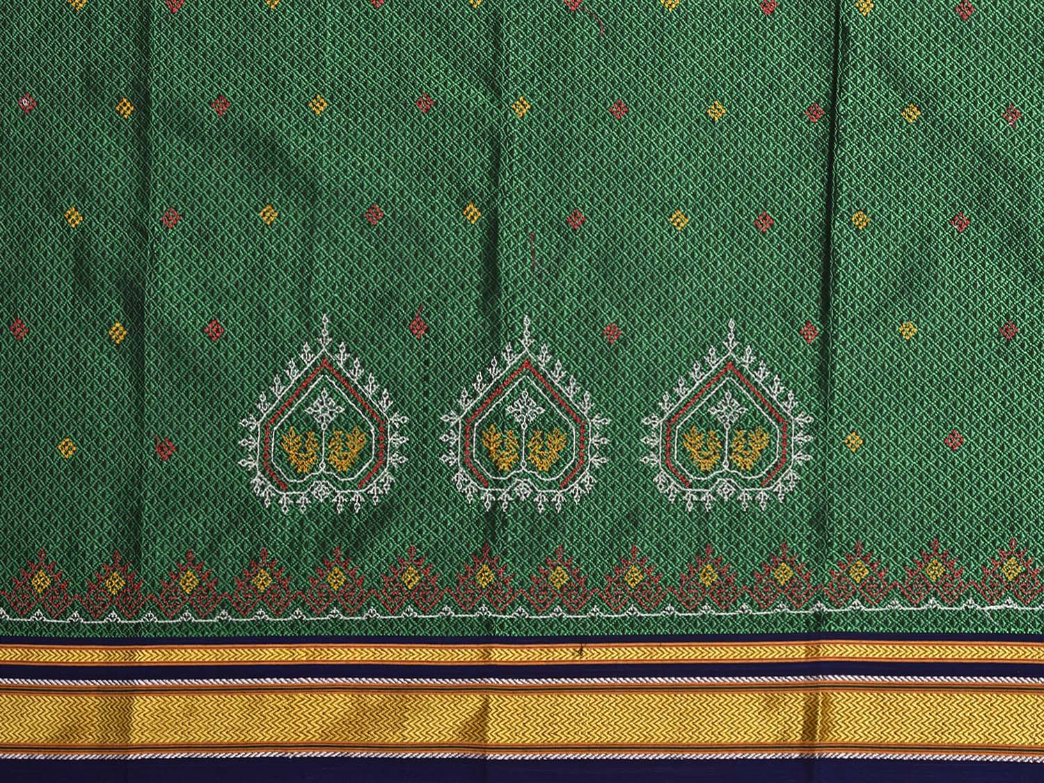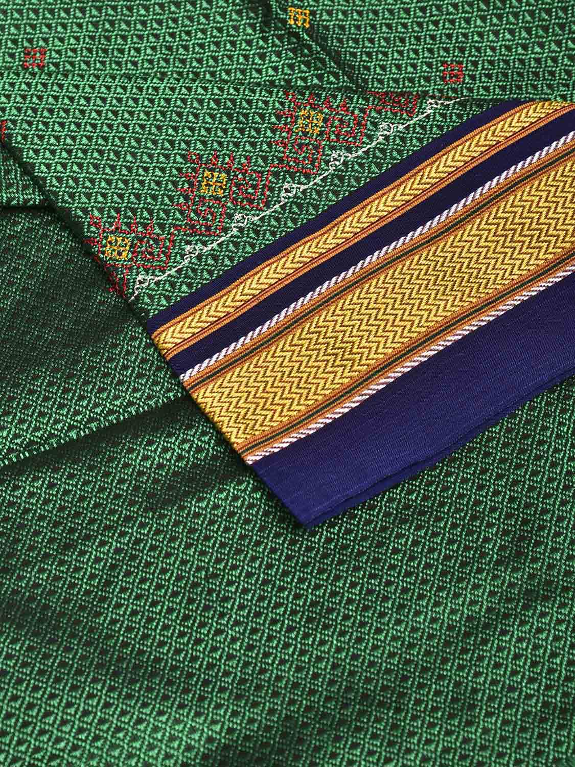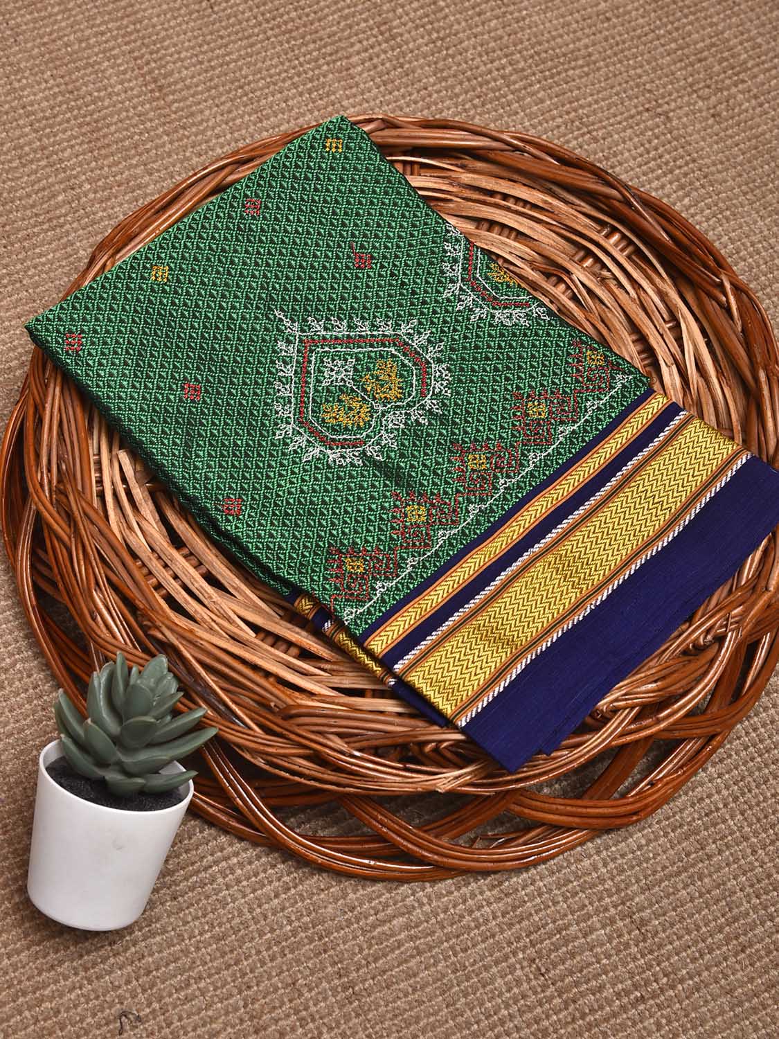Green and Blue Jacquard Viscose Bloue with Kasuti Work Design Length 1mt Width 36 Inches BL0236