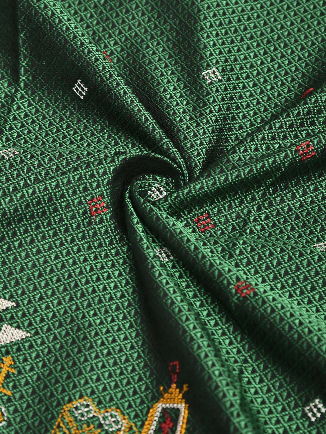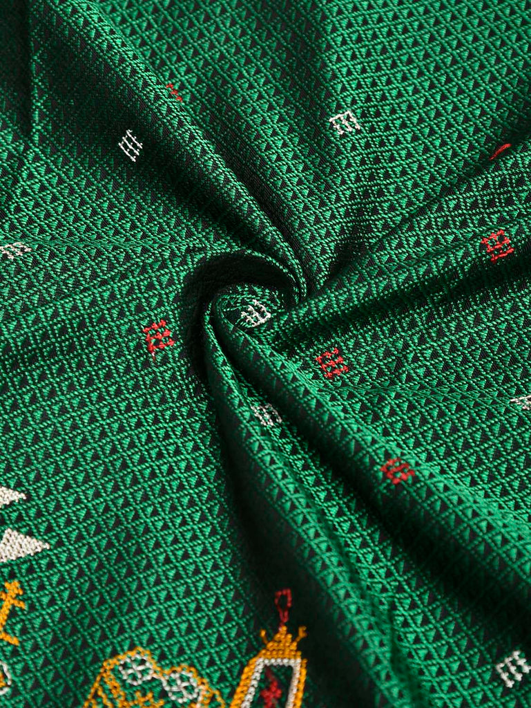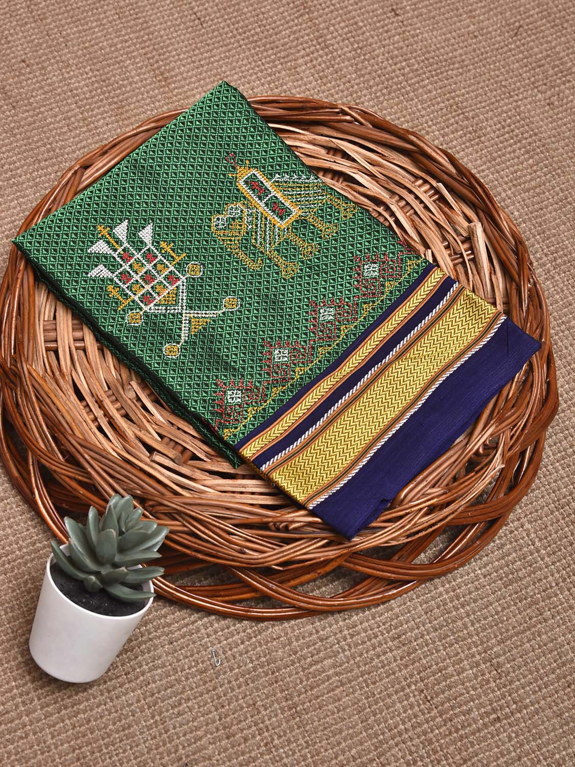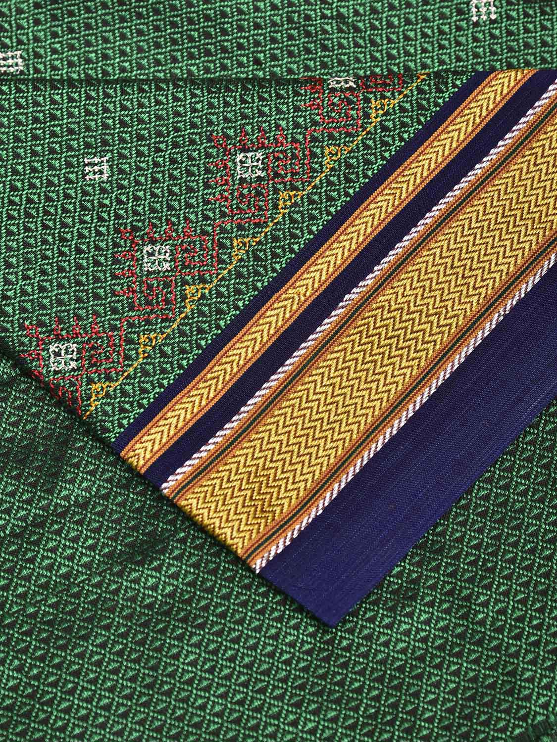 Green and Brown Jacquard Viscose Bloue with Kasuti Work Design Length 1mt Width 36 Inches. Beautiful Pattern Blouse Fabric and Easy to Match to Any Suitable Saree. We Advise Gentle Handwash for Fabric Care.