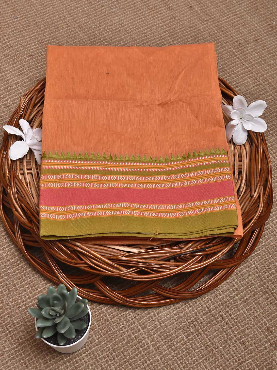 Light Orange and Green Bamboo Cotton Blouse with Plain Design Length 80cm Width 44 Inches. Beautiful Pattern Blouse Fabric and Easy to Match to Any Suitable Saree. We Advise Gentle Handwash for Fabric Care.