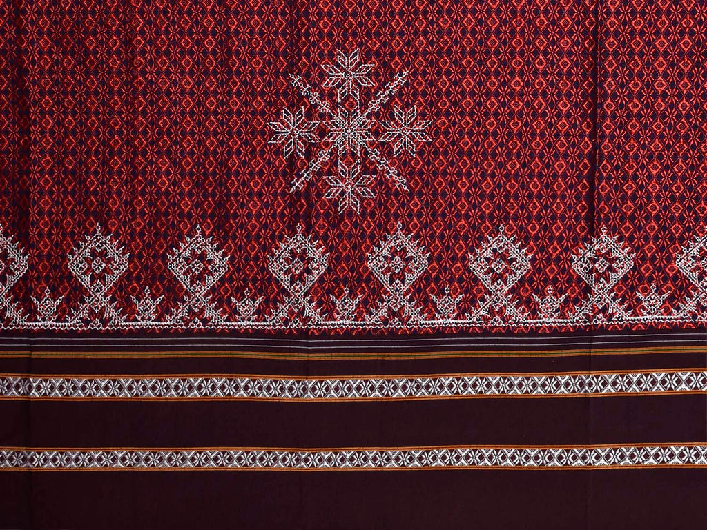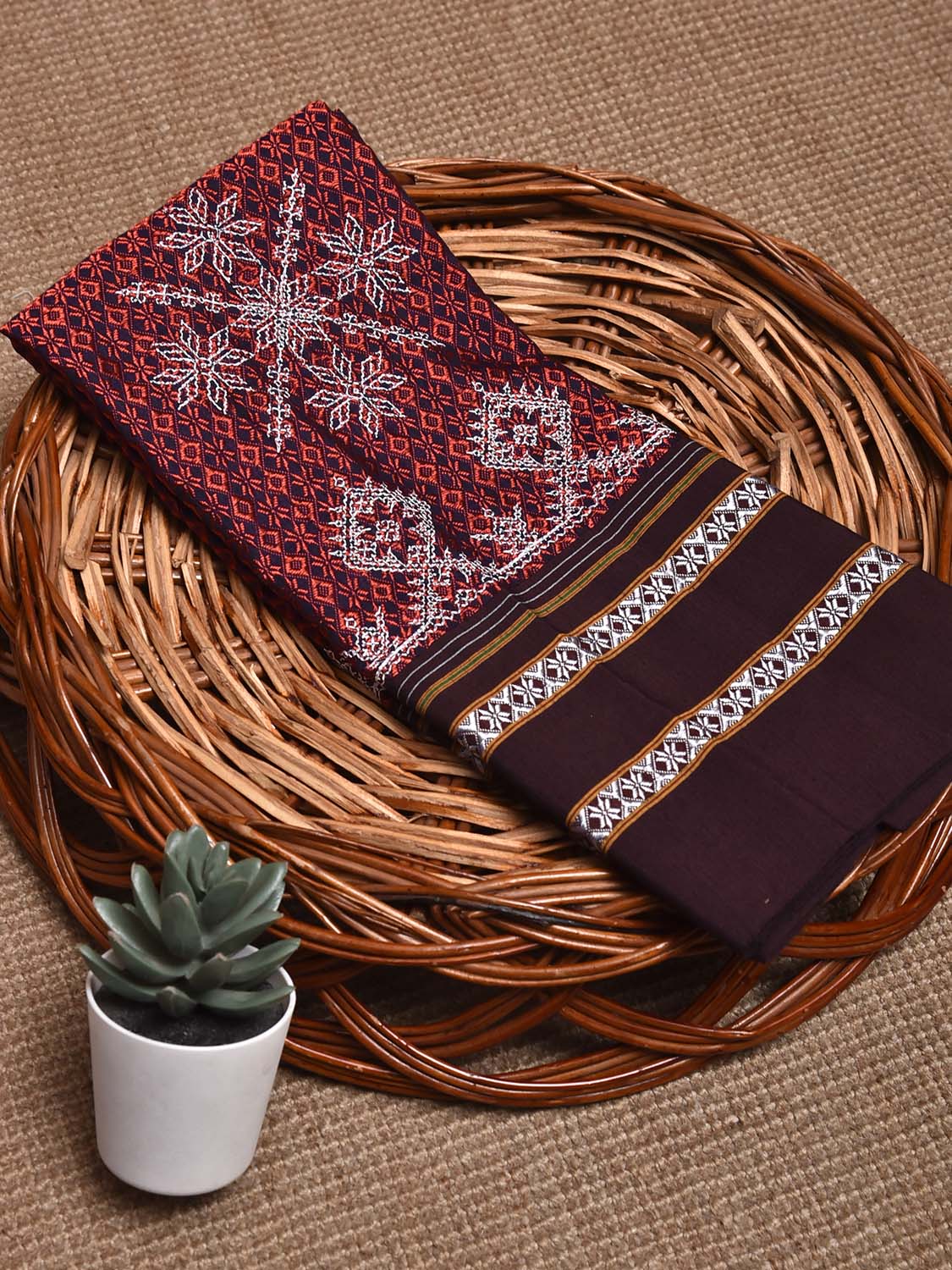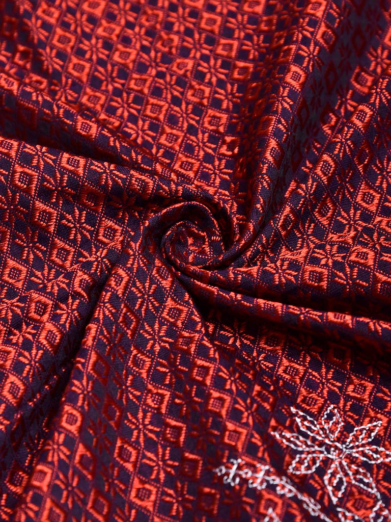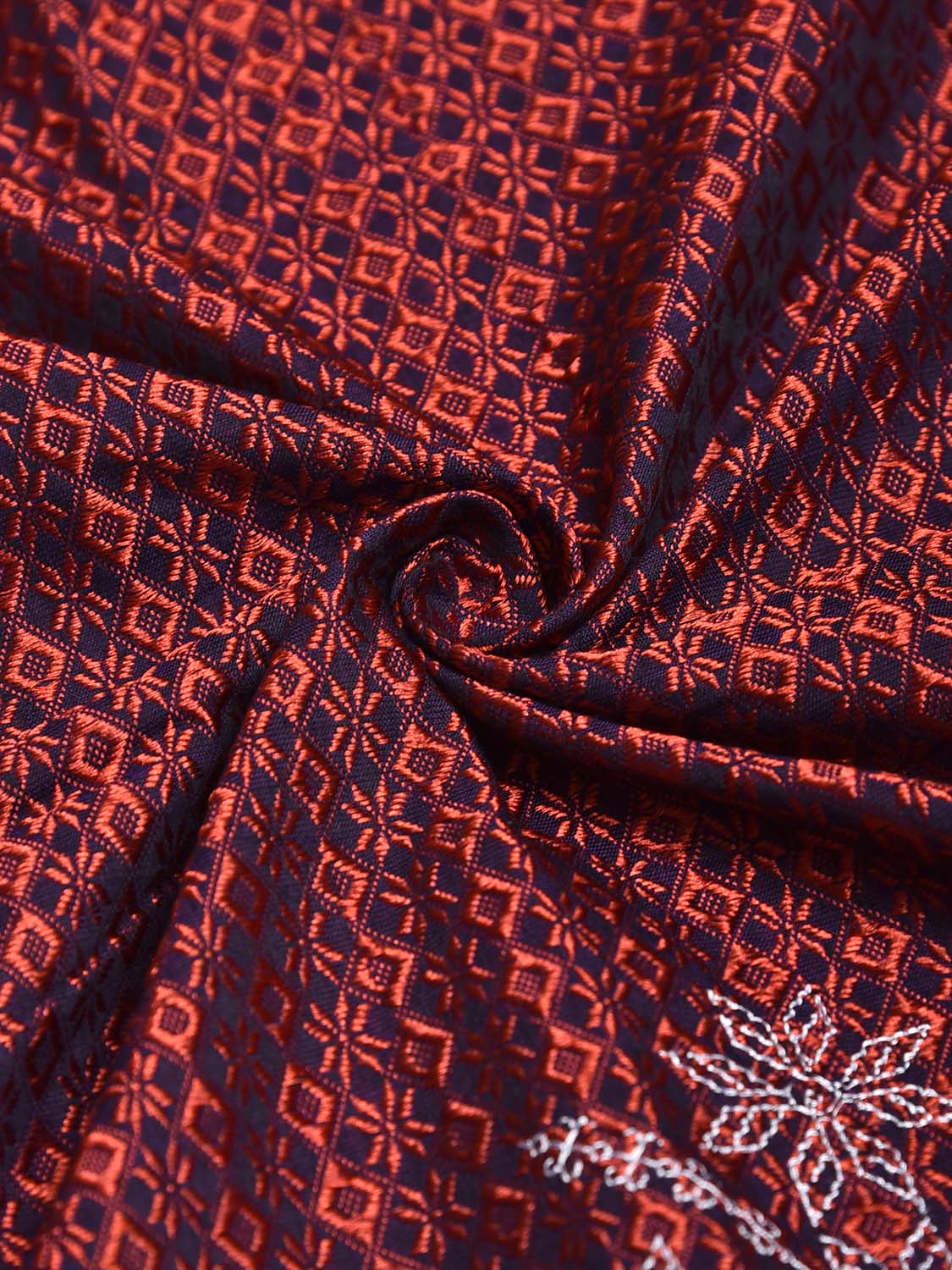 Orange and Brown Jacquard Viscose Bloue with Kasuti Work Design Length 1mt Width 32 Inches. Beautiful Pattern Blouse Fabric and Easy to Match to Any Suitable Saree. We Advise Gentle Handwash for Fabric Care.