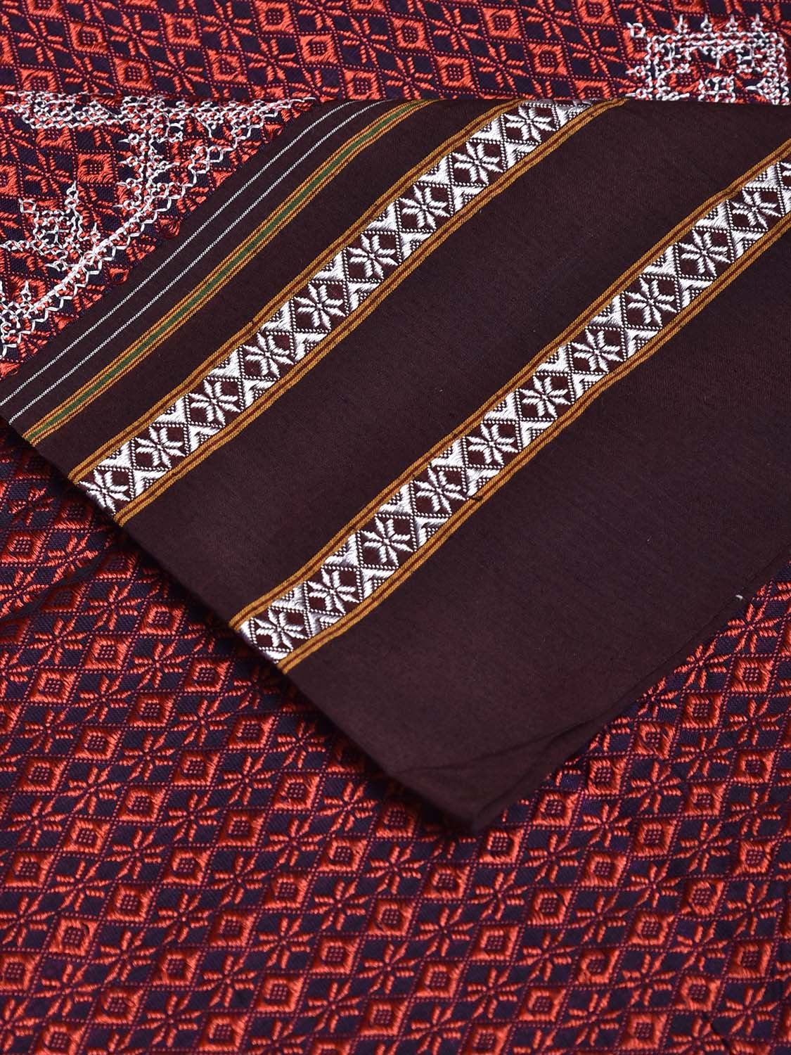 Orange and Brown Jacquard Viscose Bloue with Kasuti Work Design Length 1mt Width 32 Inches BL0248