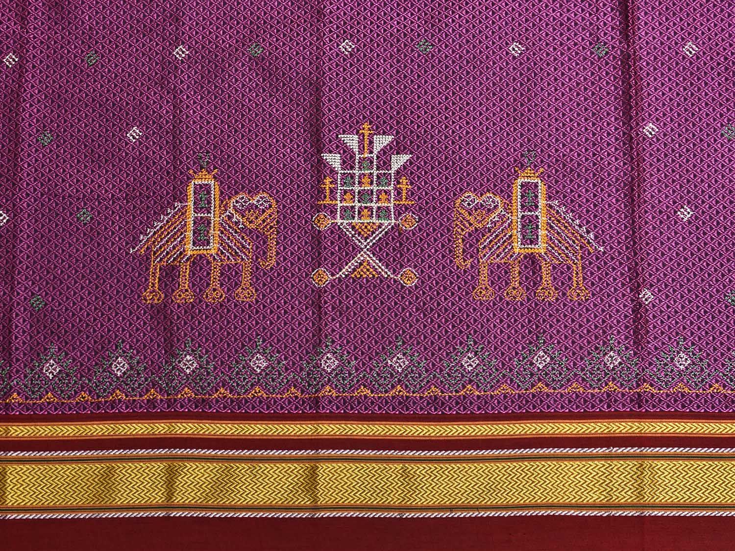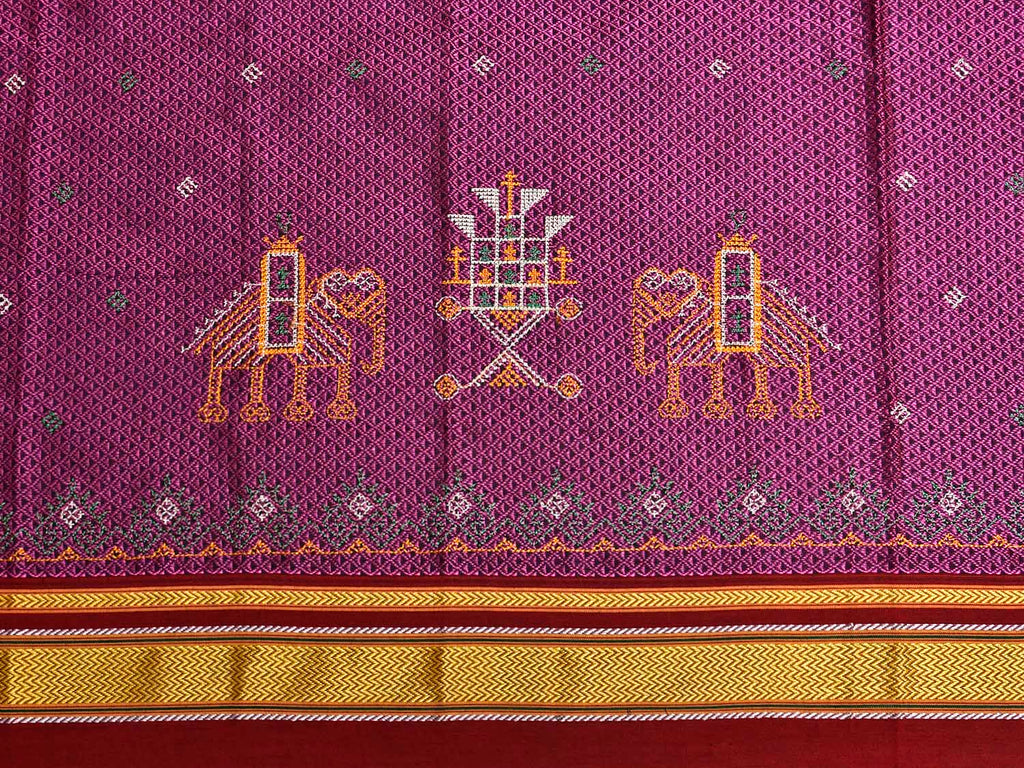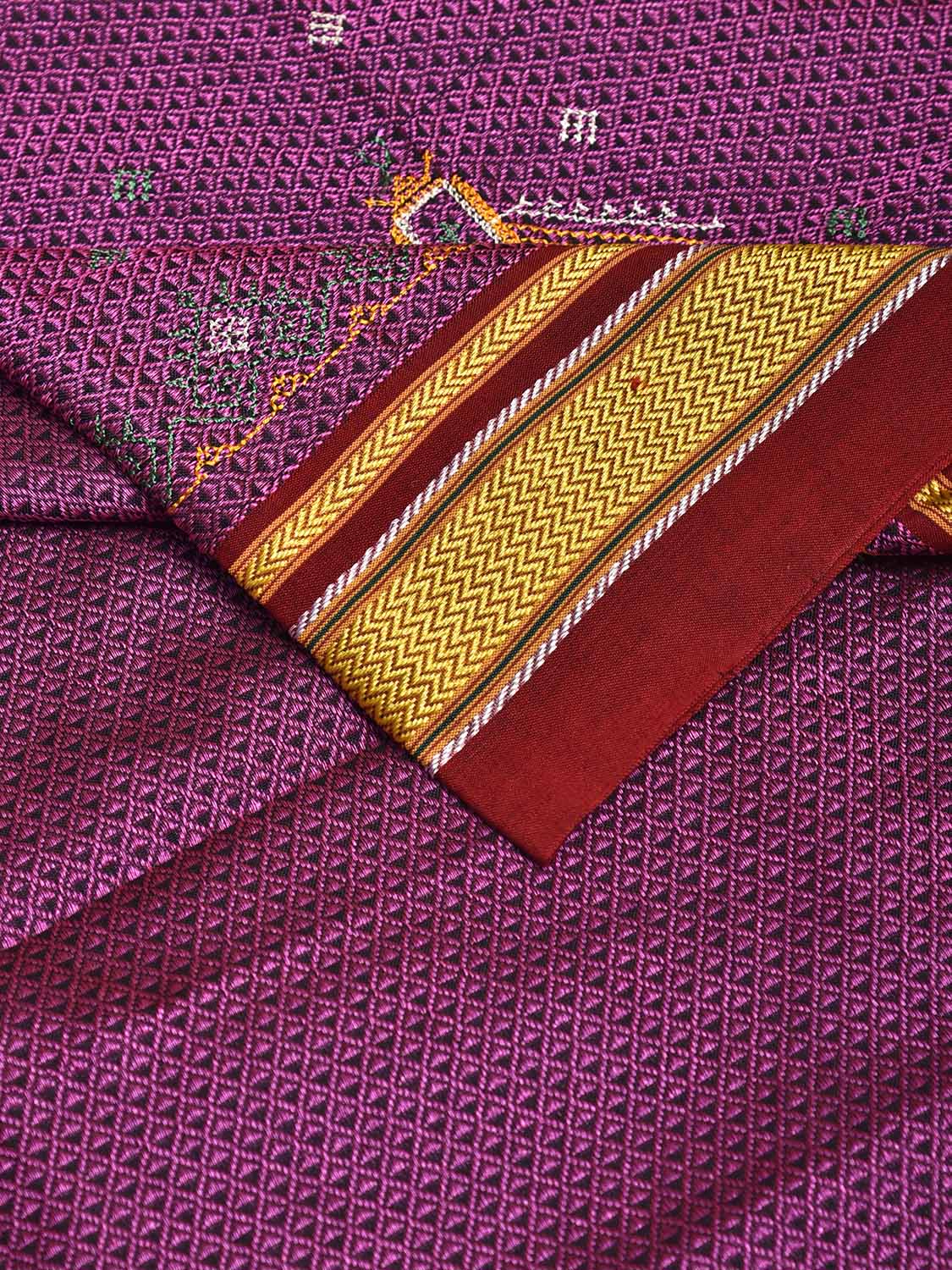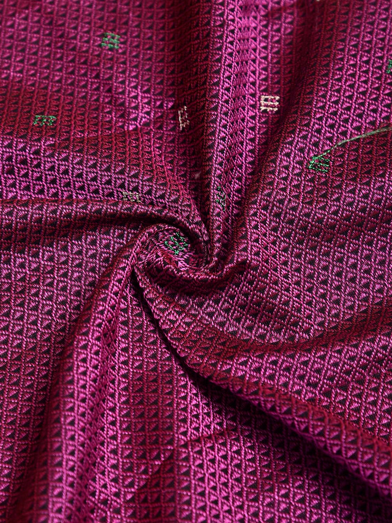 Pink and Dark Red Jacquard Viscose Bloue with Kasuti Work Design Length 1mt Width 36 Inches. Beautiful Pattern Blouse Fabric and Easy to Match to Any Suitable Saree. We Advise Gentle Handwash for Fabric Care.