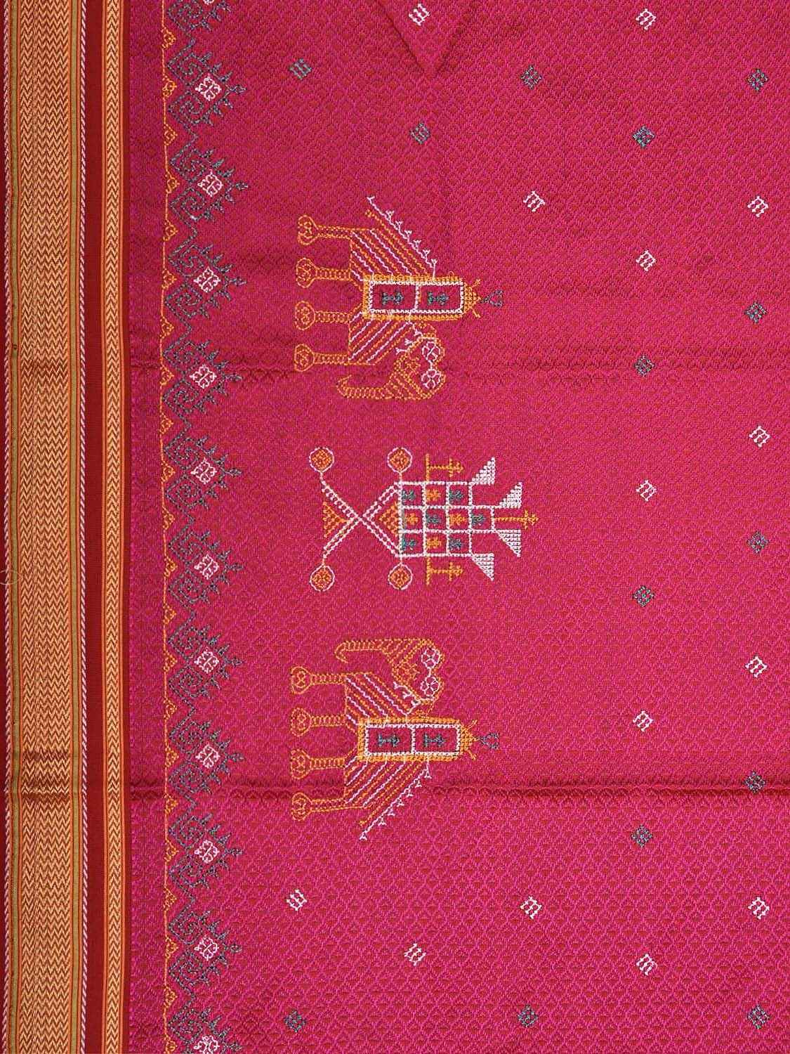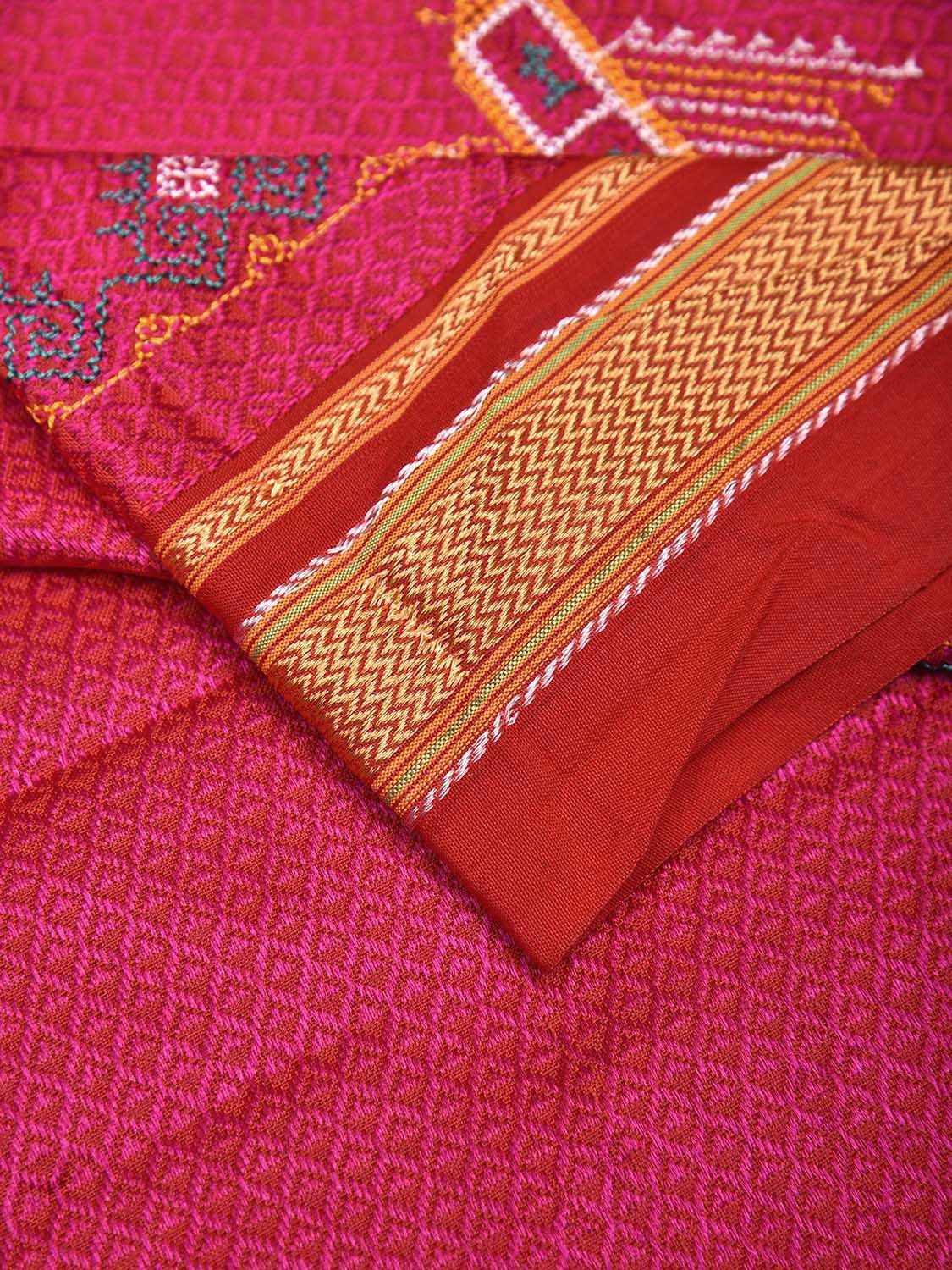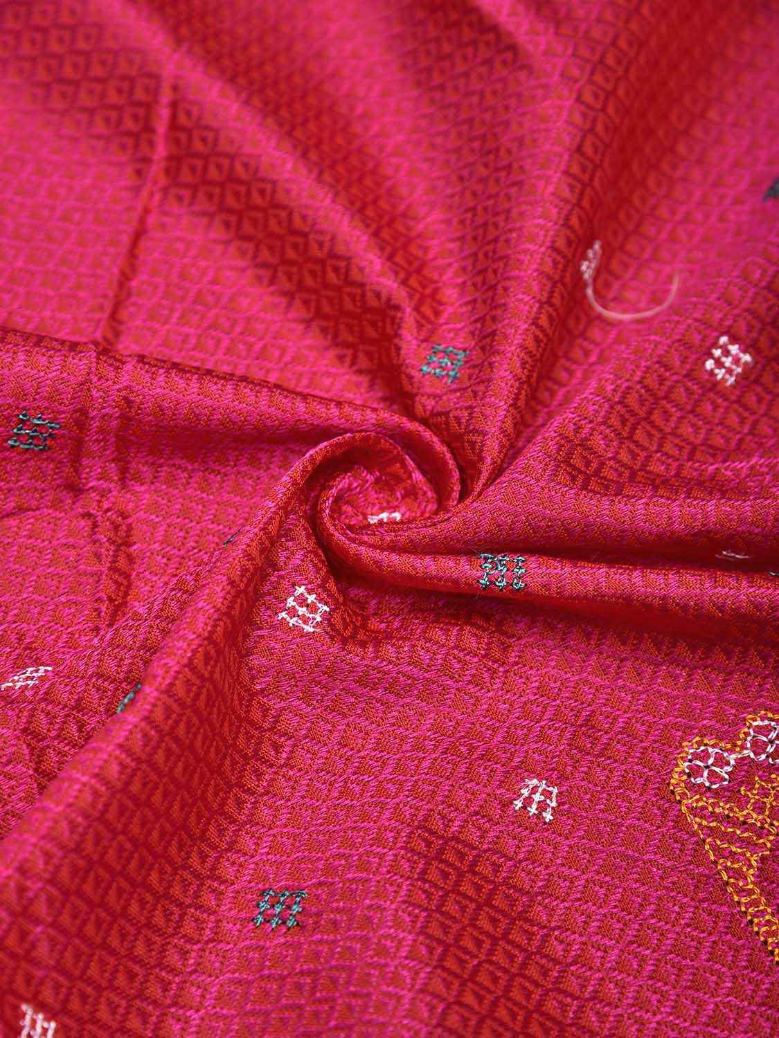 Pink and Red Jacquard Viscose Blouse with Kasuti Work Design Length 1mt Width 32 Inches. Beautiful Pattern Blouse Fabric and Easy to Match to Any Suitable Saree. We Advise Gentle Handwash for Fabric Care.