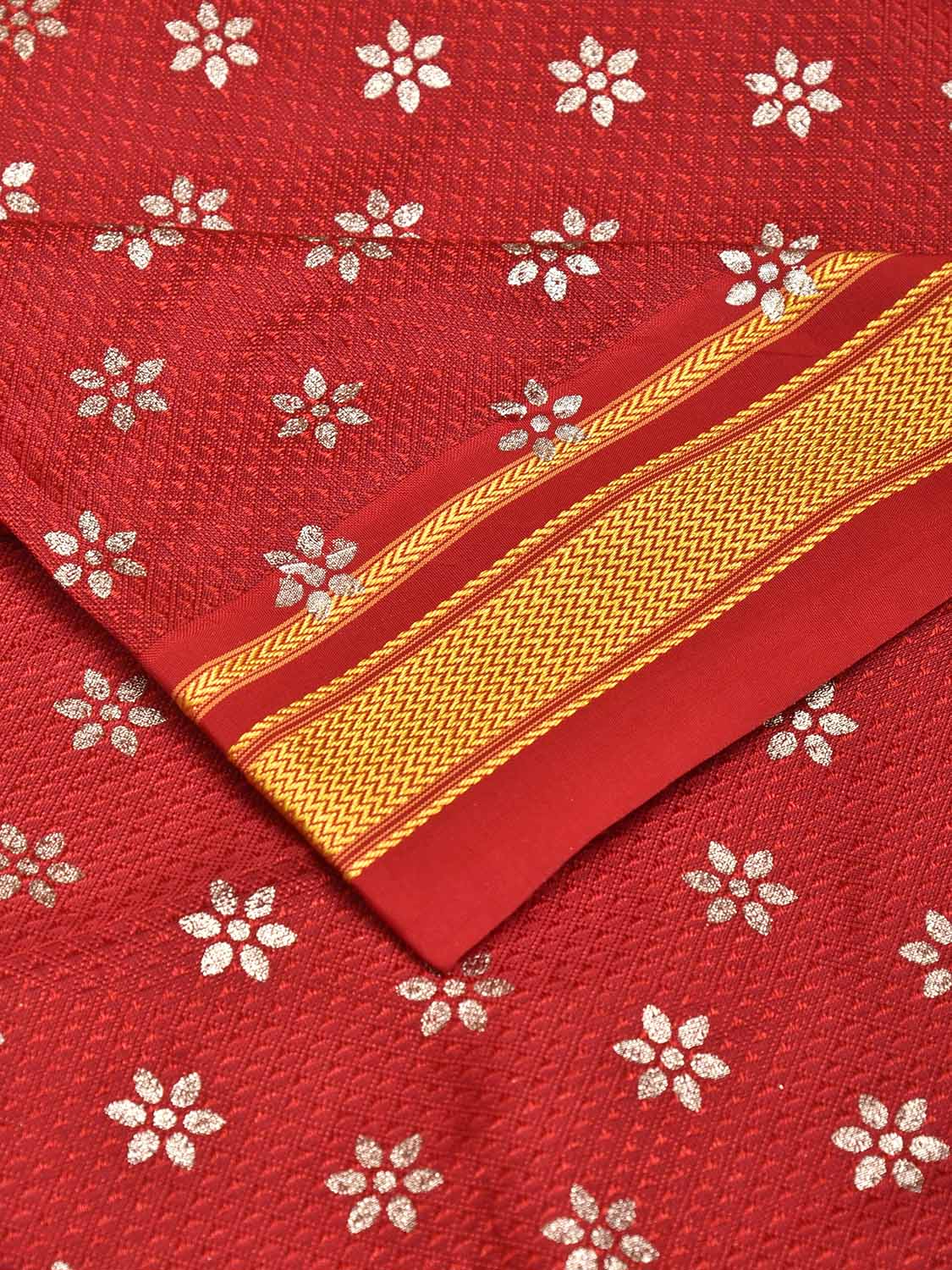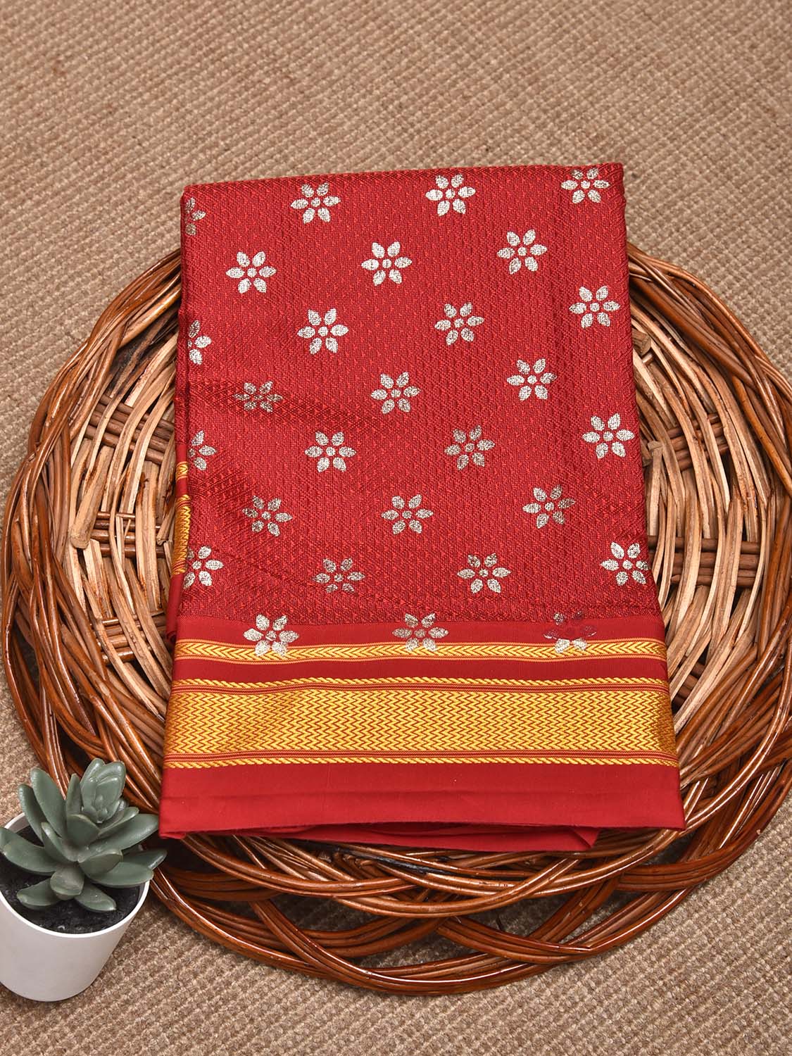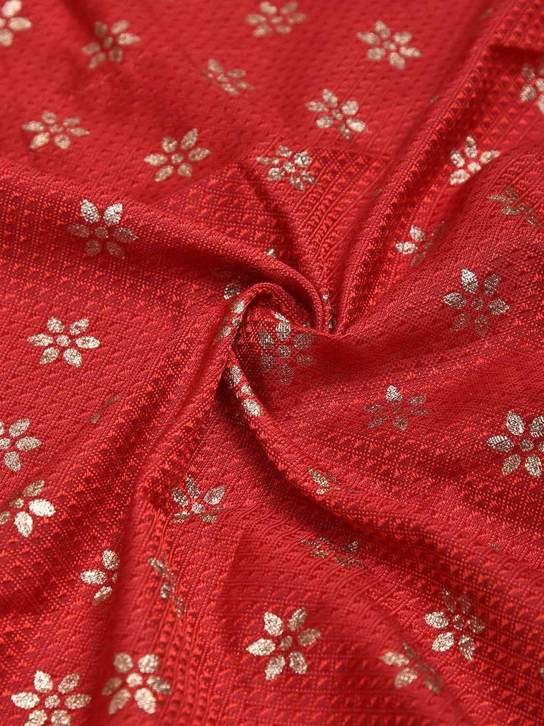 Red Jacquard Viscose Blouse with Floral Print Design Length 1mt Width 31 Inches. Beautiful Pattern Blouse Fabric and Easy to Match to Any Suitable Saree. We Advise Gentle Handwash for Fabric Care.