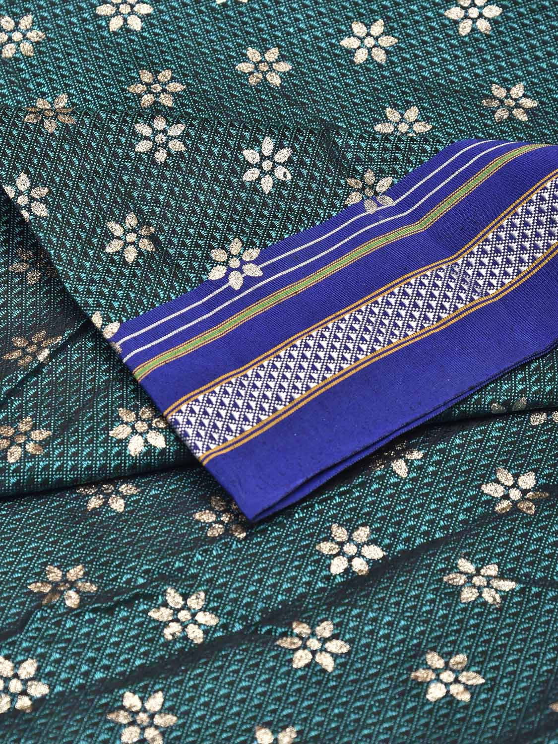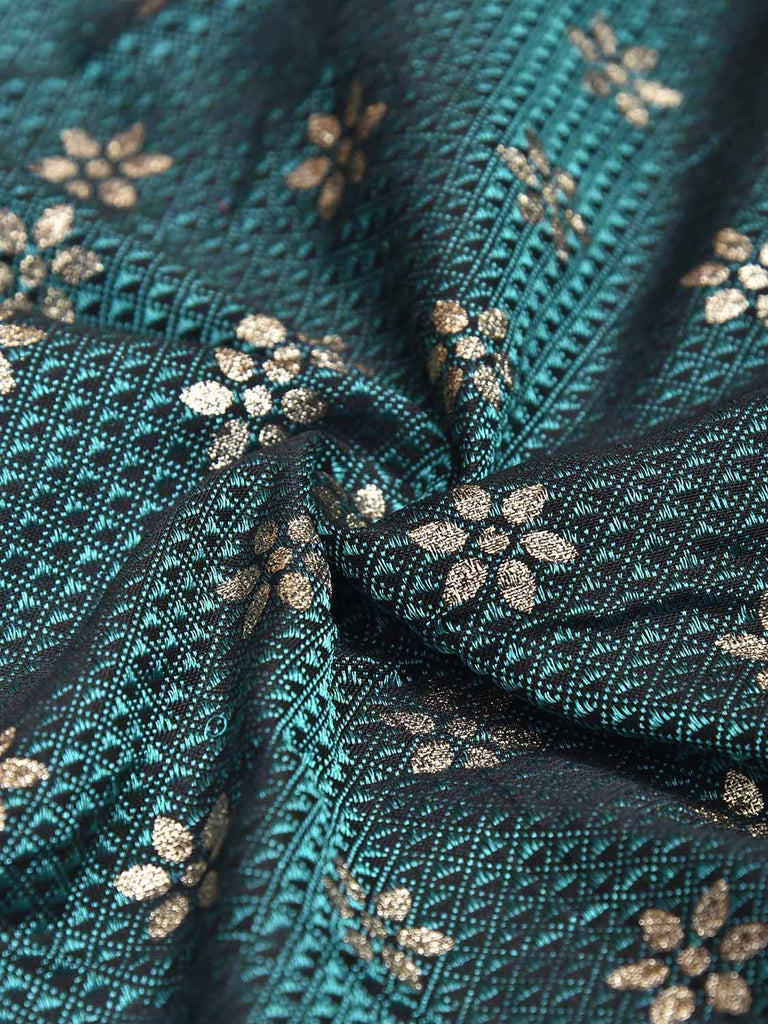Teal and Blue Jacquard Viscose Blouse with Floral Print Design Length 1mt Width 31 Inches. Beautiful Pattern Blouse Fabric and Easy to Match to Any Suitable Saree. We Advise Gentle Handwash for Fabric Care.