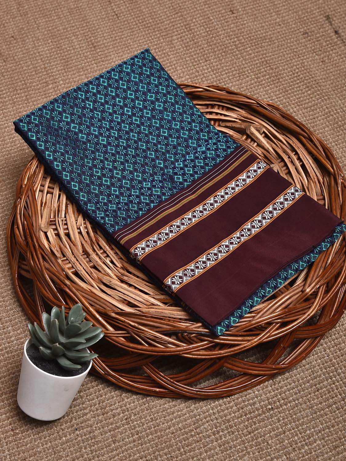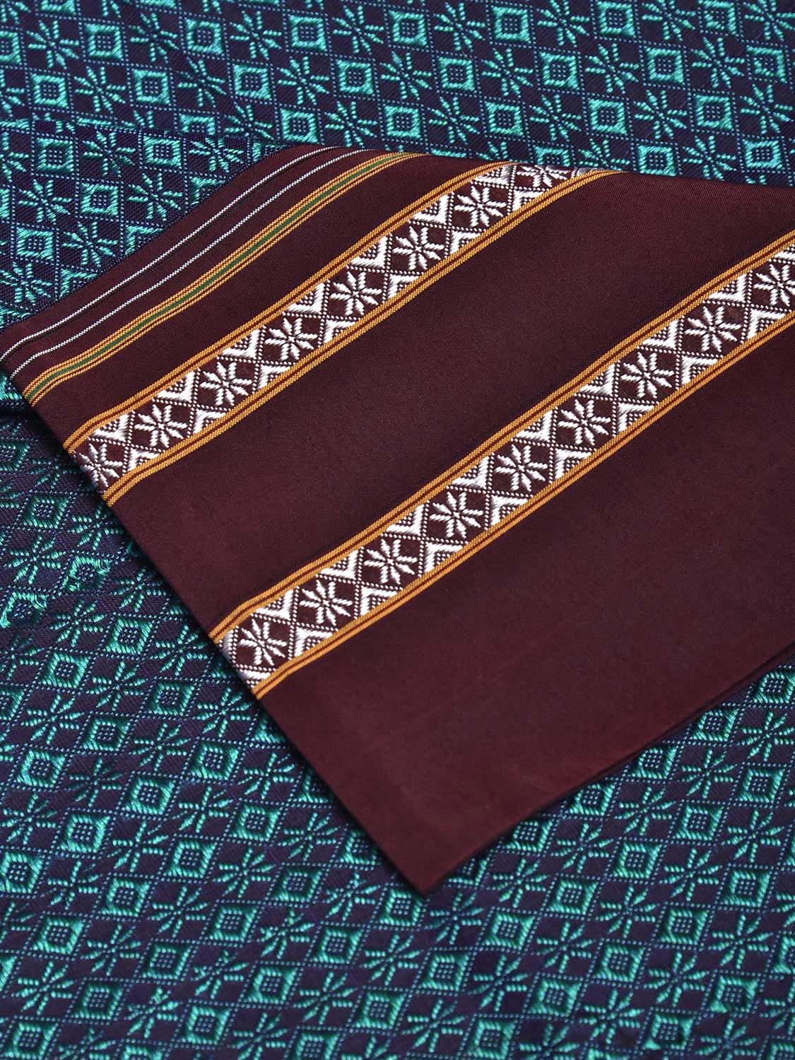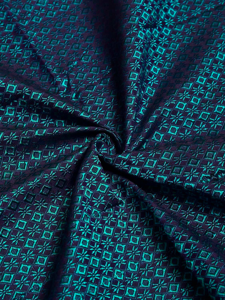 Teal and Brown Jacquard Viscose Bloue with All Over Design Length 1mt Width 32 Inches. Beautiful Pattern Blouse Fabric and Easy to Match to Any Suitable Saree. We Advise Gentle Handwash for Fabric Care.