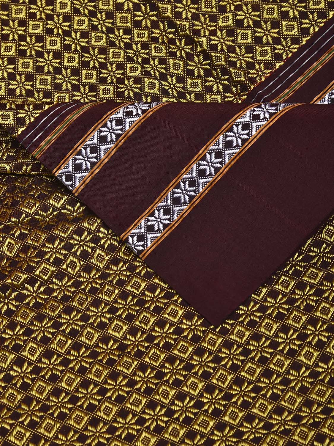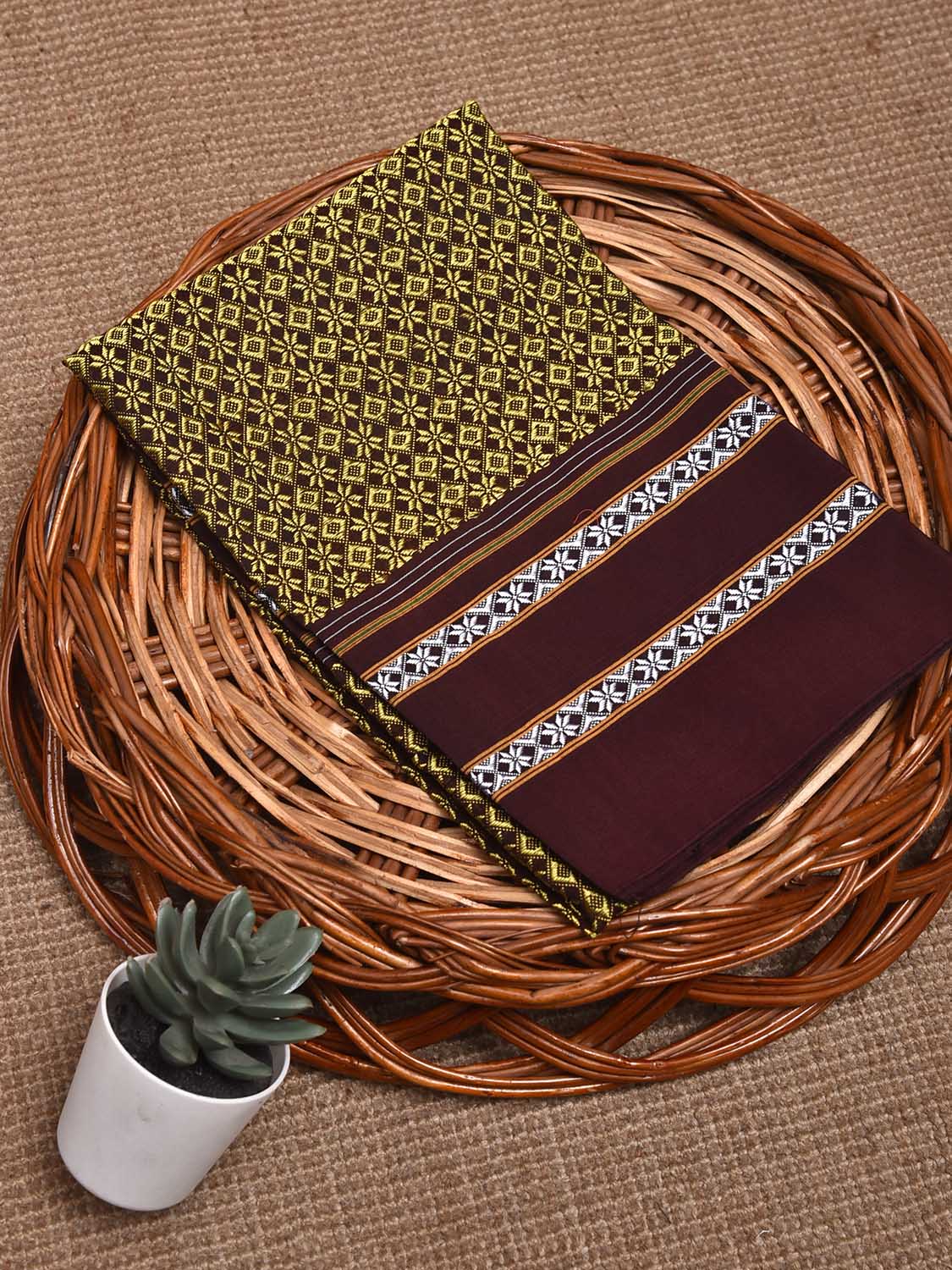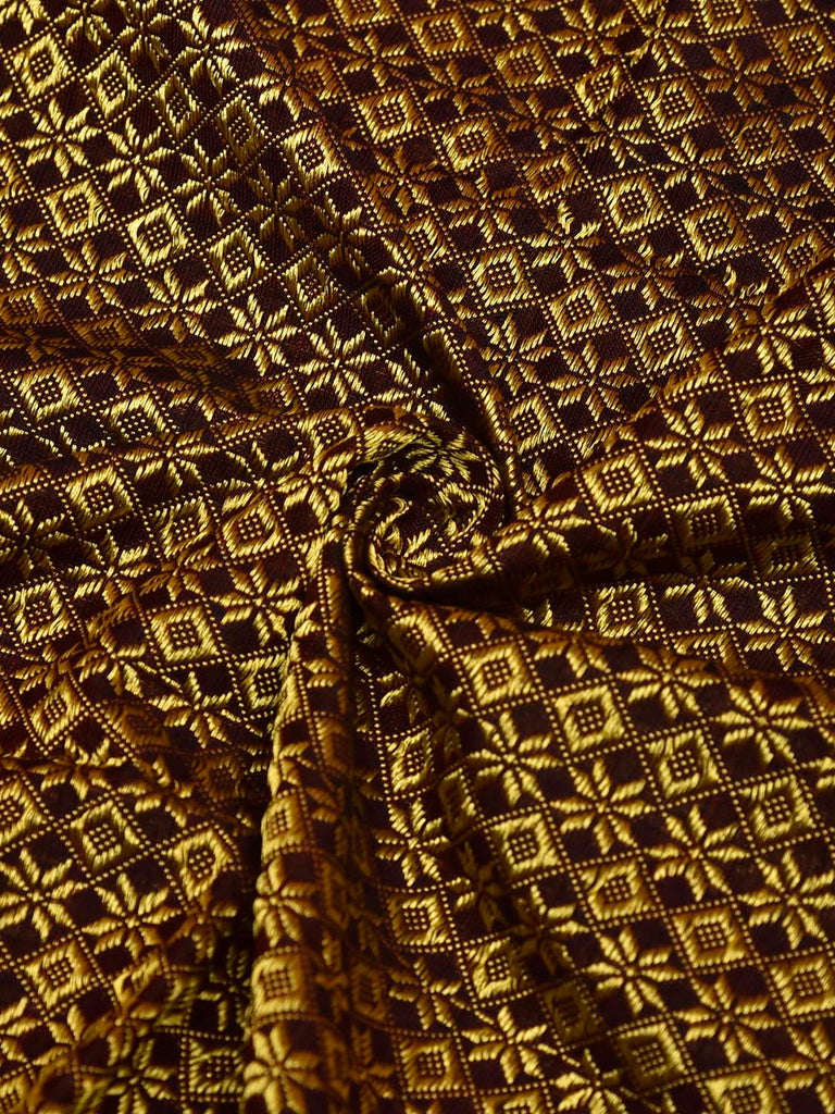 Yellow and Brown Jacquard Viscose Bloue with All Over Design Length 1mt Width 32 Inches. Beautiful Pattern Blouse Fabric and Easy to Match to Any Suitable Saree. We Advise Gentle Handwash for Fabric Care.