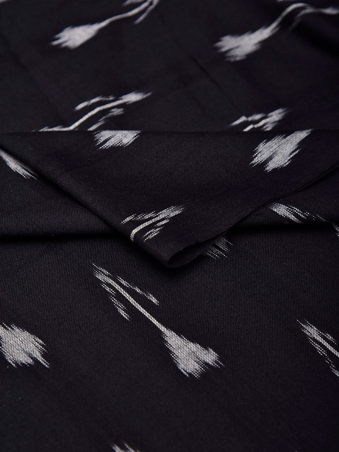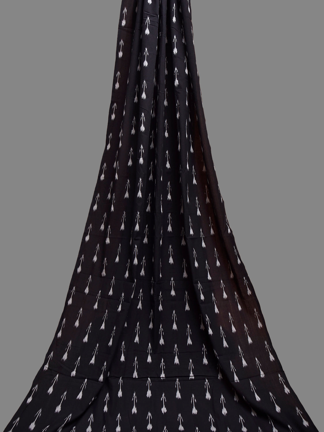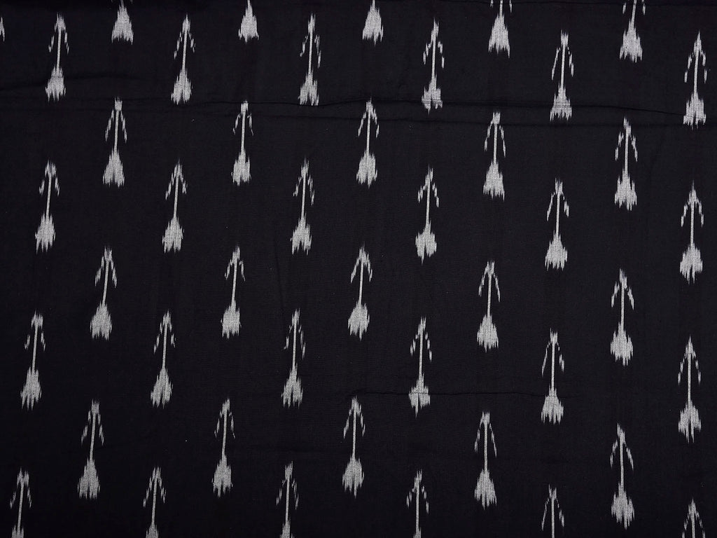 Black and Grey Pochampally Ikat Cotton 2.5mts Fabric with Arrow Head Design. This Handloom Cotton Fabric from Andhra Pradesh has been woven using the resist-dyeing, which produces the unique patterns adorning the fabric. Fabric is 44 inches in width. The price mentioned is for Quantity 1 = 2.5 meters. For fabric care we advise gentle handwash separately