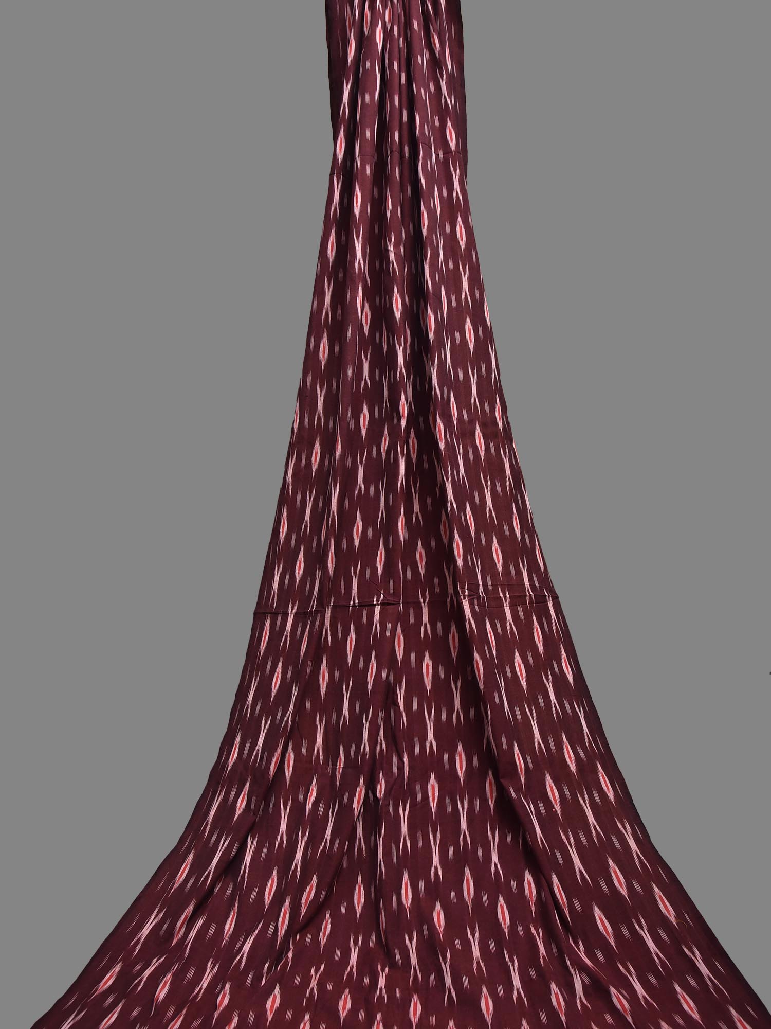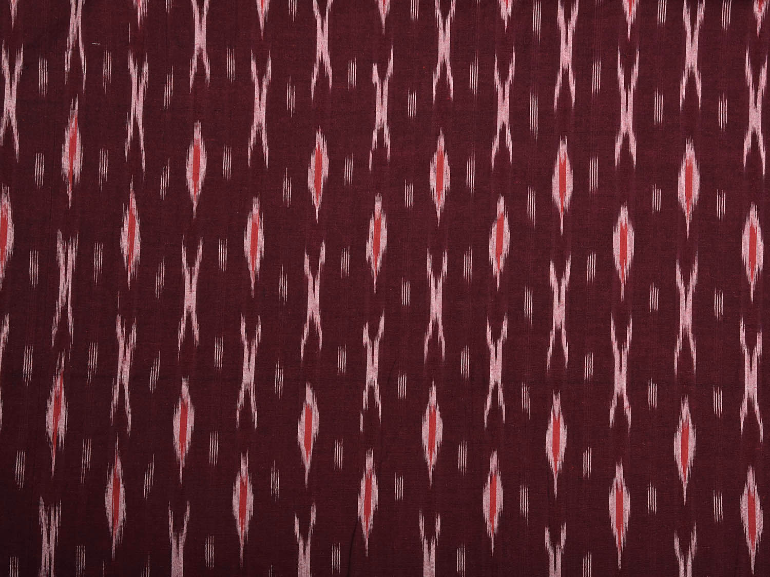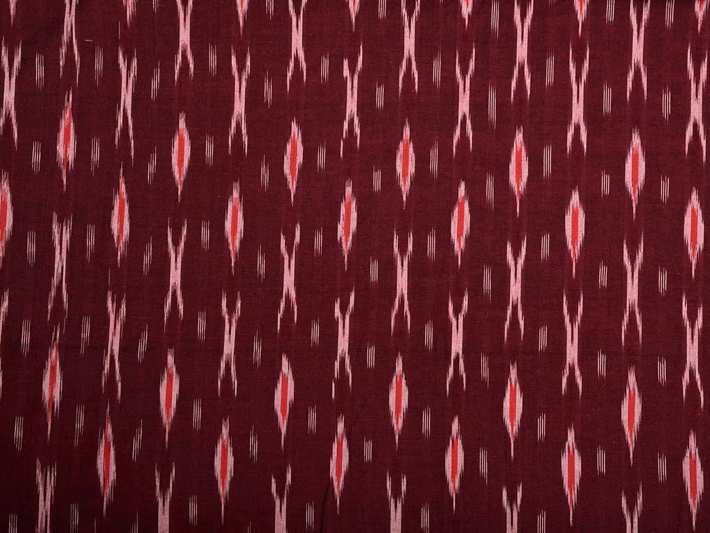 Maroon and Red Pochampally Ikat Cotton 2.5mts Fabric with Buta Design. This Handloom Cotton Fabric from Andhra Pradesh has been woven using the resist-dyeing, which produces the unique patterns adorning the fabric. Fabric is 44 inches in width. The price mentioned is for Quantity 1 = 2.5 meters. For fabric care we advise gentle handwash separately