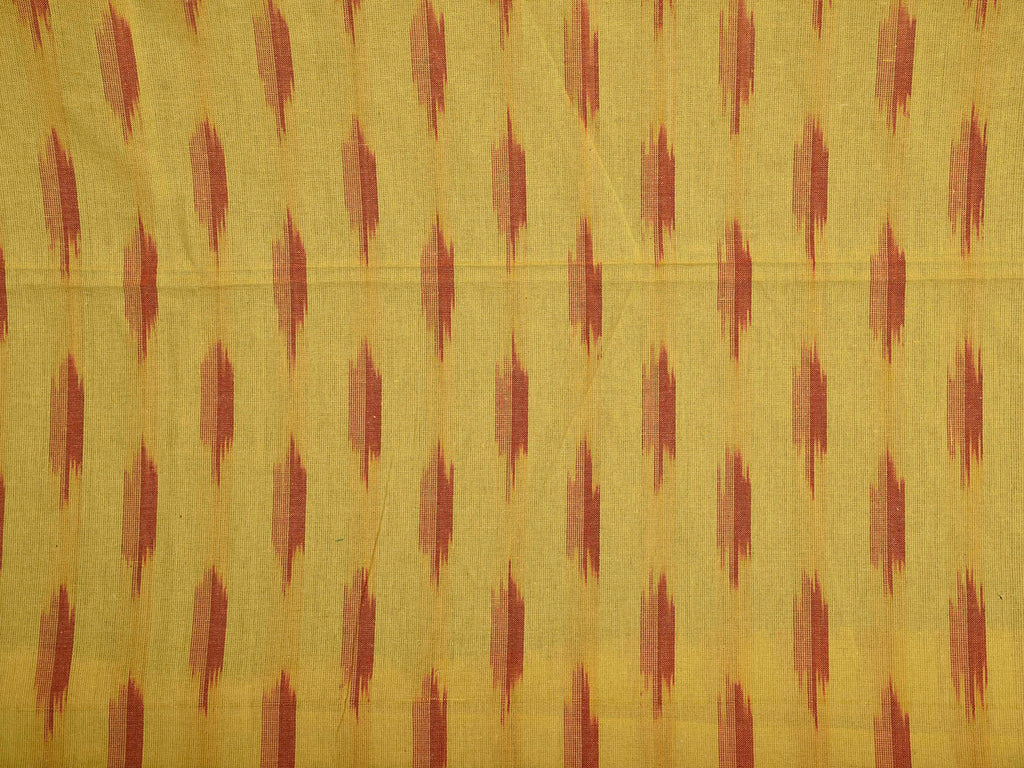 Yellow and Red Pochampally Ikat Cotton 2.5mts Fabric with Buta Design. This Handloom Cotton Fabric from Andhra Pradesh has been woven using the resist-dyeing, which produces the unique patterns adorning the fabric. Fabric is 44 inches in width. The price mentioned is for Quantity 1 = 2.5 meters. For fabric care we advise gentle handwash separately