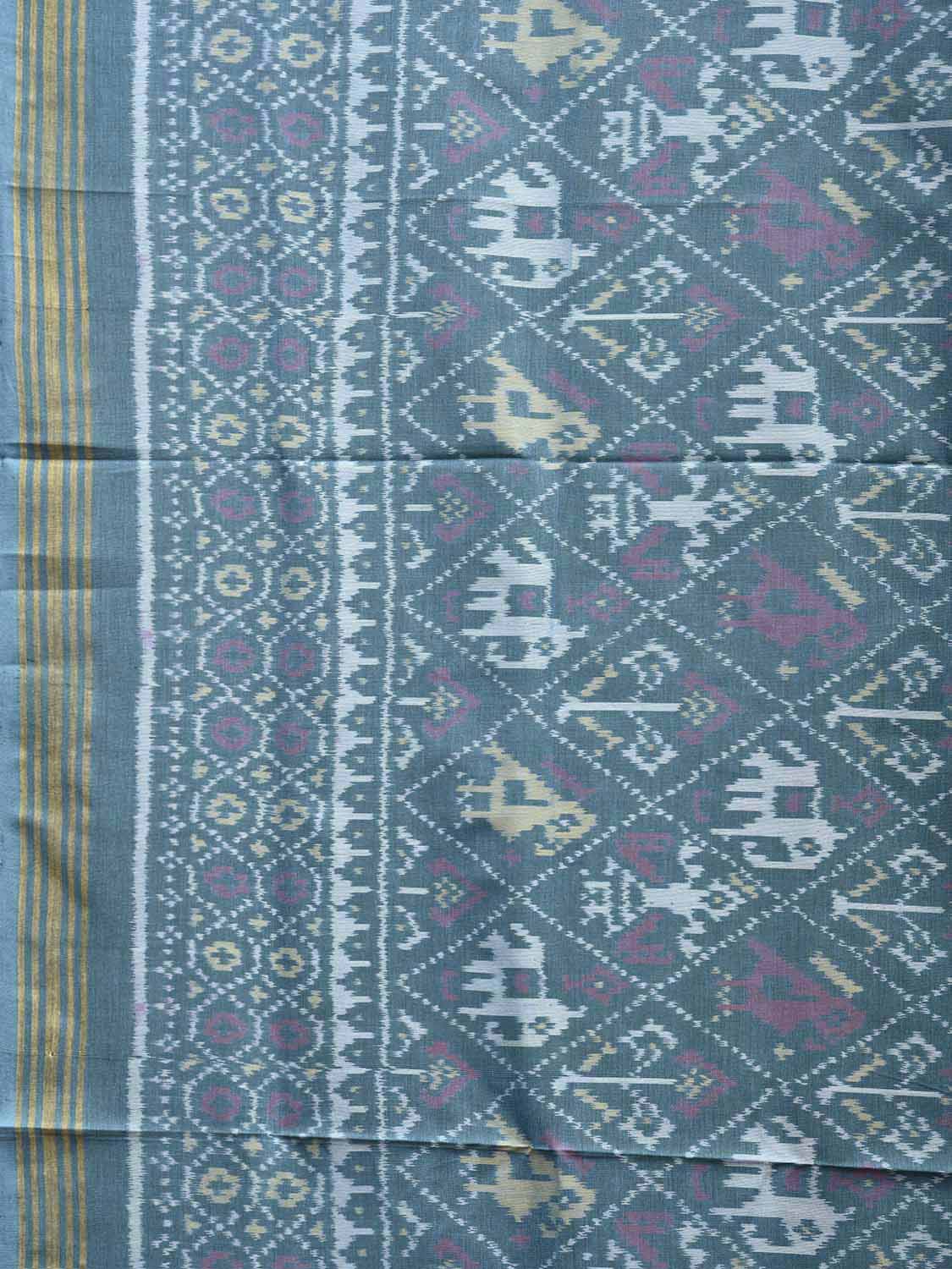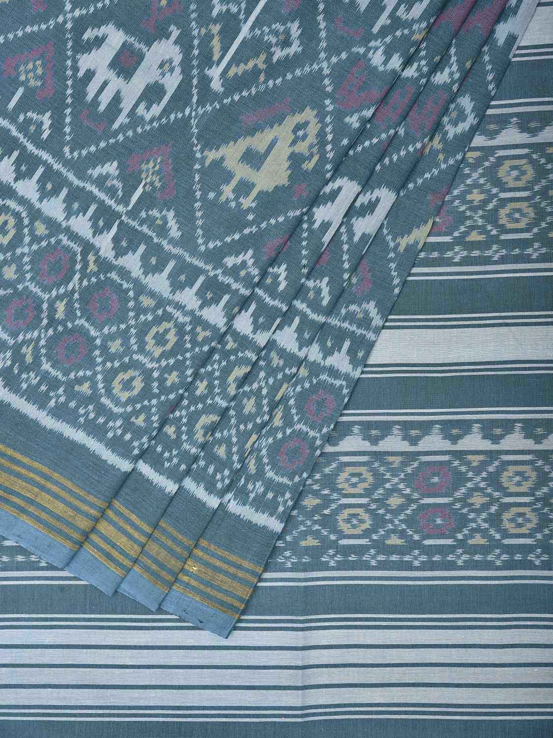 Blue Ikat Cotton Handloom Saree with All Over Elephant and Parrot Design. This Handloom Saree from Andhra Pradesh has been woven using the resist-dyeing, which produces the unique patterns adorning the fabric. We advise gentle handwash separately for fabric care.