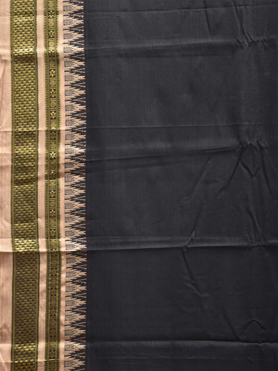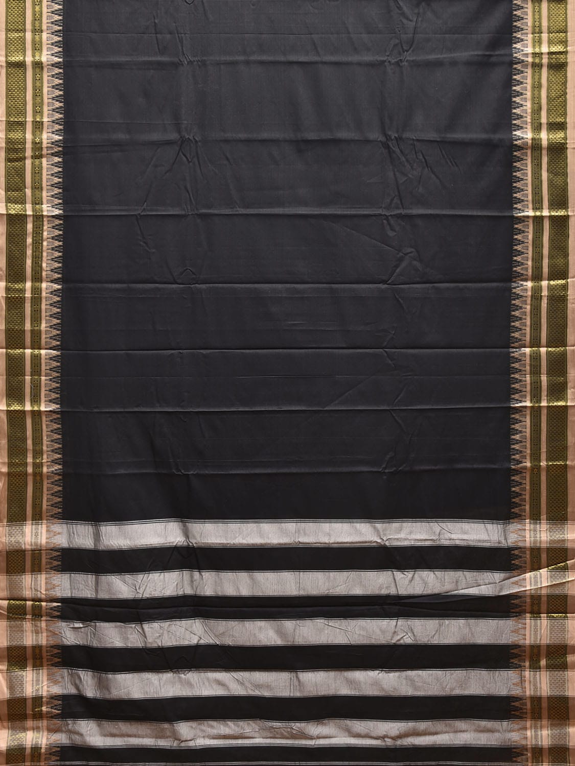 Black and Cream ilkal Cotton Plain Saree with Strips Pallu Design No Blouse il0142