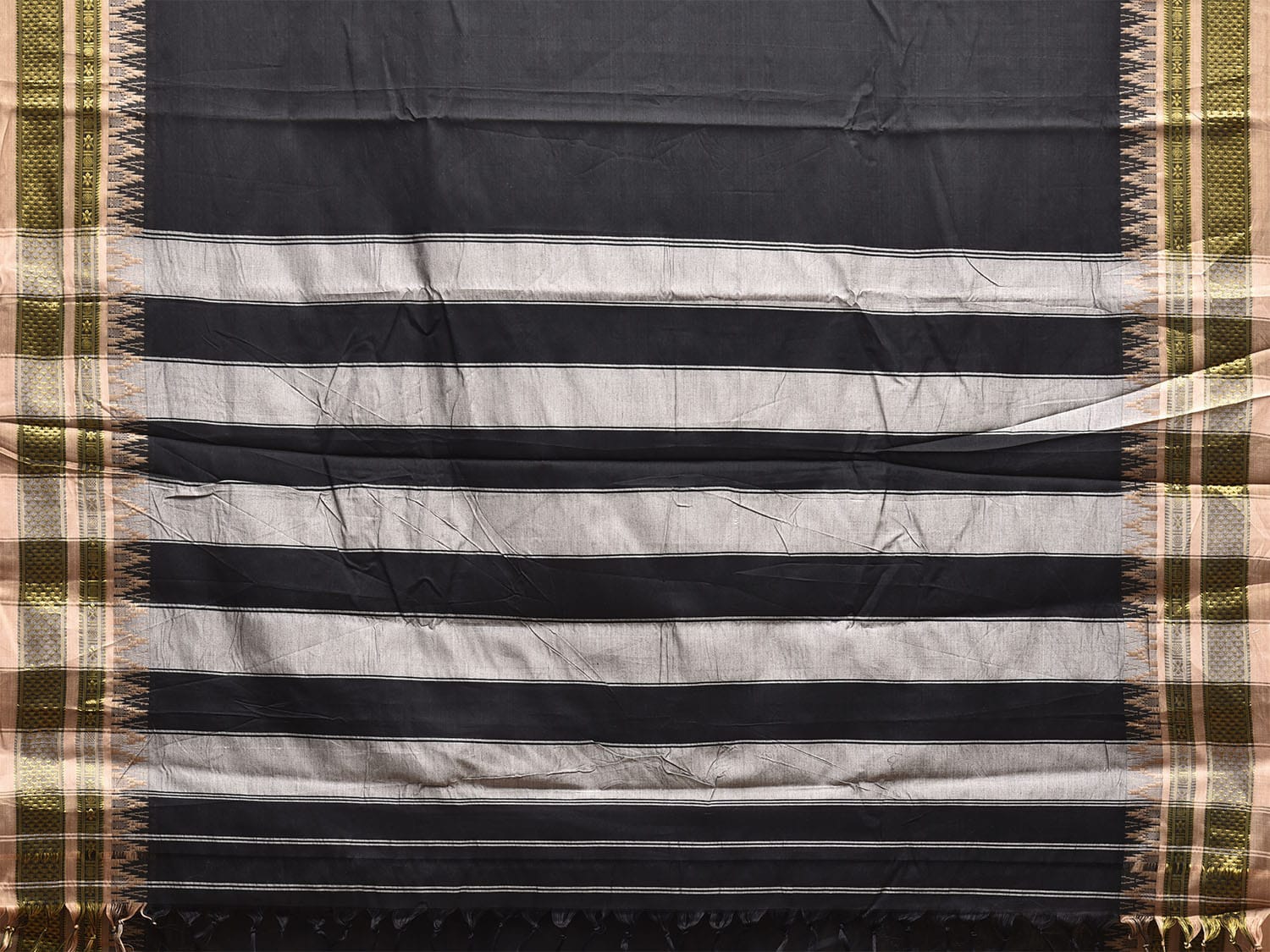 Black and Cream ilkal Cotton Plain Saree with Strips Pallu Design No Blouse. For fabric care we advise gentle handwash separately. This saree has no blouse.