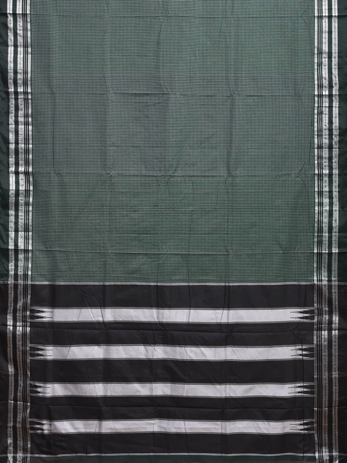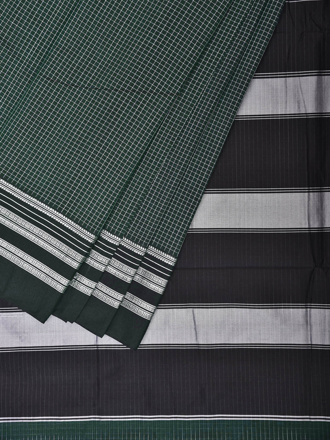 Green and Black ilkal Cotton Viscose Saree with Checks and Contrast Pallu Design No Blouse il0125
