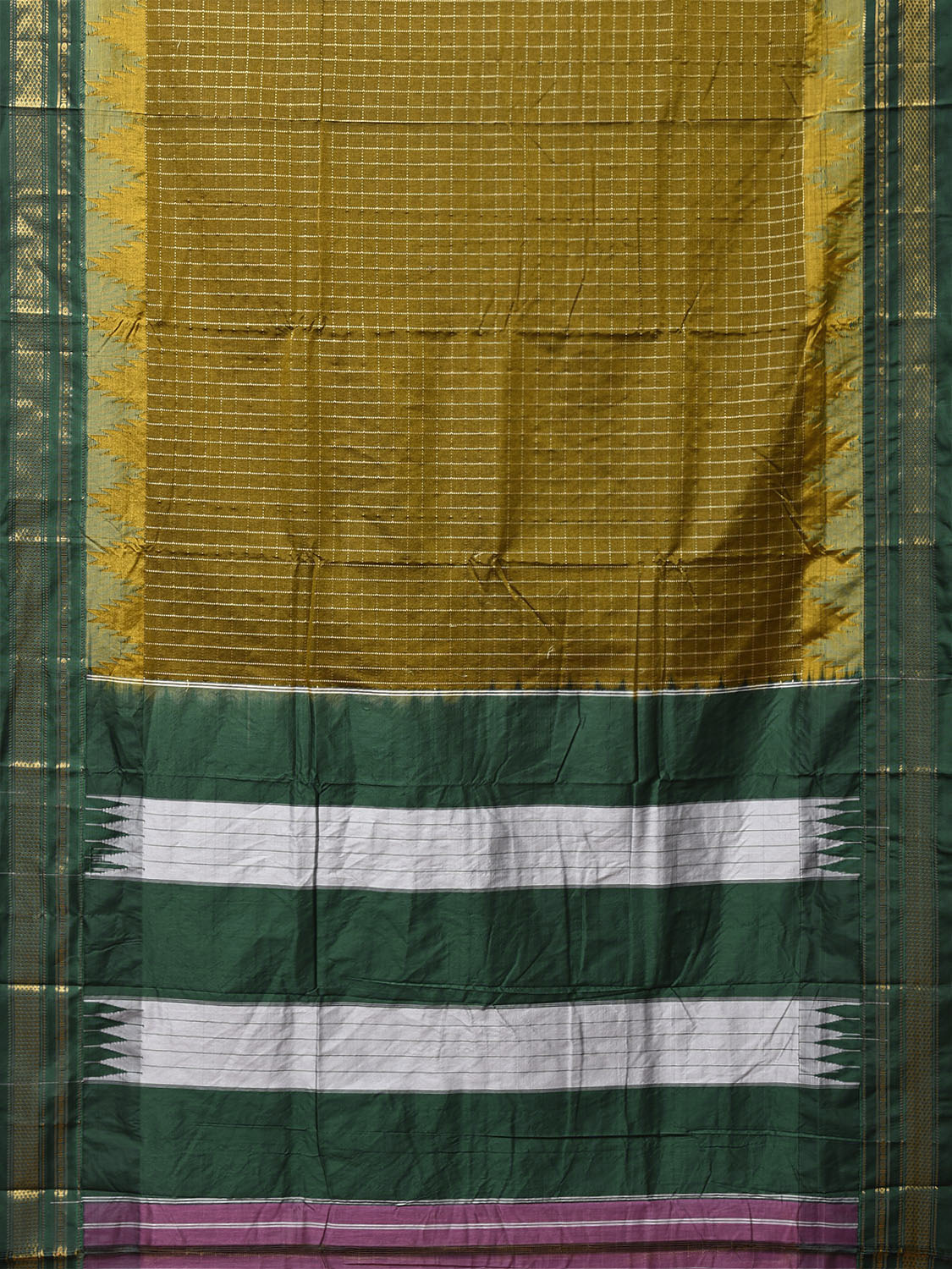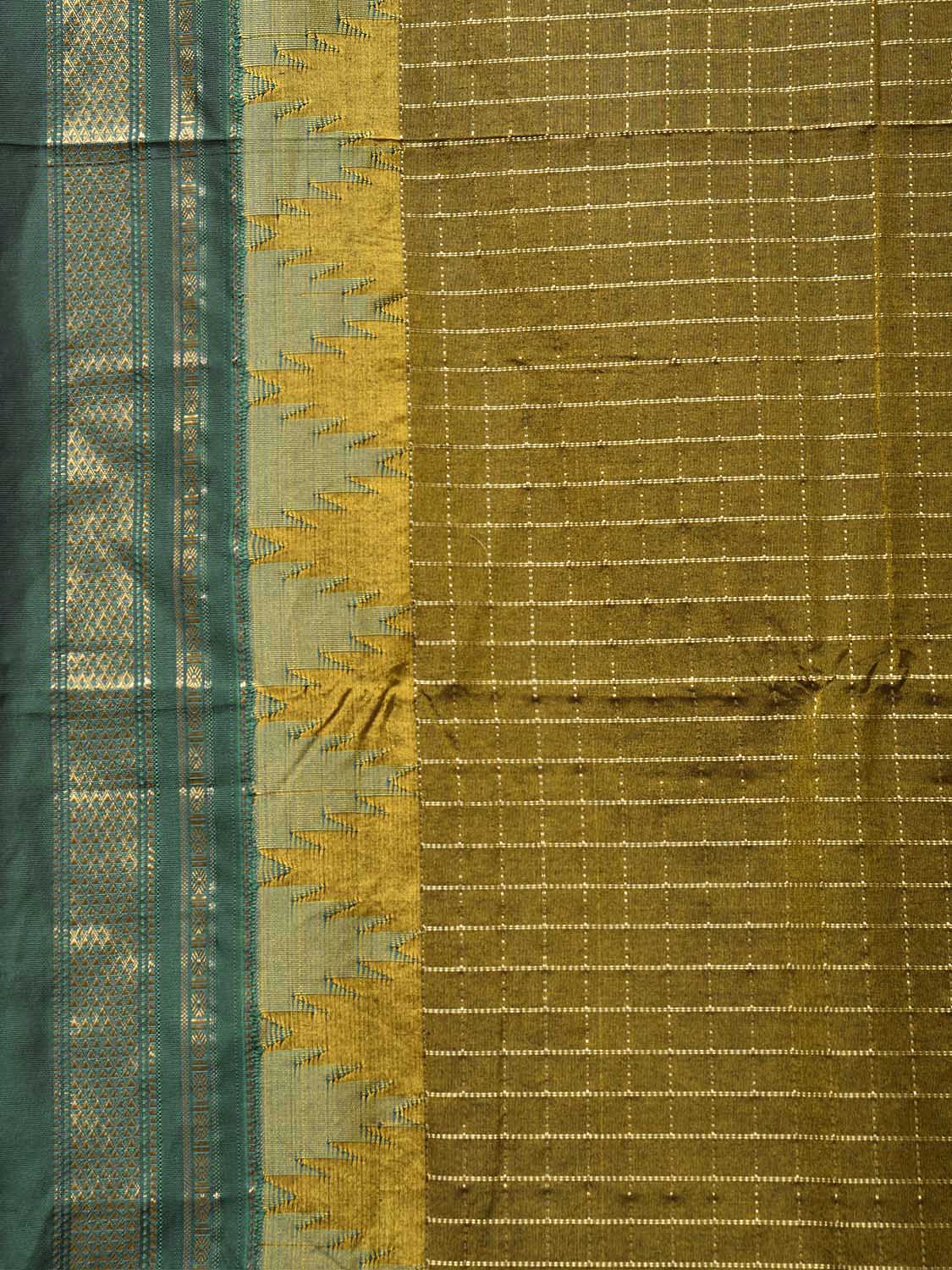 Olive and Green ilkal Viscose Saree with Temple Border and Checks Body Design il0153