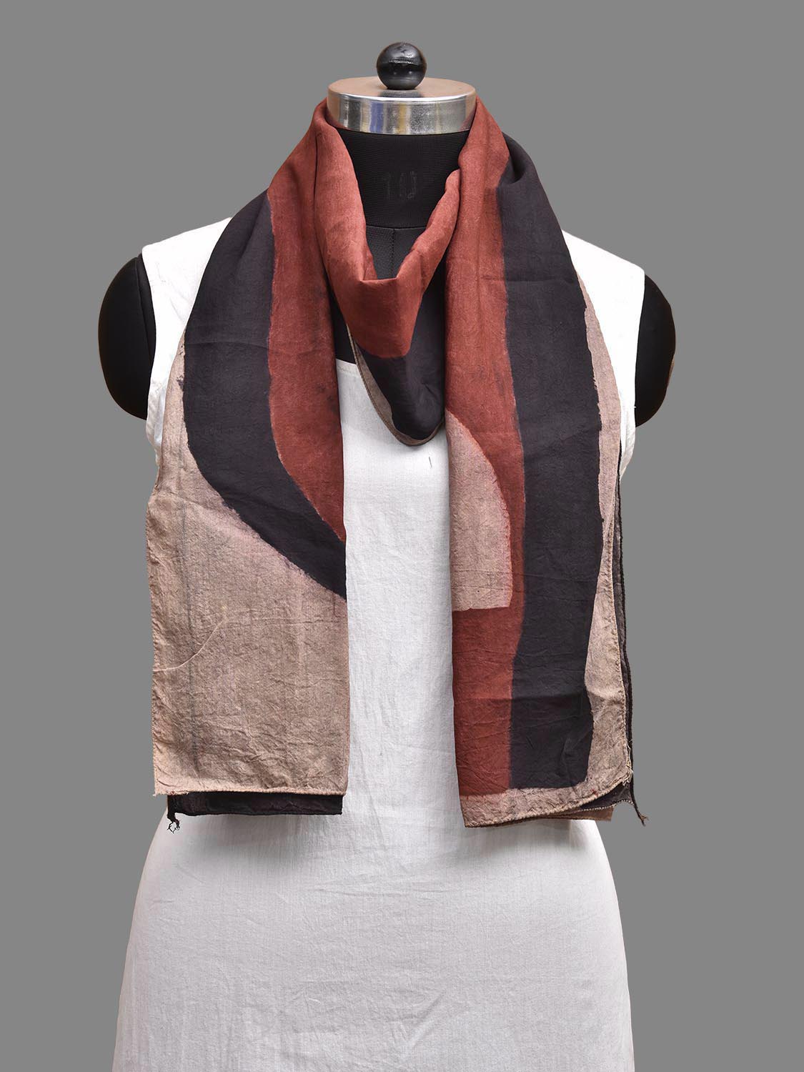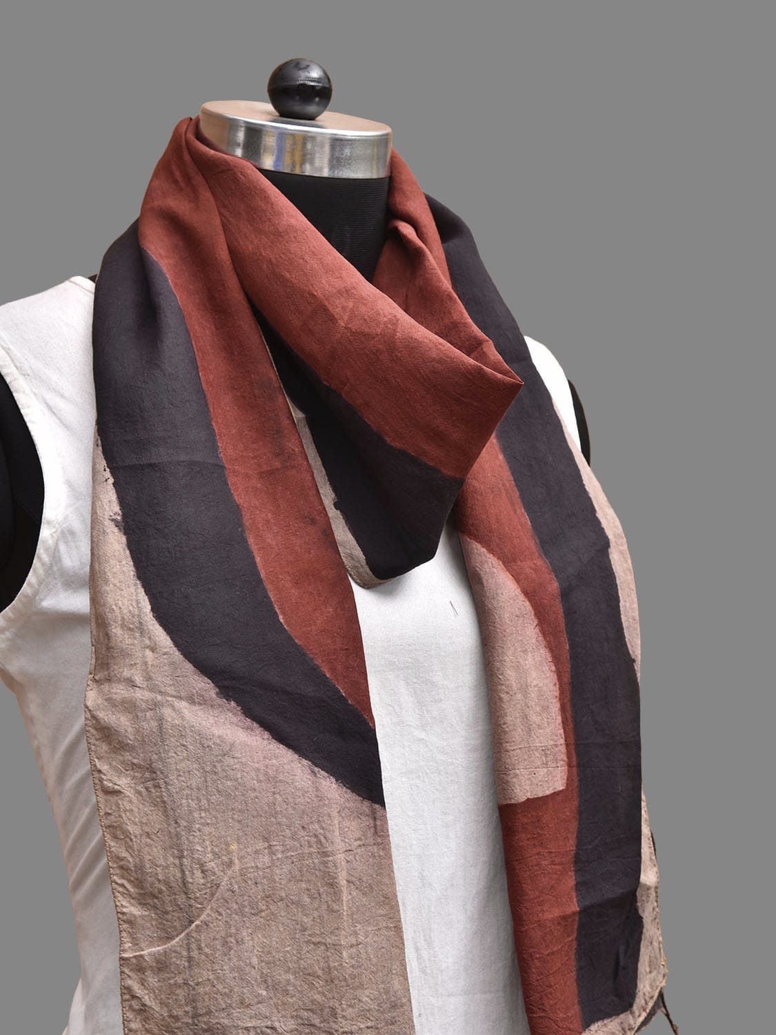 Red and Black Kalamkari Hand Painted Sico Stole with Geometric Design. This hand painted kalamkari is done using natural dyes. As they are natural colors they bleed with initial washes, so we suggest Dry clean.