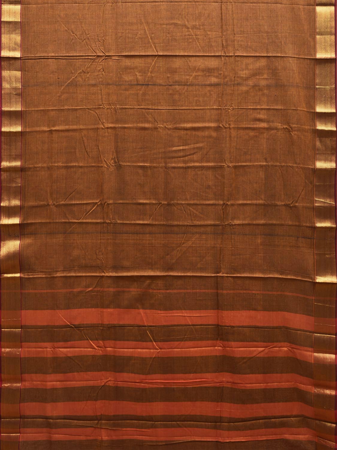 Dark Mustard Mangalgiri Cotton Viscose Plain Saree with Strips Pallu Design No Blouse. These are Simple and Traditional Andhra Pradesh Handloom Dupattas, being soft they are comfortable to wear. For fabric care we advise gentle handwash it separately. This saree has no blouse.