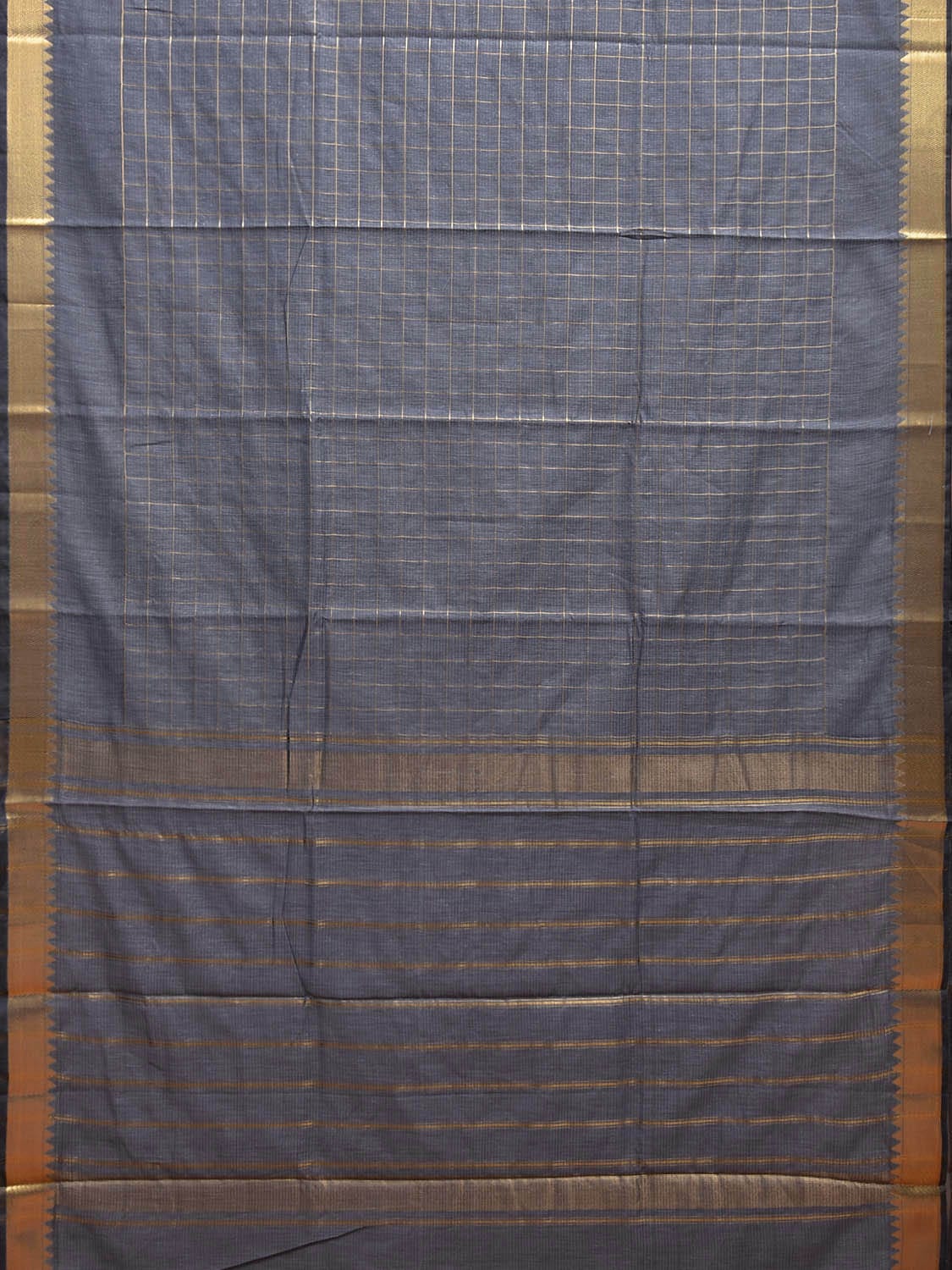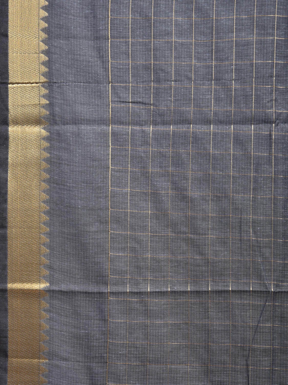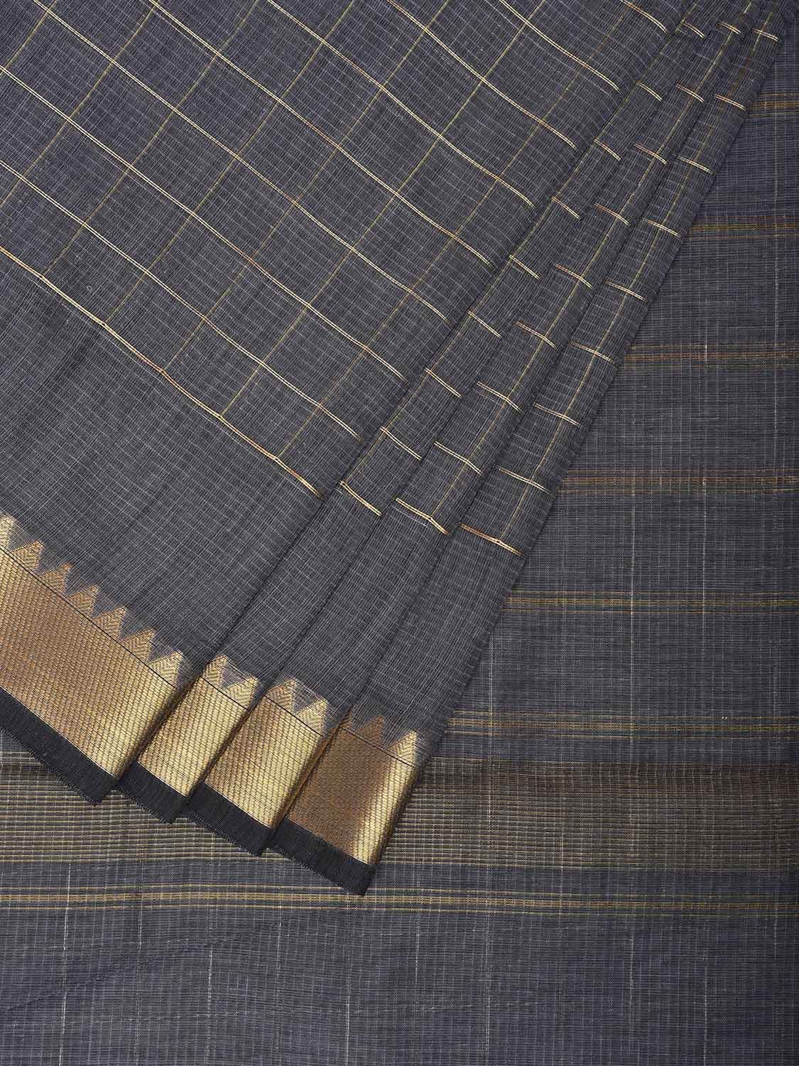 Grey Mangalgiri Cotton Saree with Checks and Strips Pallu Design. These are Simple and Traditional Andhra Pradesh Handloom Dupattas, being soft cotton they are comfortable to wear. For fabric care we advise gentle handwash it separately.