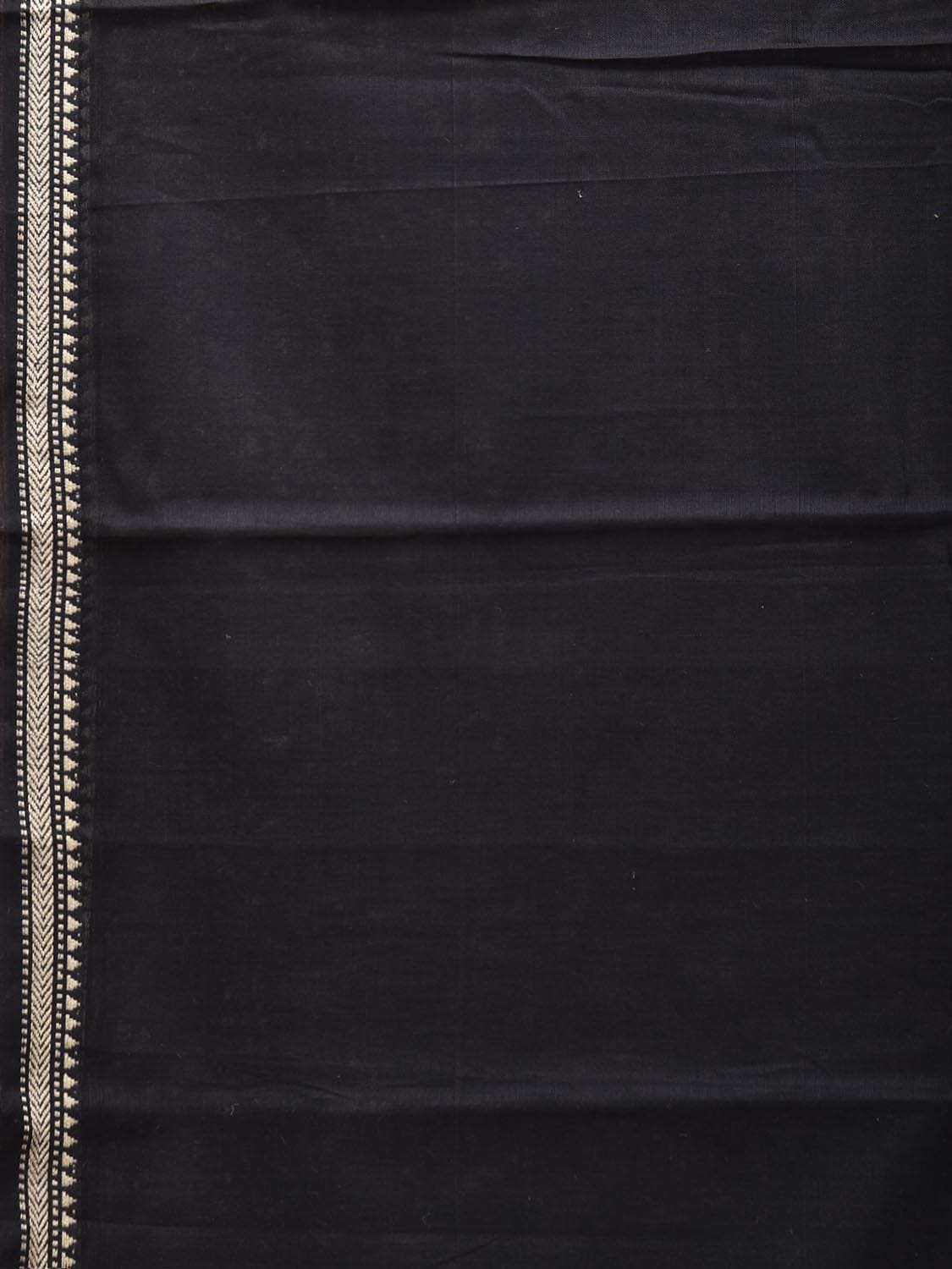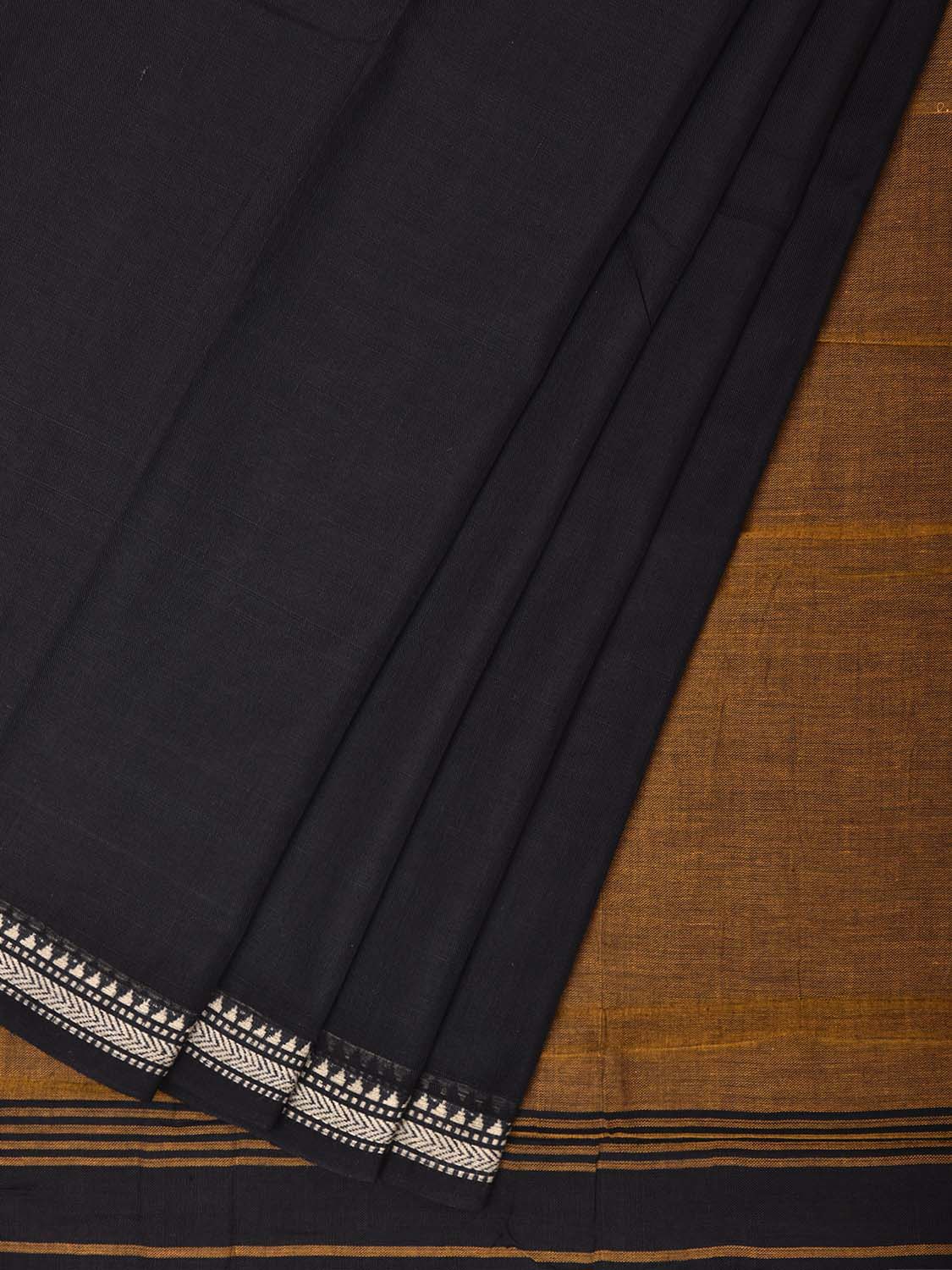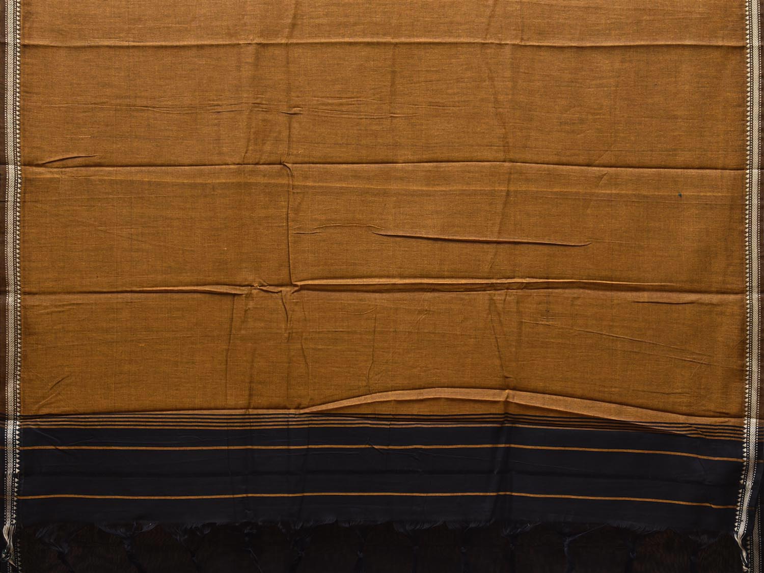 Black and Mustard Narayanpet Cotton Plain Saree with Contrast Pallu Design No Blouse. This saree has no blouse.