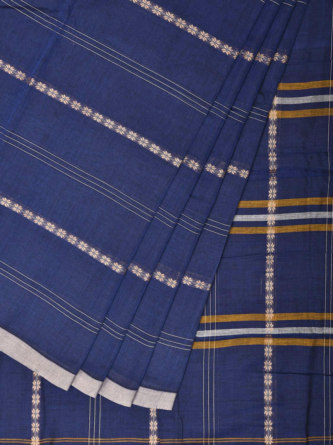 Blue and White Narayanpet Cotton Saree with Strips abd Border Design No Blouse. This saree has no blouse.