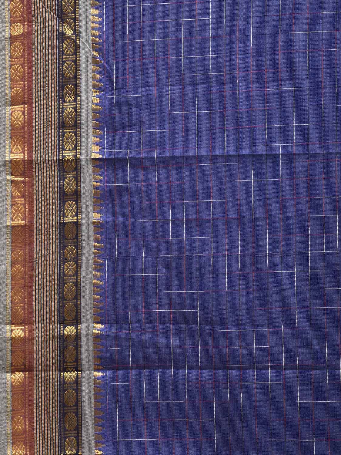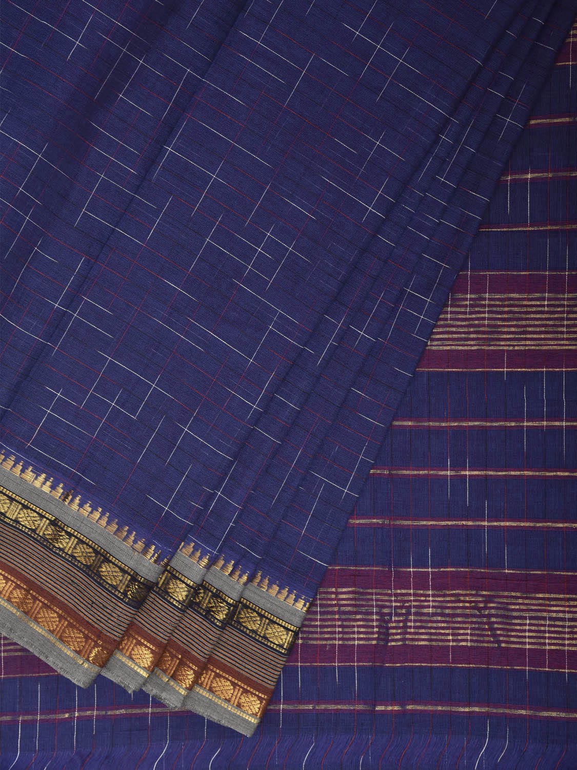 Blue Narayanpet Cotton Handloom Saree with Strips Pallu Design No Blouse