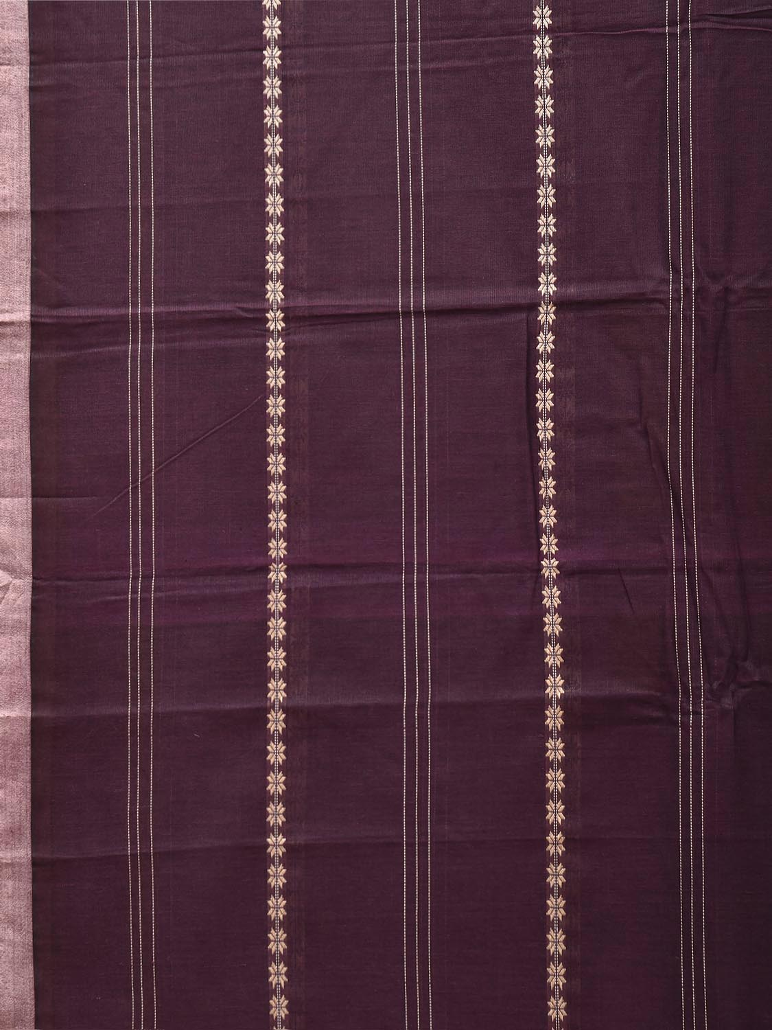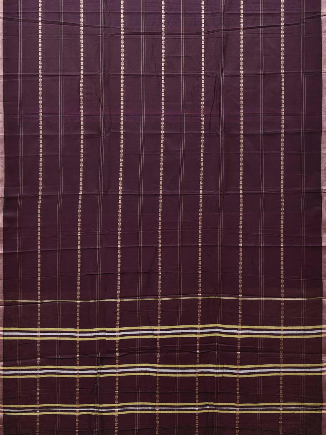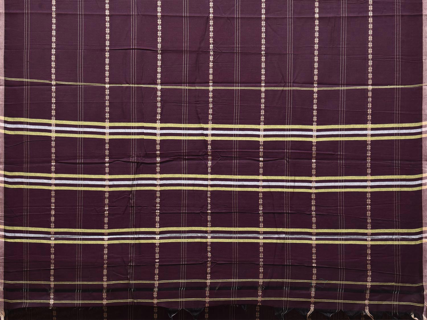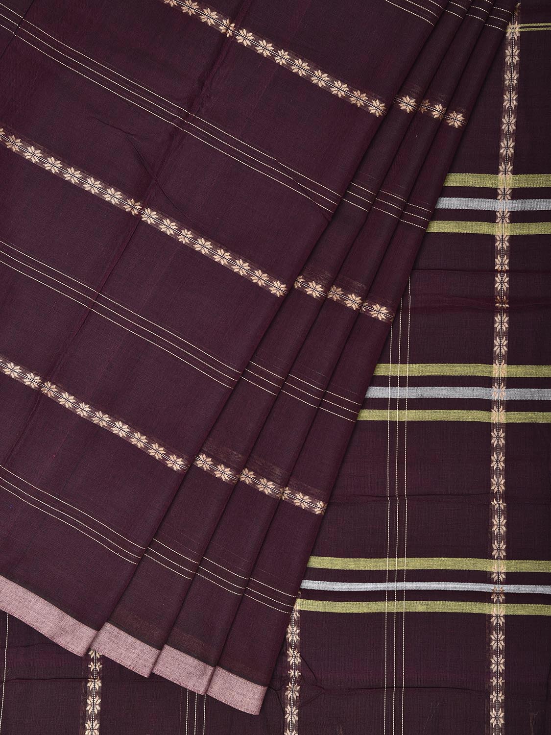 Brown and Cream Narayanpet Cotton Saree with Strips abd Border Design No Blouse. This saree has no blouse.