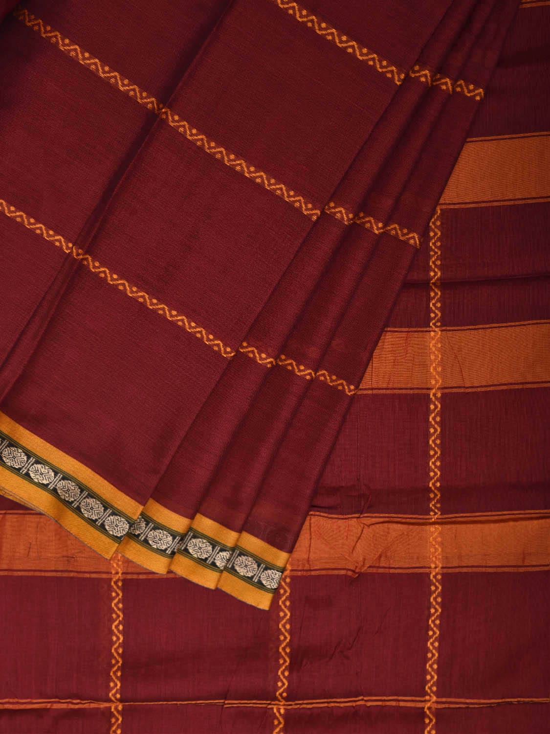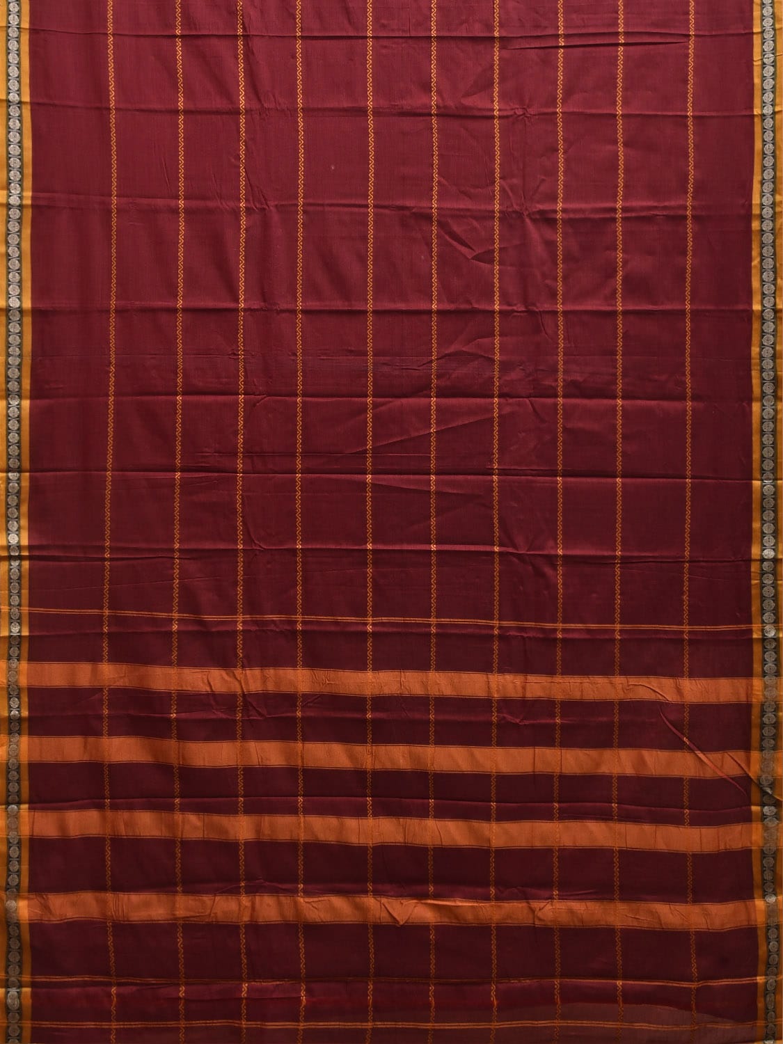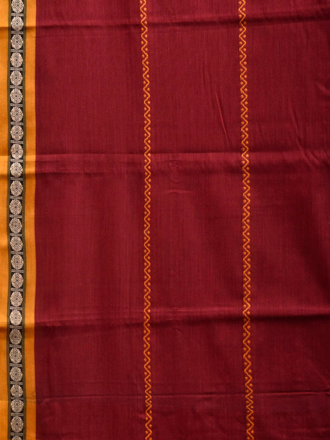 Dark Red and Yellow Narayanpet Cotton Saree with Strips Design No Blouse
