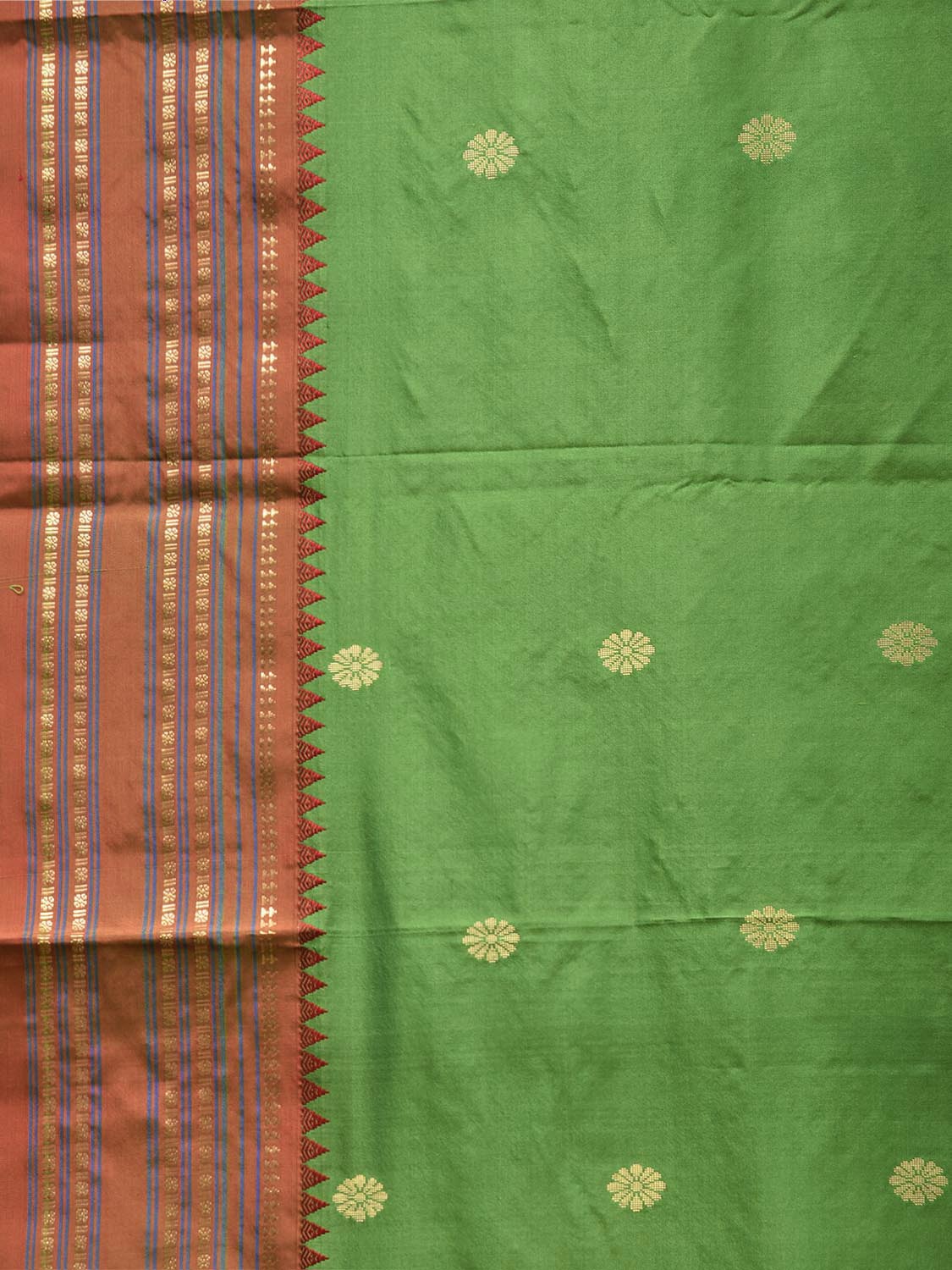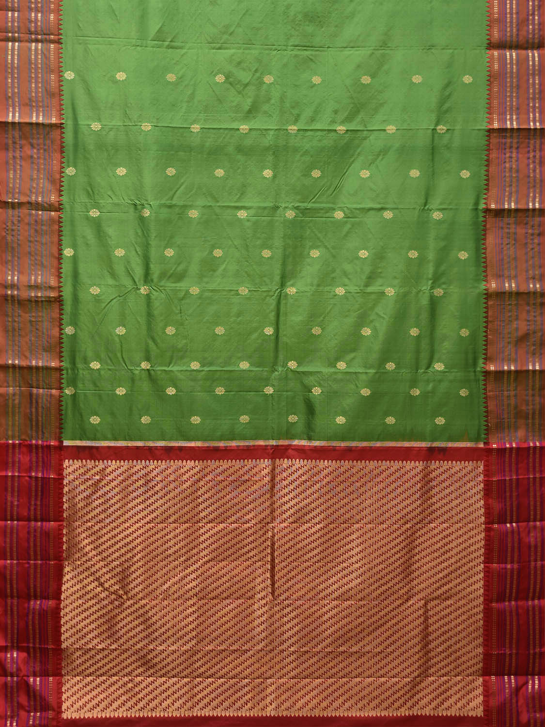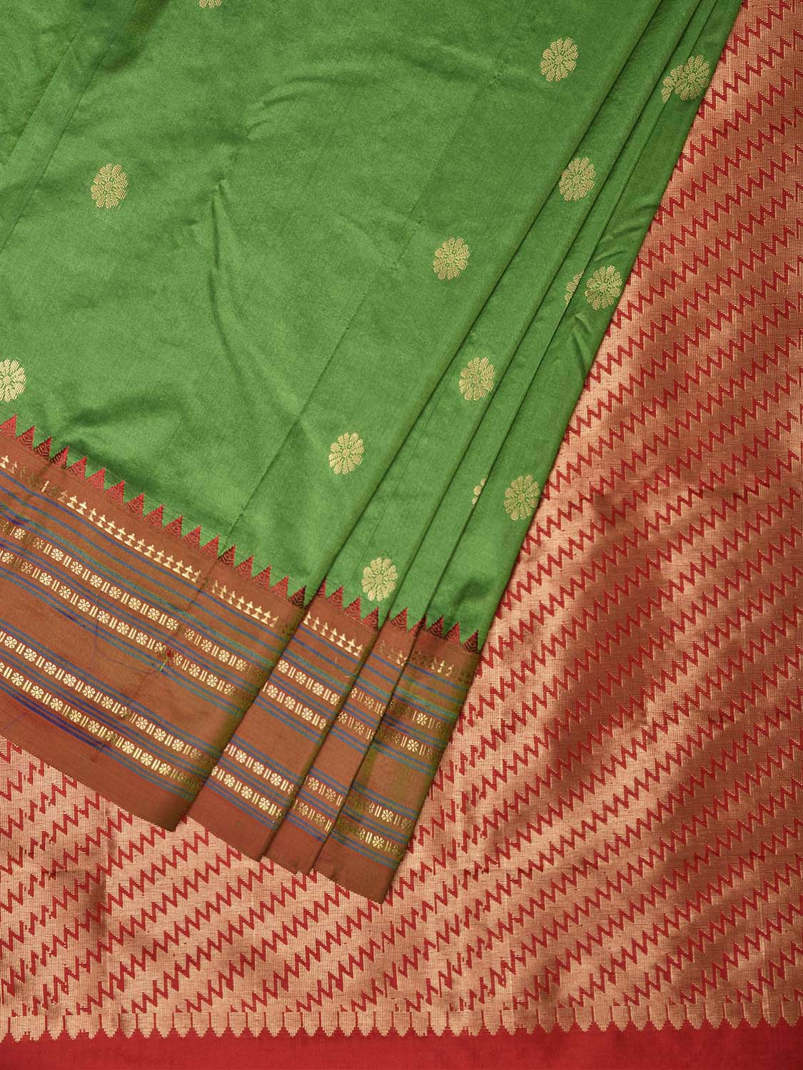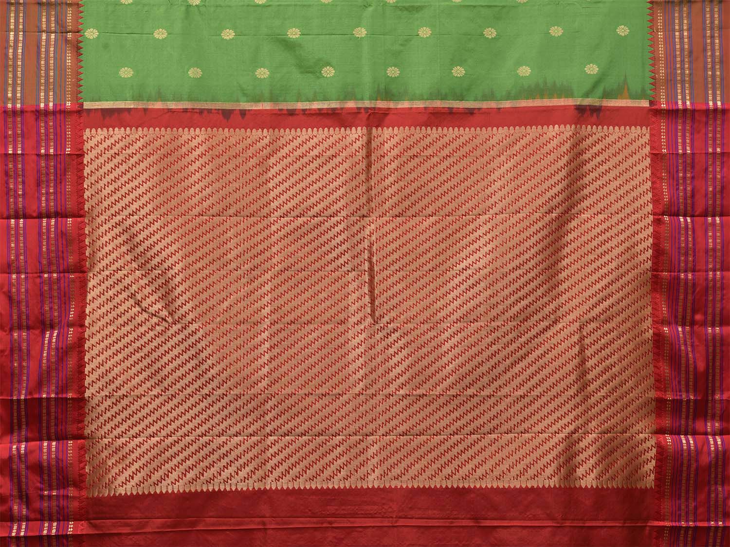 Green and Red Narayanpet Pure Silk Saree with Contrast Pallu Design np1633