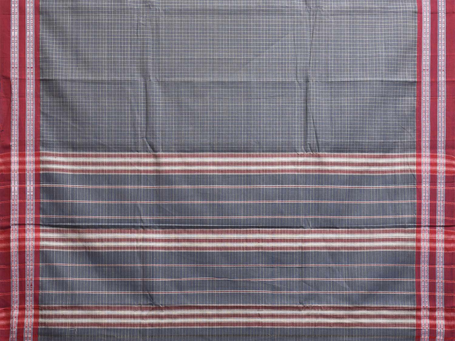 Grey and Red Narayanpet Cotton Handloom Saree with Checks Design No Blouse