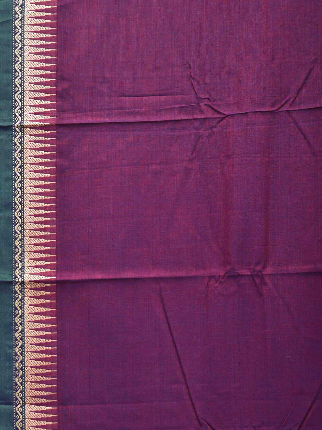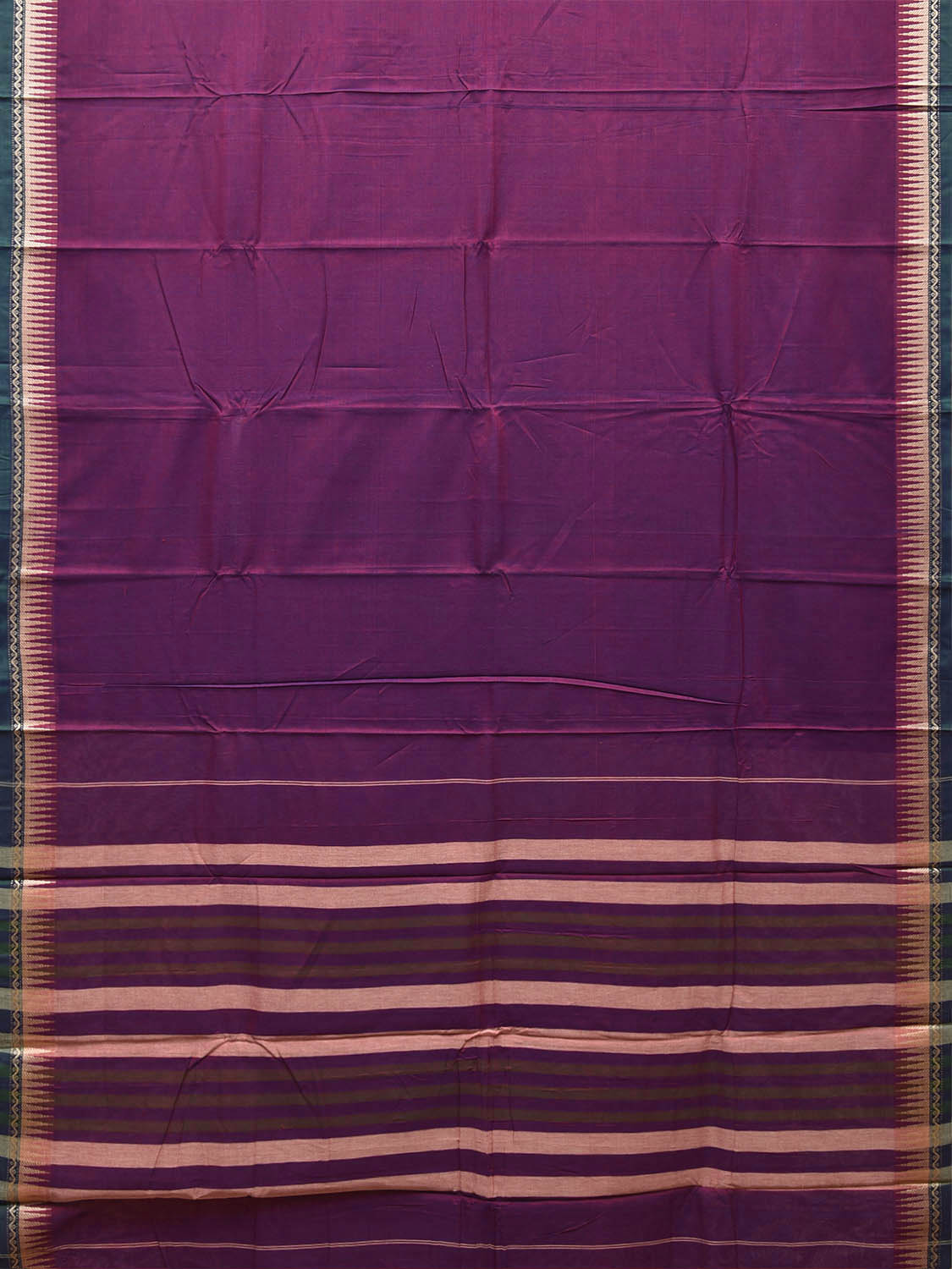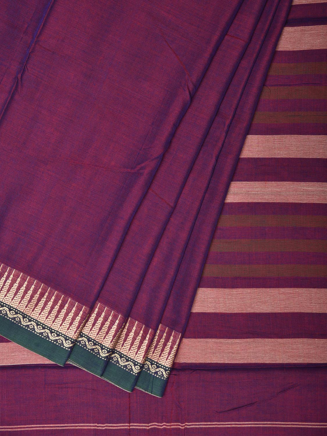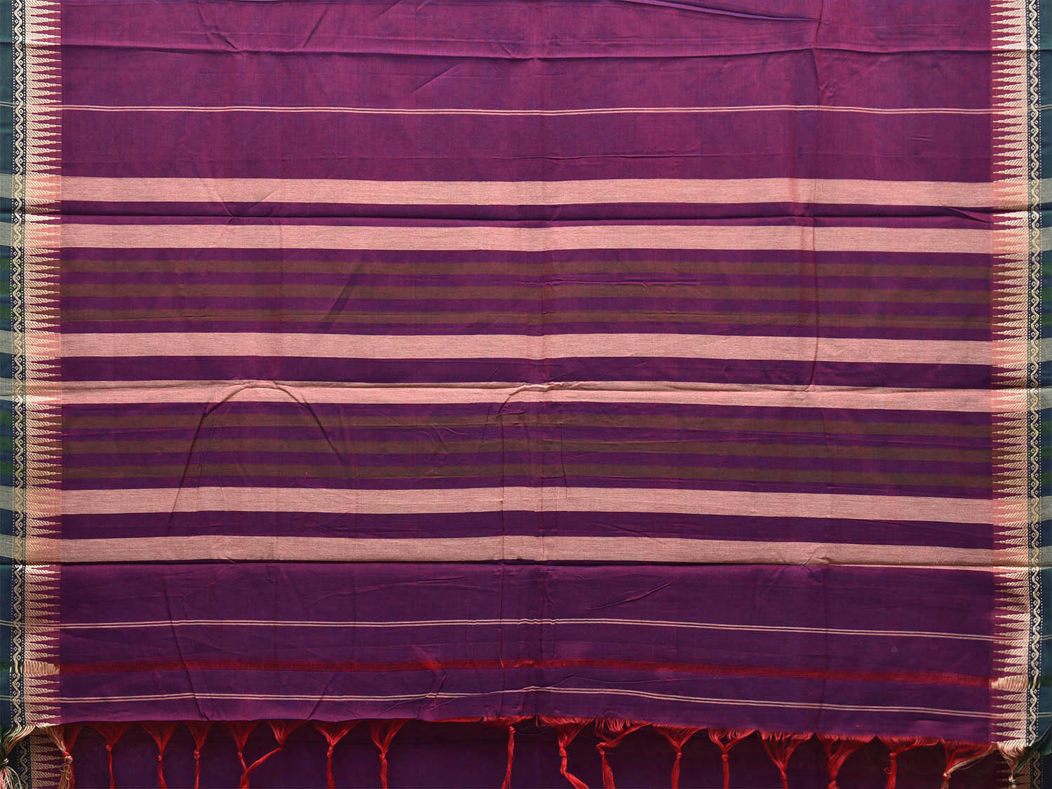 Purple and Green Narayanpet Cotton Plain Saree with Strips Pallu Design No Blouse. This saree has no blouse.