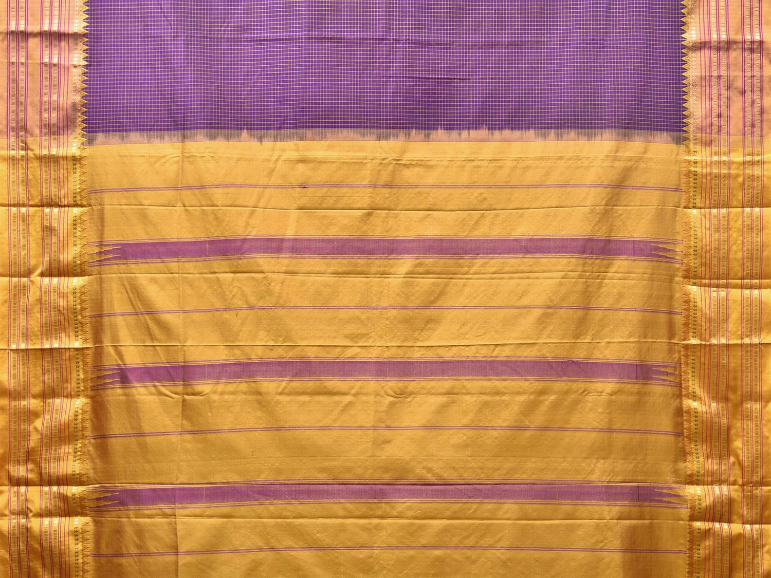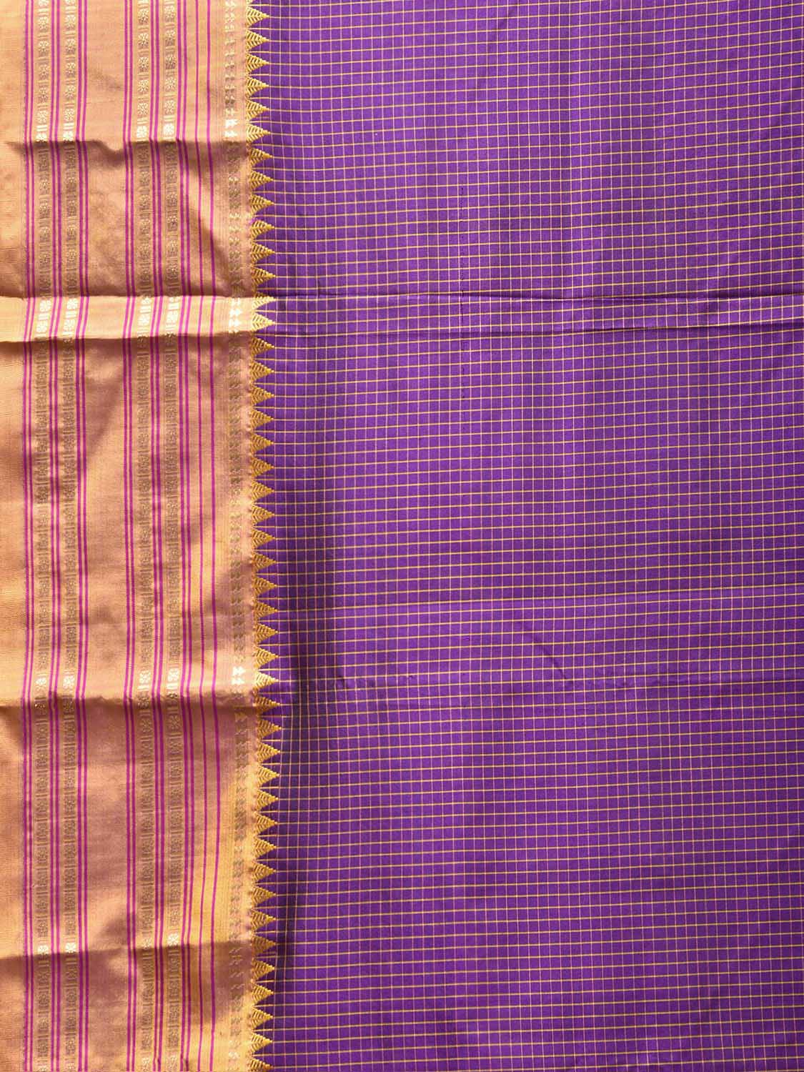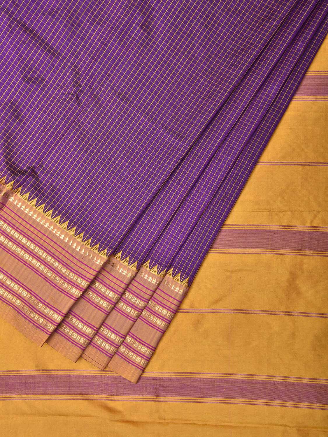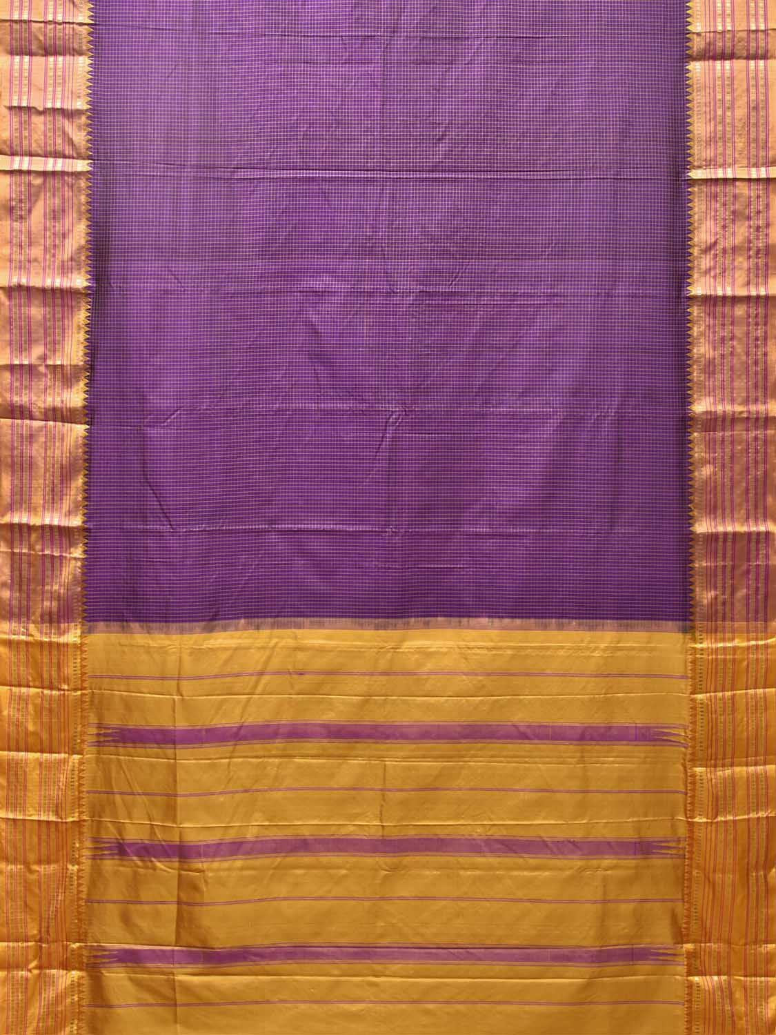 Purple and Yellow Narayanpet Silk Saree with Checks Design
