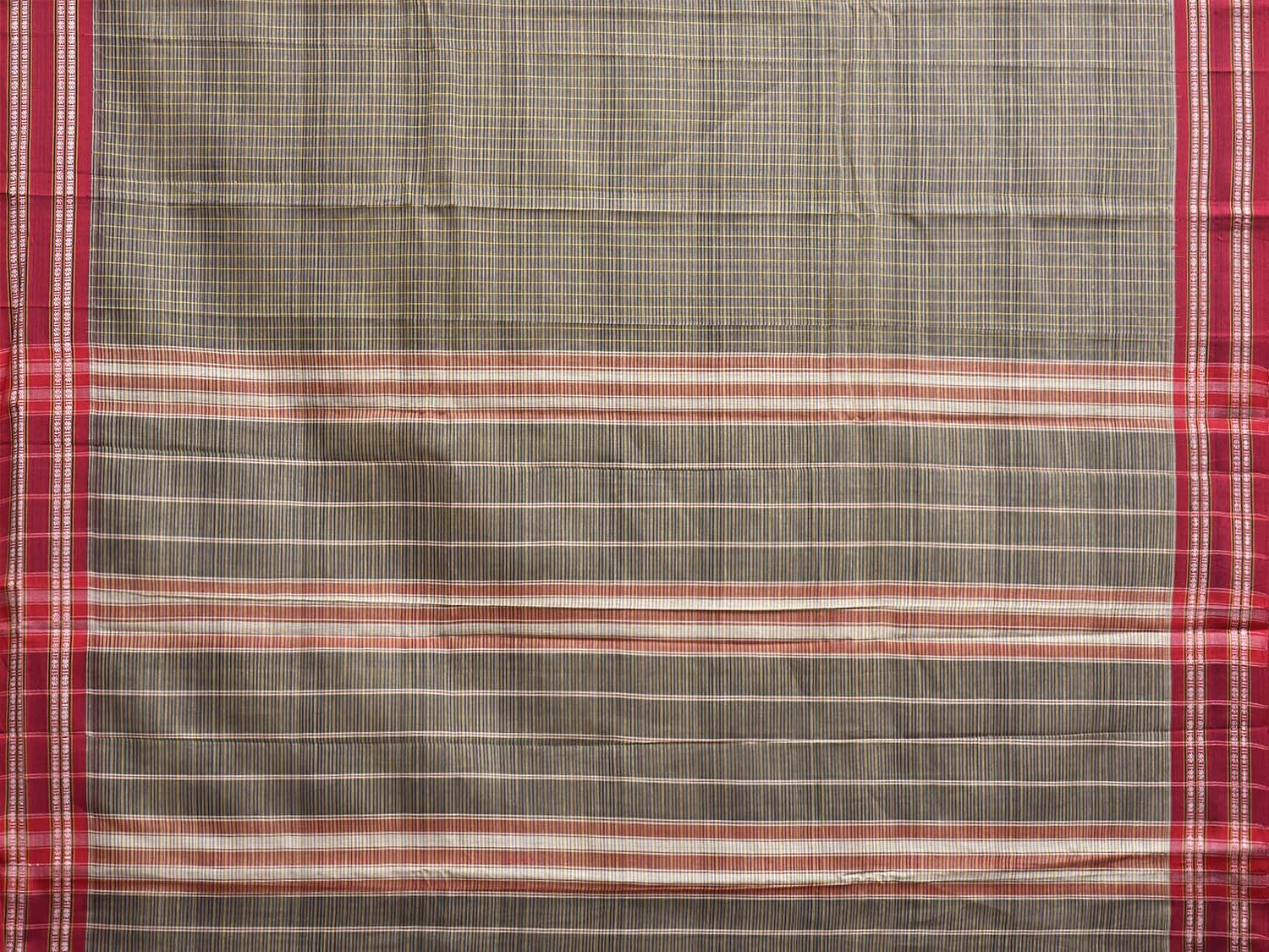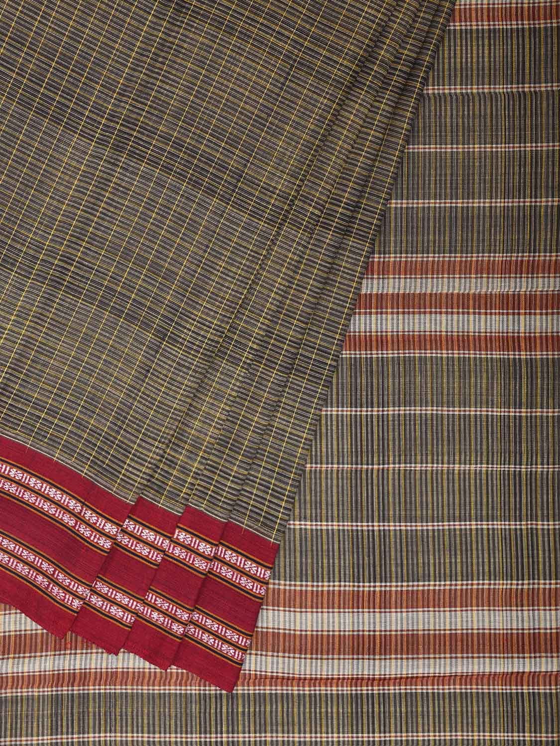 Sea Green and Red Narayanpet Cotton Handloom Saree with Strips Design No Blouse