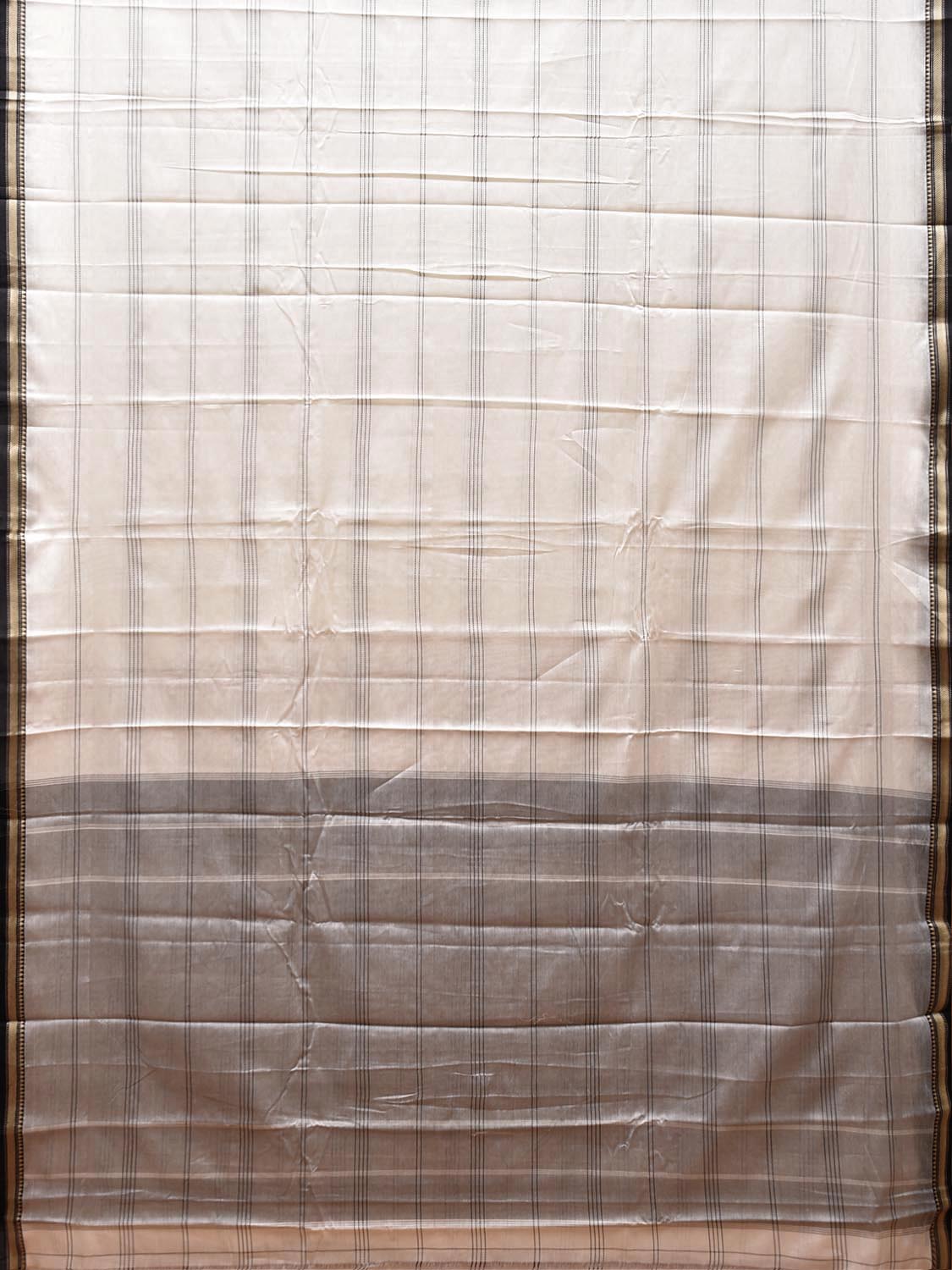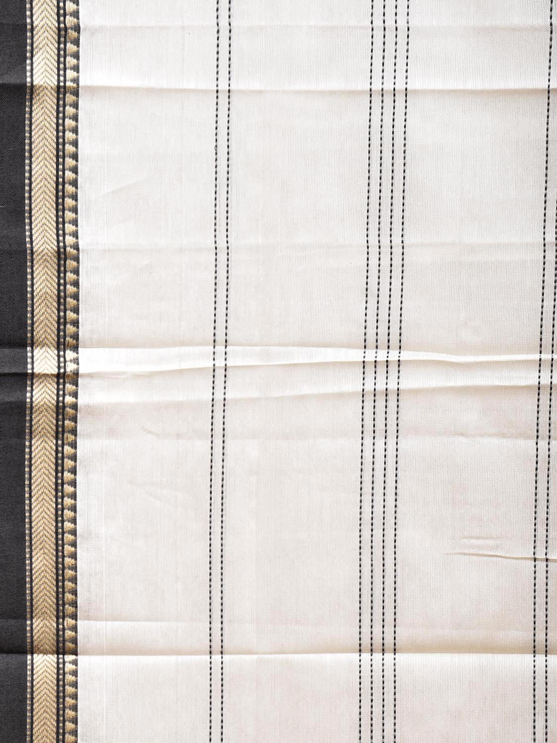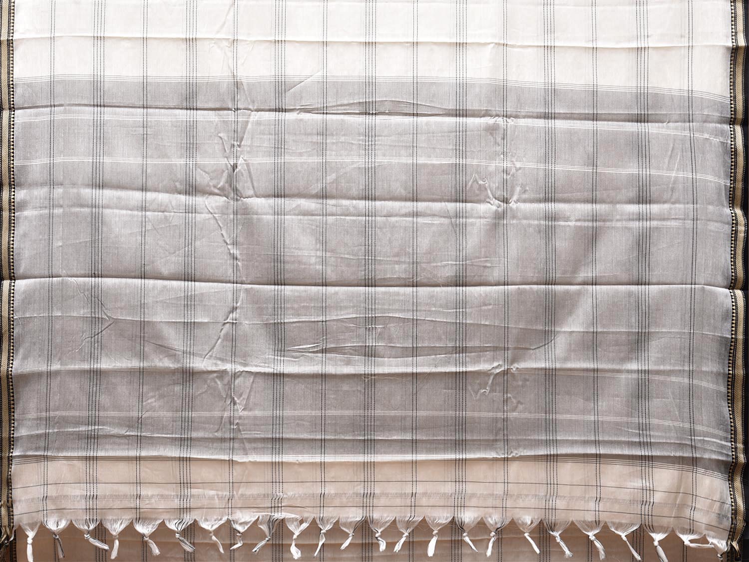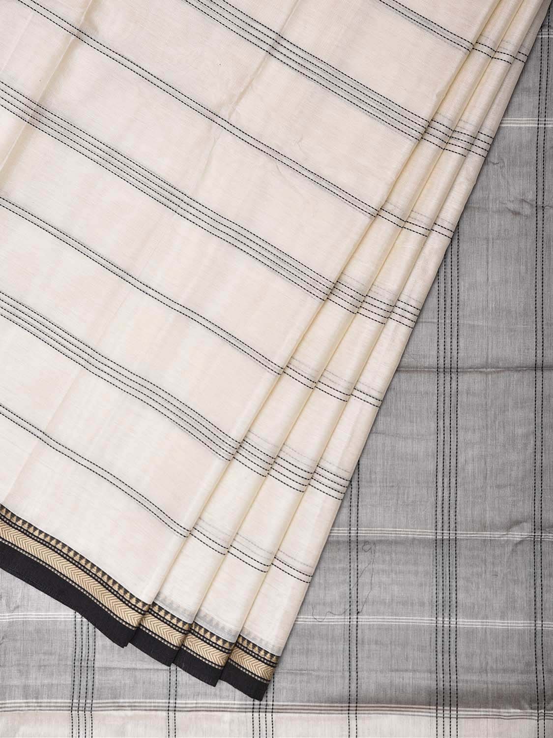 White and Grey Narayanpet Cotton Saree with Strips Design No Blouse. This saree has no blouse.